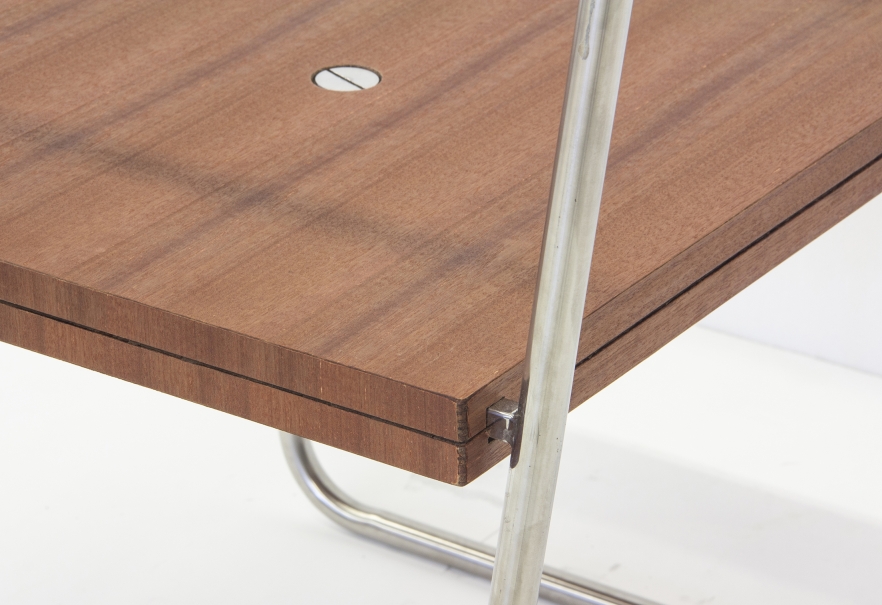 The natural wood and tubular steel give the piece warmth and elegance while remaining sleek, functional and environmentally friendly. The natural finishing will age gracefully over the years. Every new dent or scratch will be an etched memory for the family.