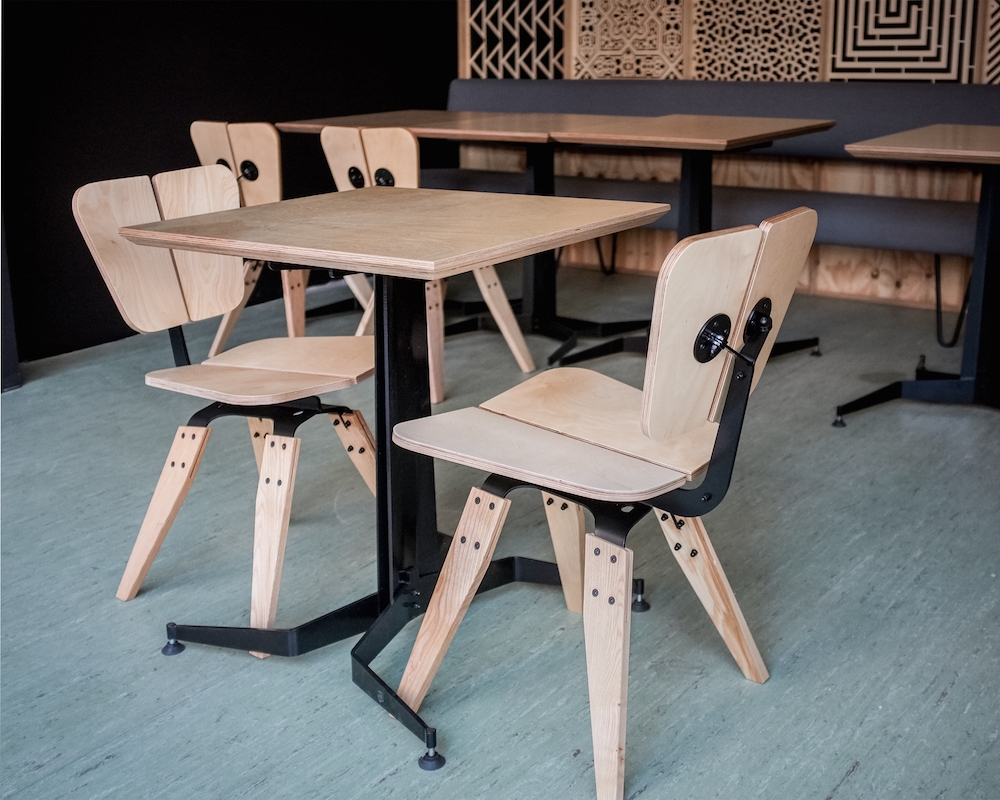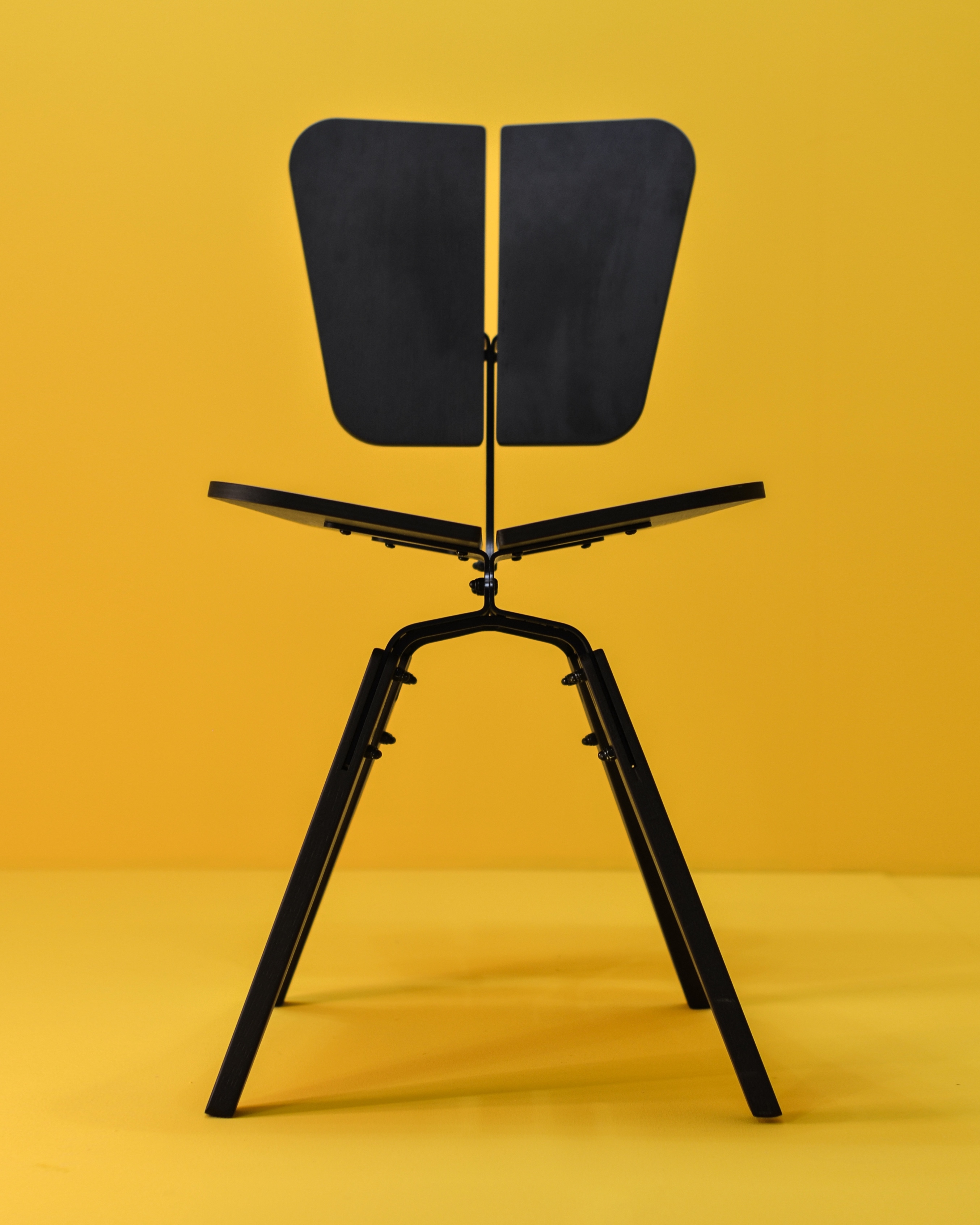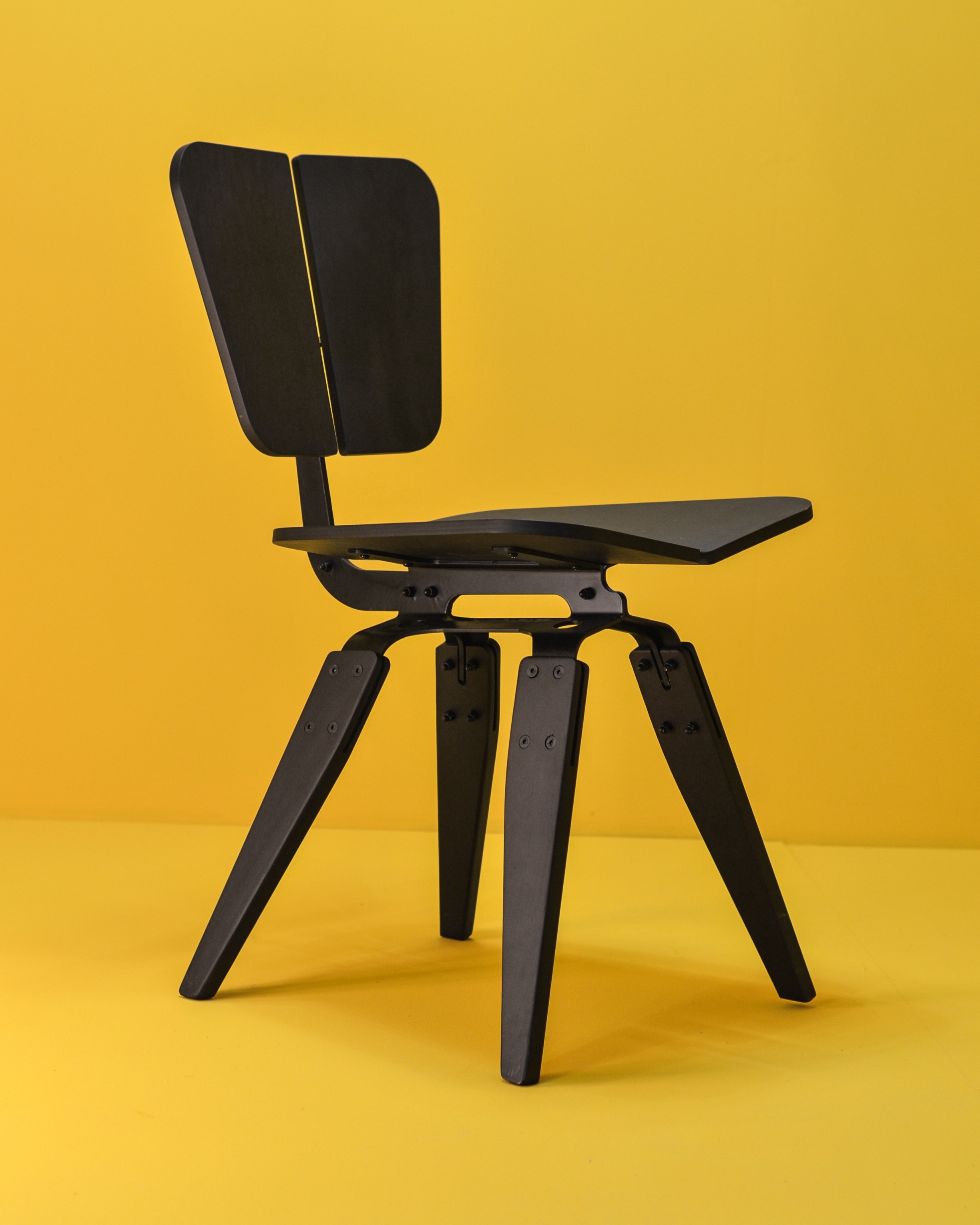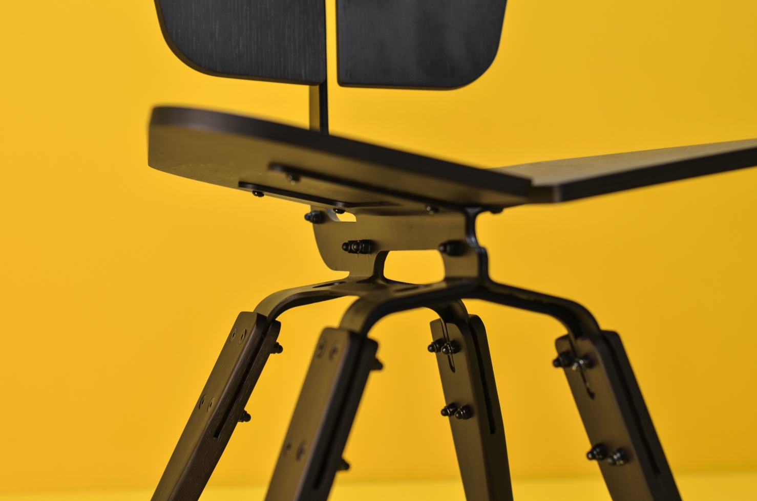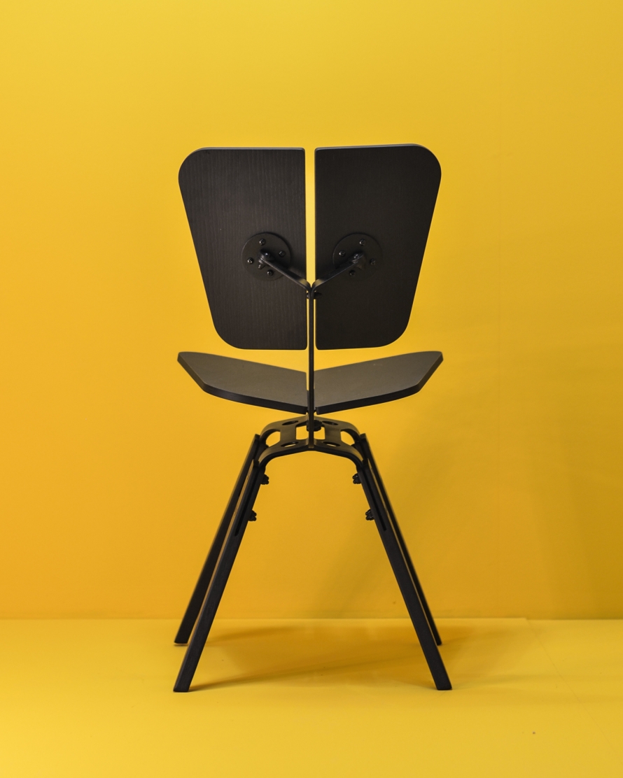 A steam punk take on Eames, Calder and Prouve meets nostalgia for the heavy-duty workshop furniture.
