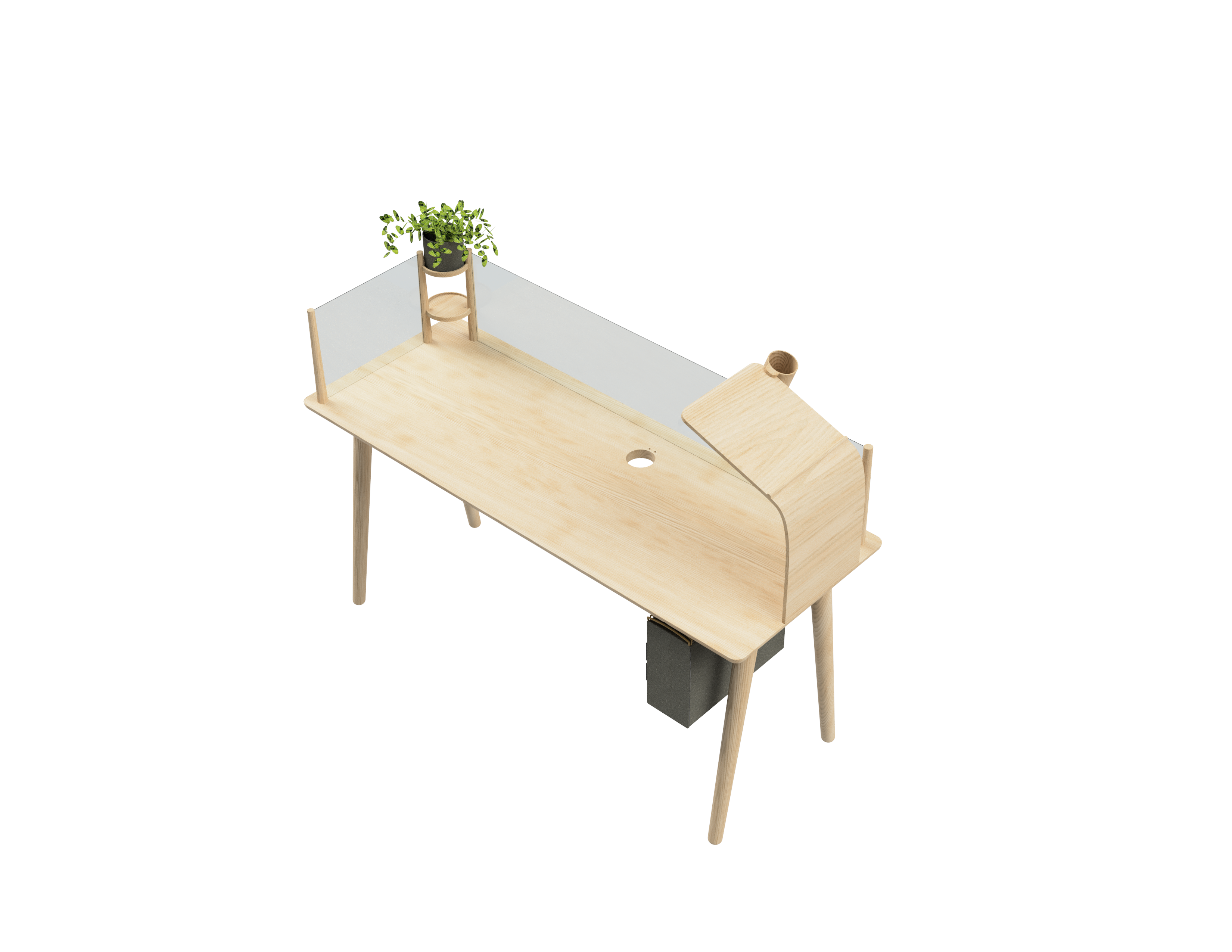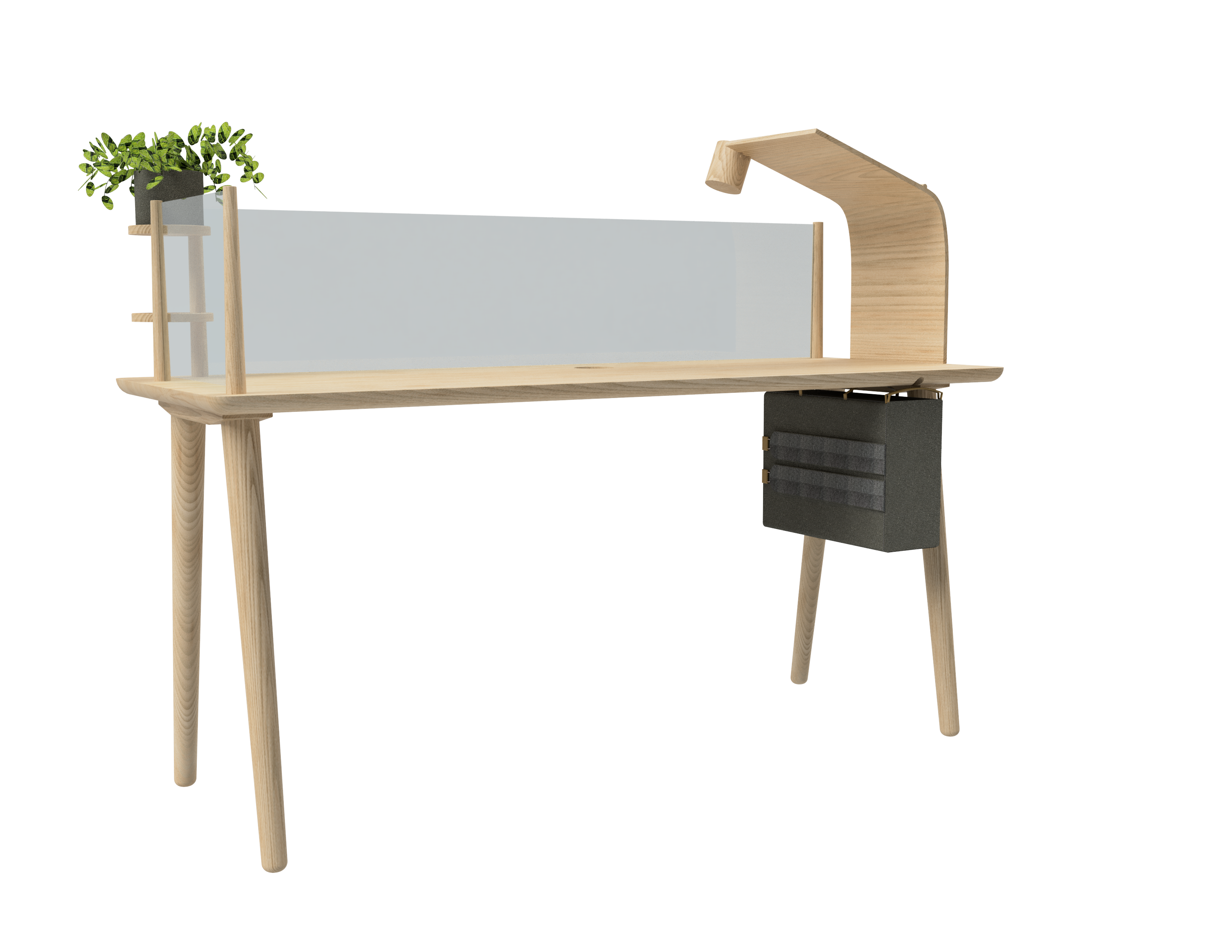 It incorporates space for plants, as well as diffused lighting, and movement with the use of the lectern for stand-up working. With the holdall to transport your work, you can work anywhere with reduced impact to workflow.