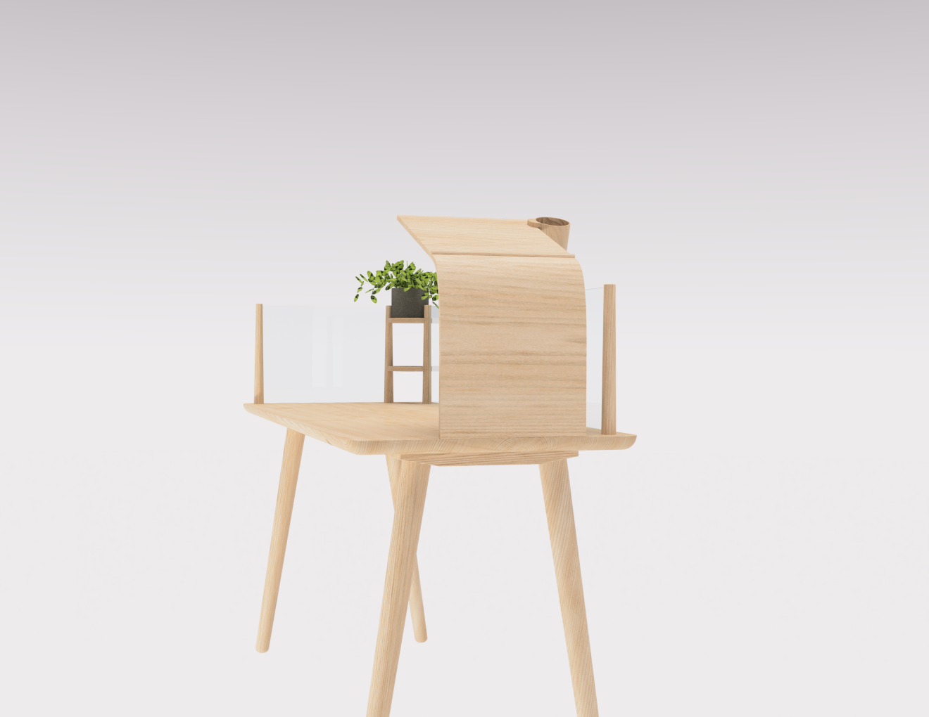 Offering a mindful, dynamic desk space, through organic shapes and natural materials, in wood and glass, Synergy desk has been designed with biophilic and sustainable design principles.