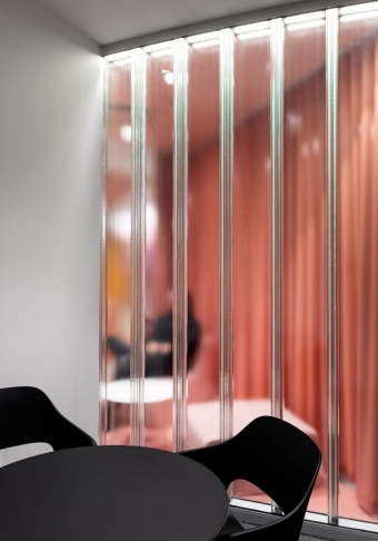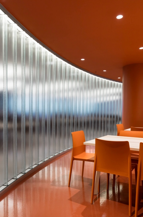 Conceived by local studio ACDF Architecture and occupying the entire sixth floor of an octagonal tower not far from the city’s Trudeau International Airport, the 1,189-square-metre-design — featuring bold bursts of colour and a striking mix of materials — accommodates not only the site’s challenging geometries, but the growing organization as well.