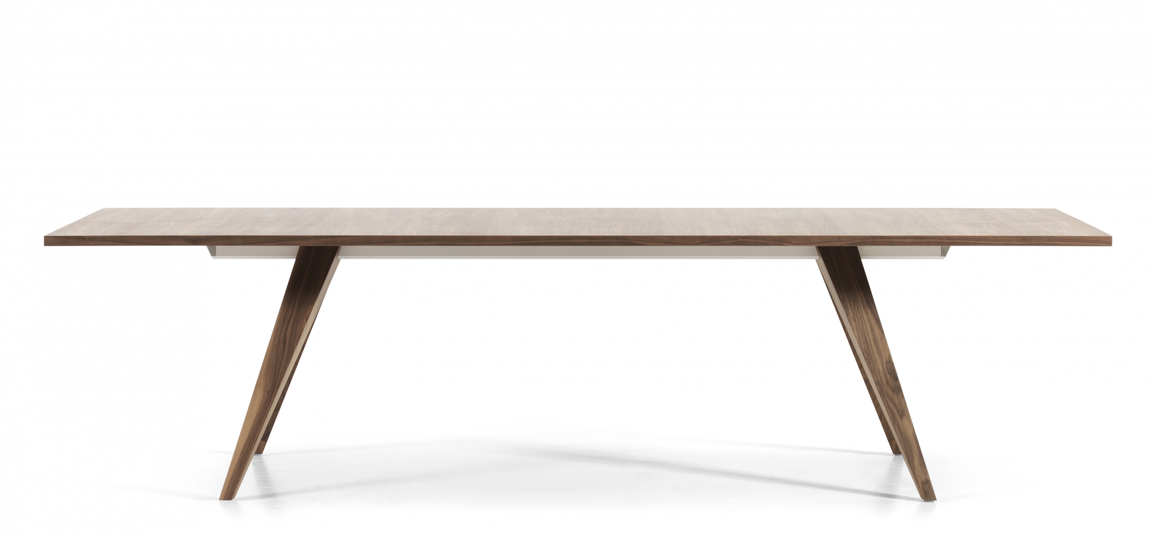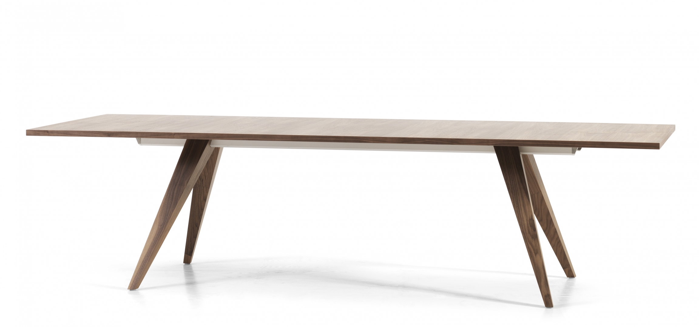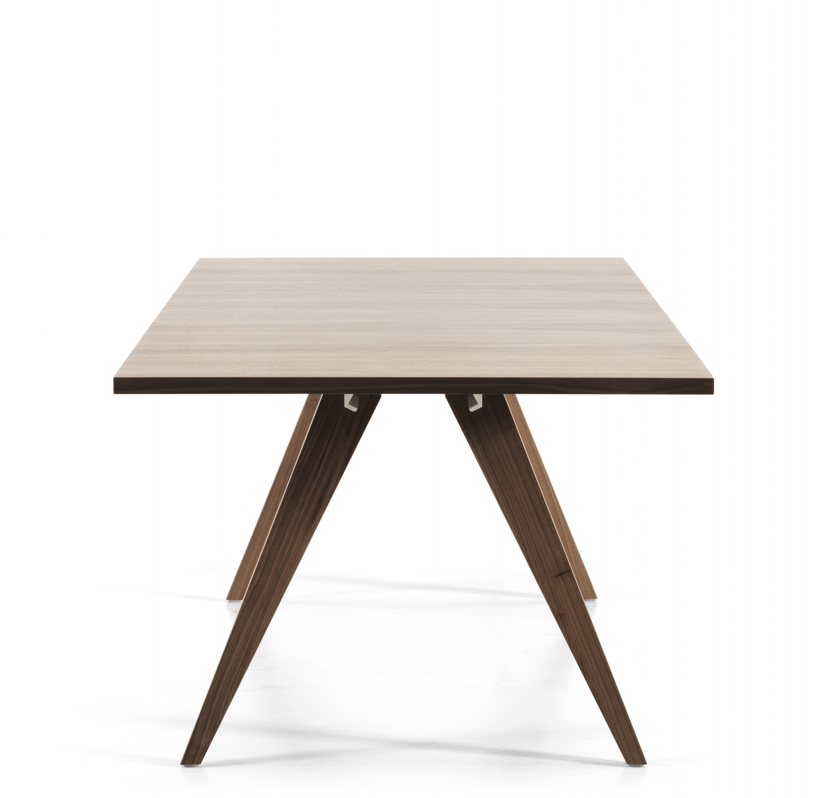 PONTO table is an innovative combination of aluminium - the supporting beam - and solid wood – the legs. In the upper-end of the legs, a “negative print” of the extruded beam-profile is milled out. This allows the leg to be slided onto the beam and left where wanted. When the table stands, gravity locks the legs and stabilizes the whole construction.