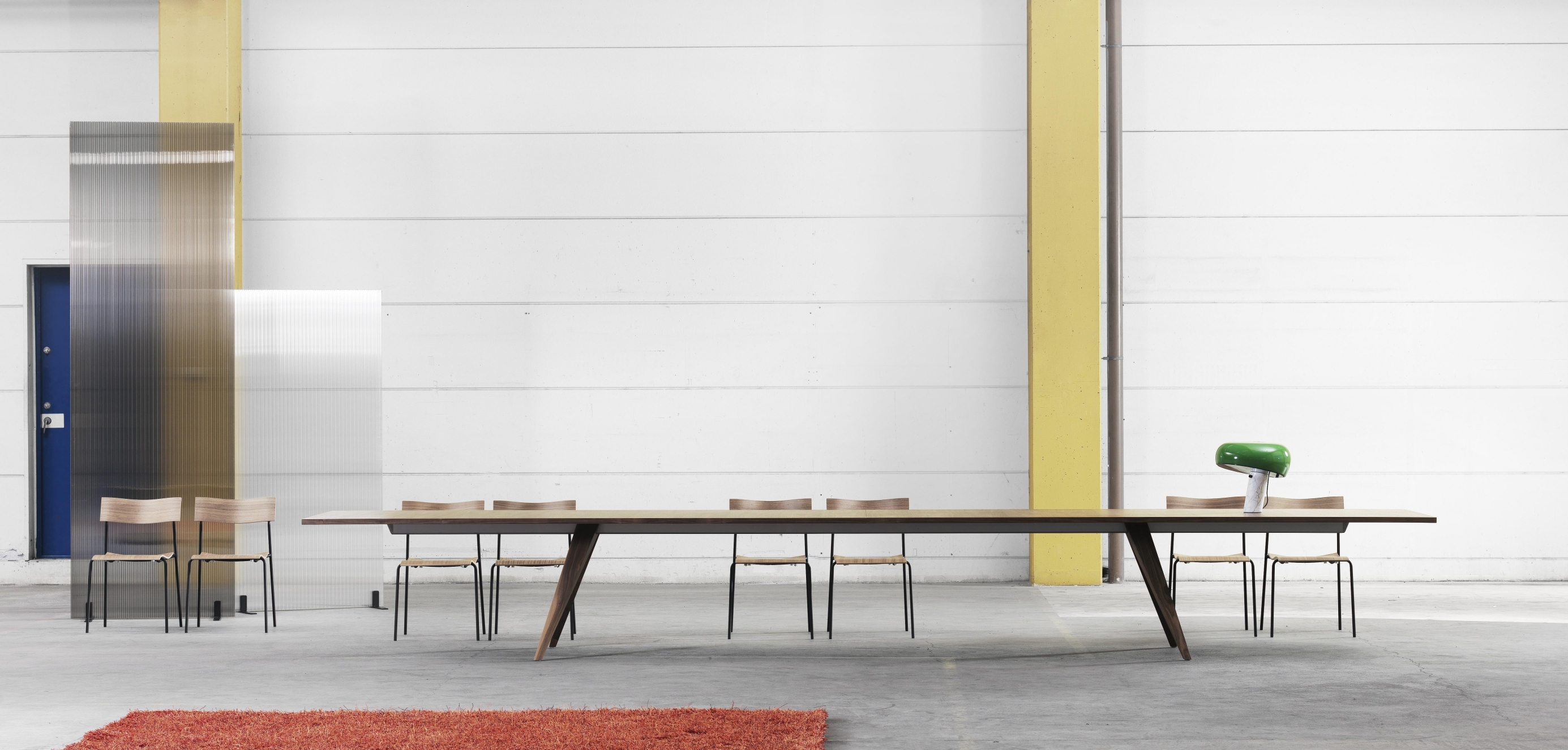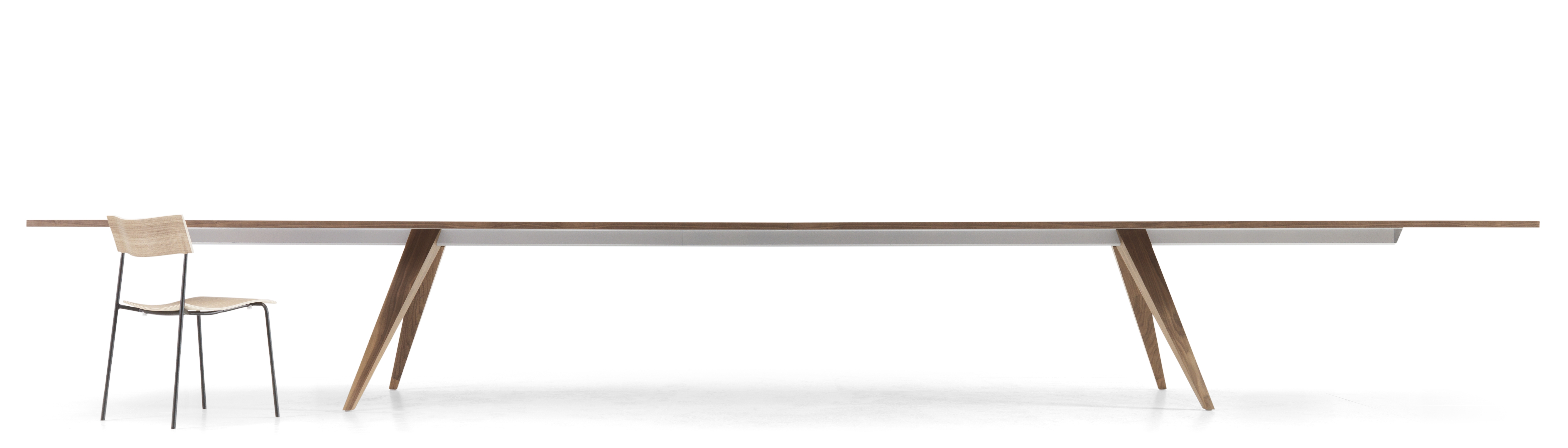 - Exceptionally long spans between legs and exceptionally long overhangs, due to the strong aluminium-beams, especially in the only 4-legged 558cm long version. This leaves plenty of space to whom it is all about; the sitting human being!