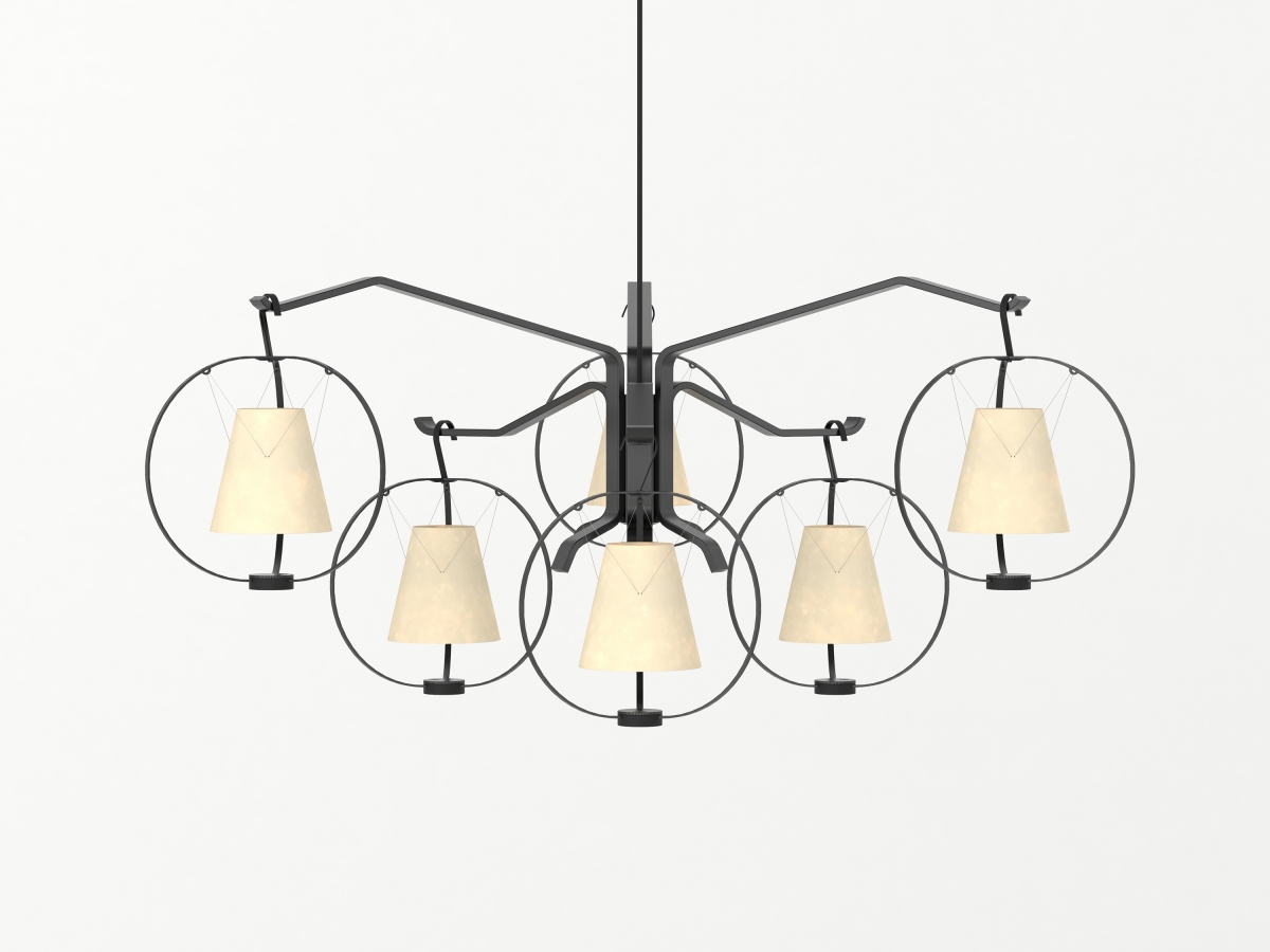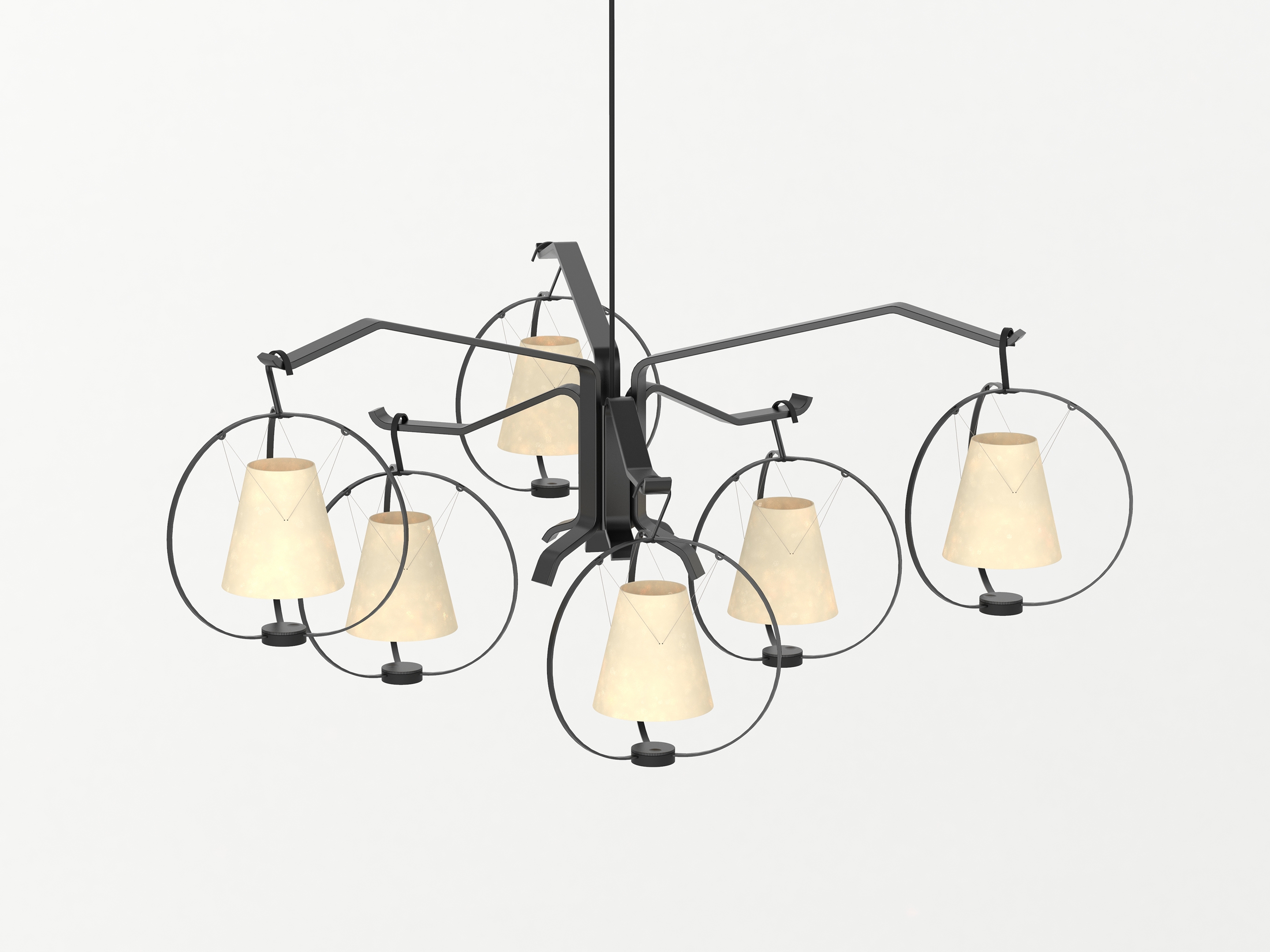 The Sospeso’s fixture line updates vernacular wrought metal hanging lamp design with modern lines and technologies. These fixtures conduct full power to the lanterns, while they are recharging.