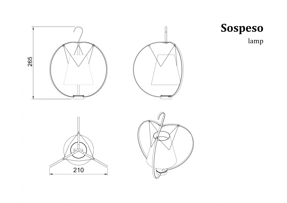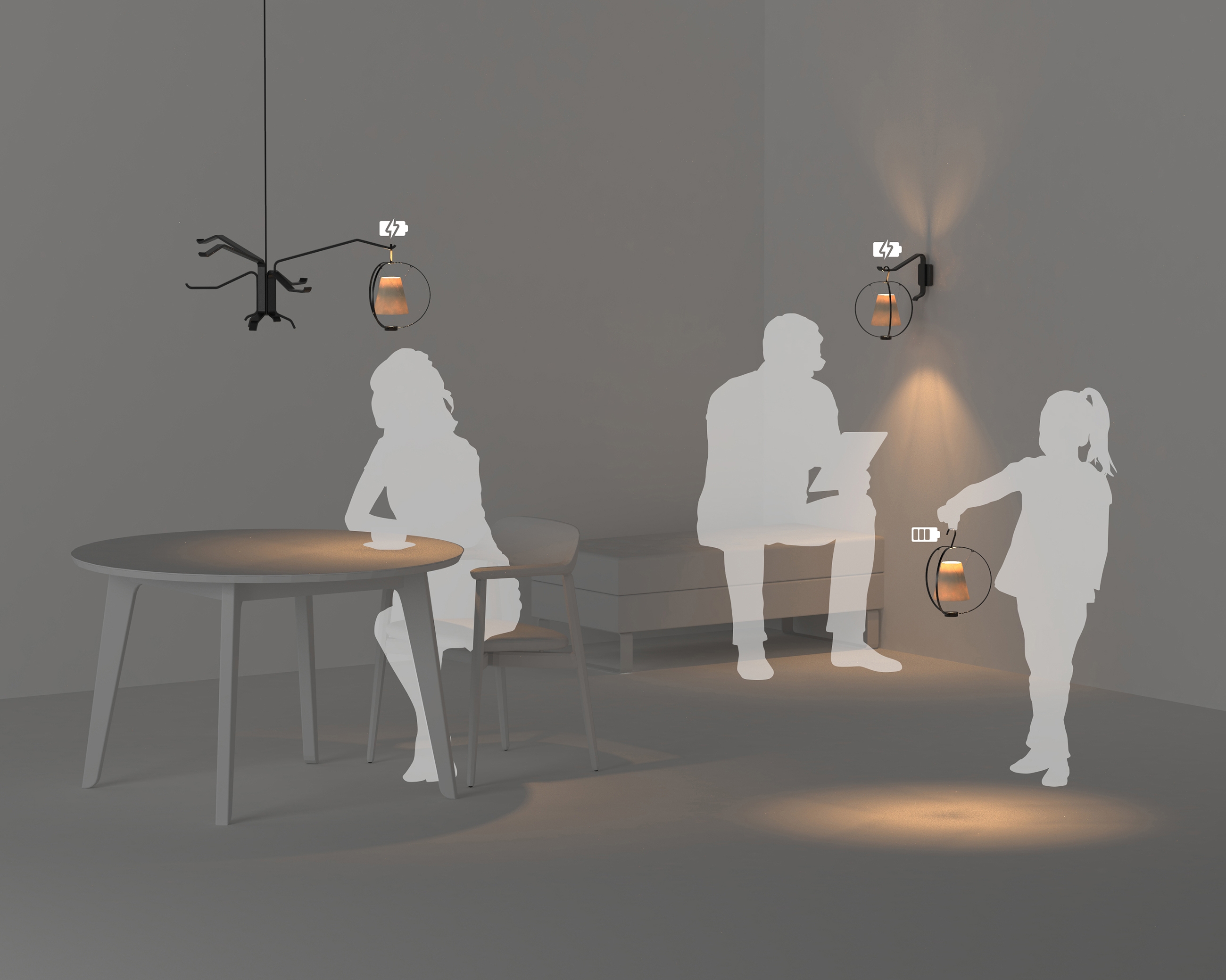 Pick the lantern up from its hanger and go where you want. Hang it up, or stand it on its foot anywhere you need light. Sospeso's internal battery will supply 5 hours of continuous light away from its fixtures.