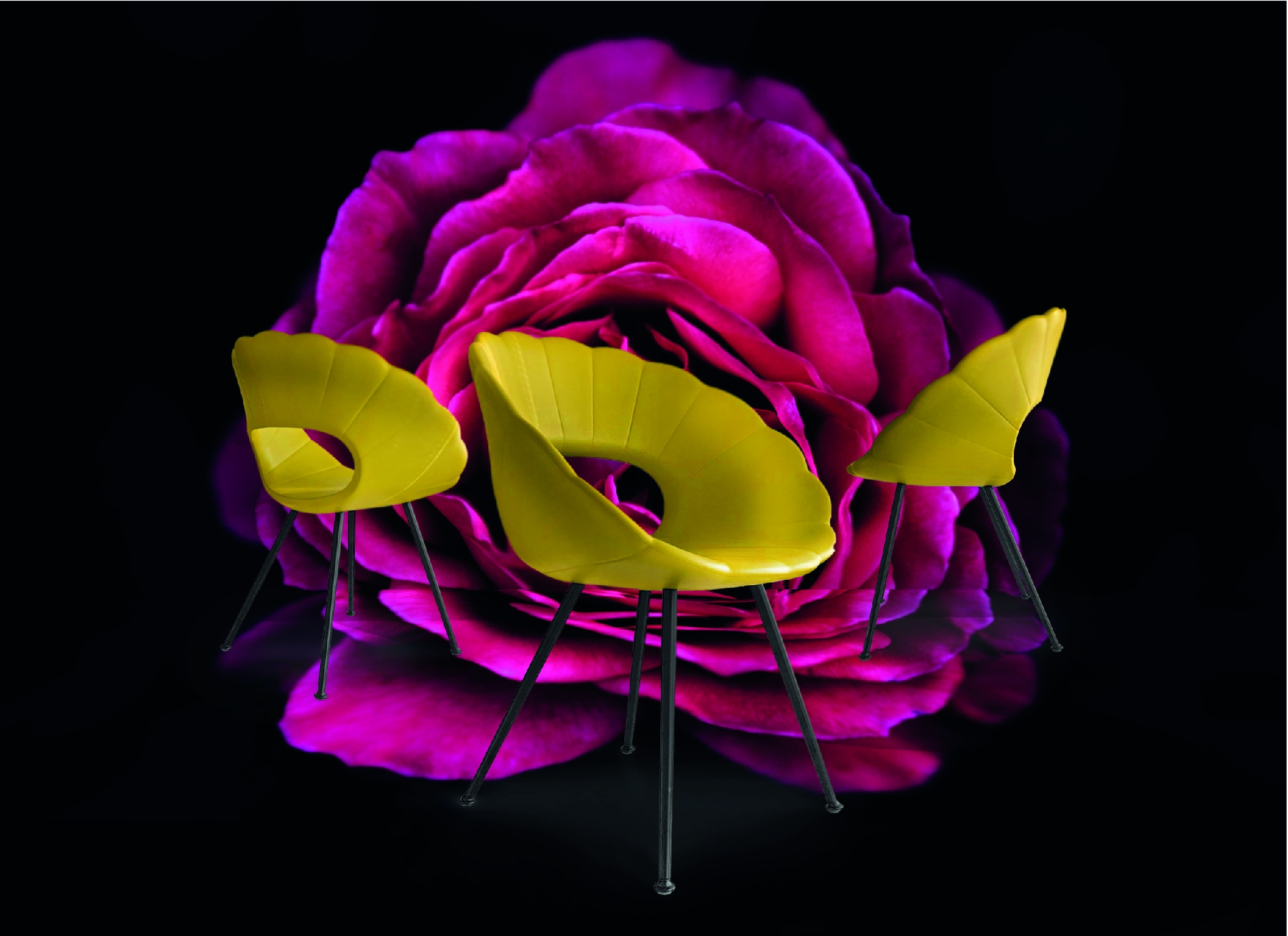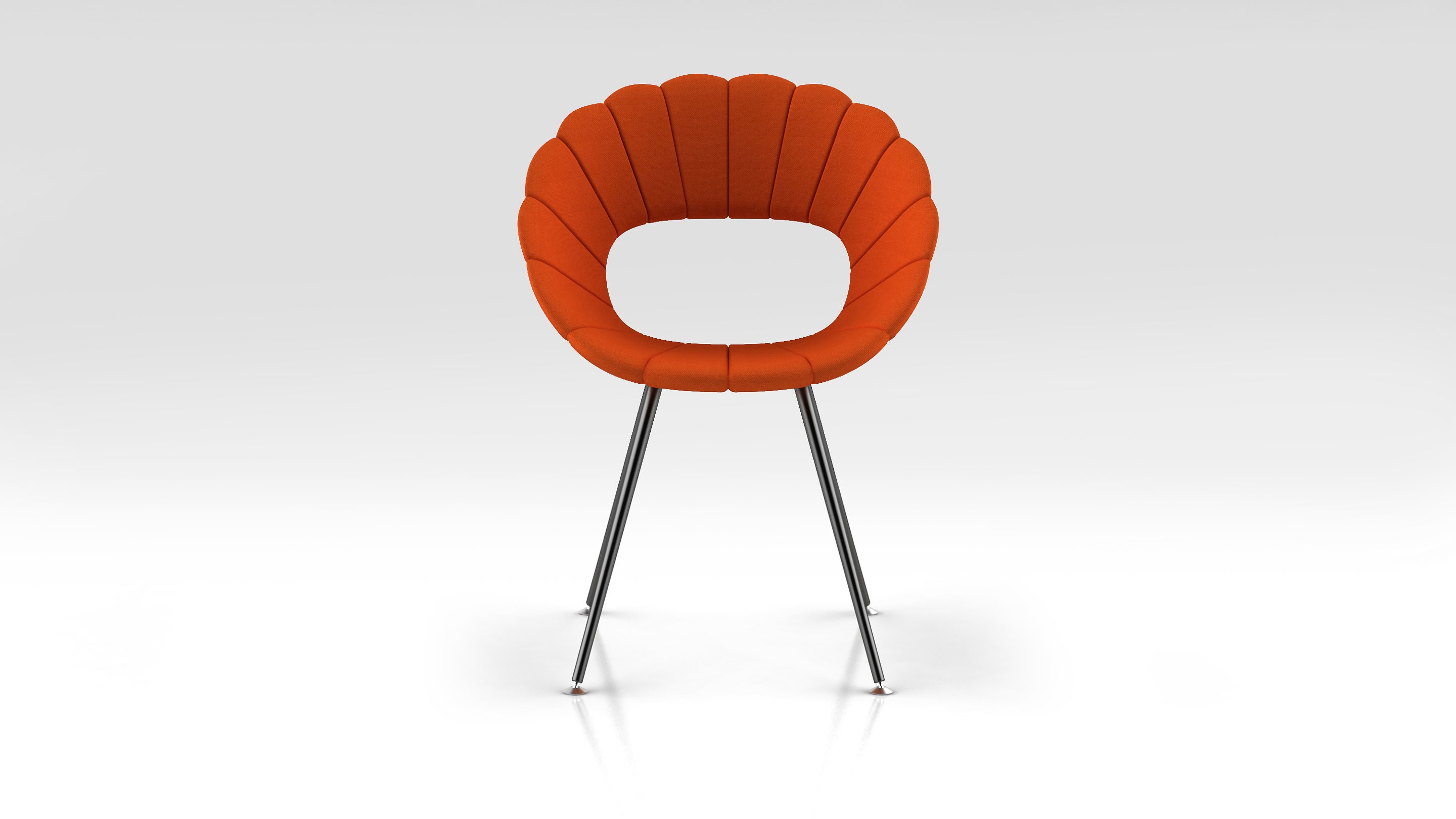 The Flower range is available in two versions, a soft touch urethane or a soft padded shell that can be upholstered in a variety of fabric or leather. The soft touch urethane option can be cleaned with a broad array of disinfectants for a safer environment. A wide range of bases are available such as a rotating column base, solid wooden legs, or conical metal legs
