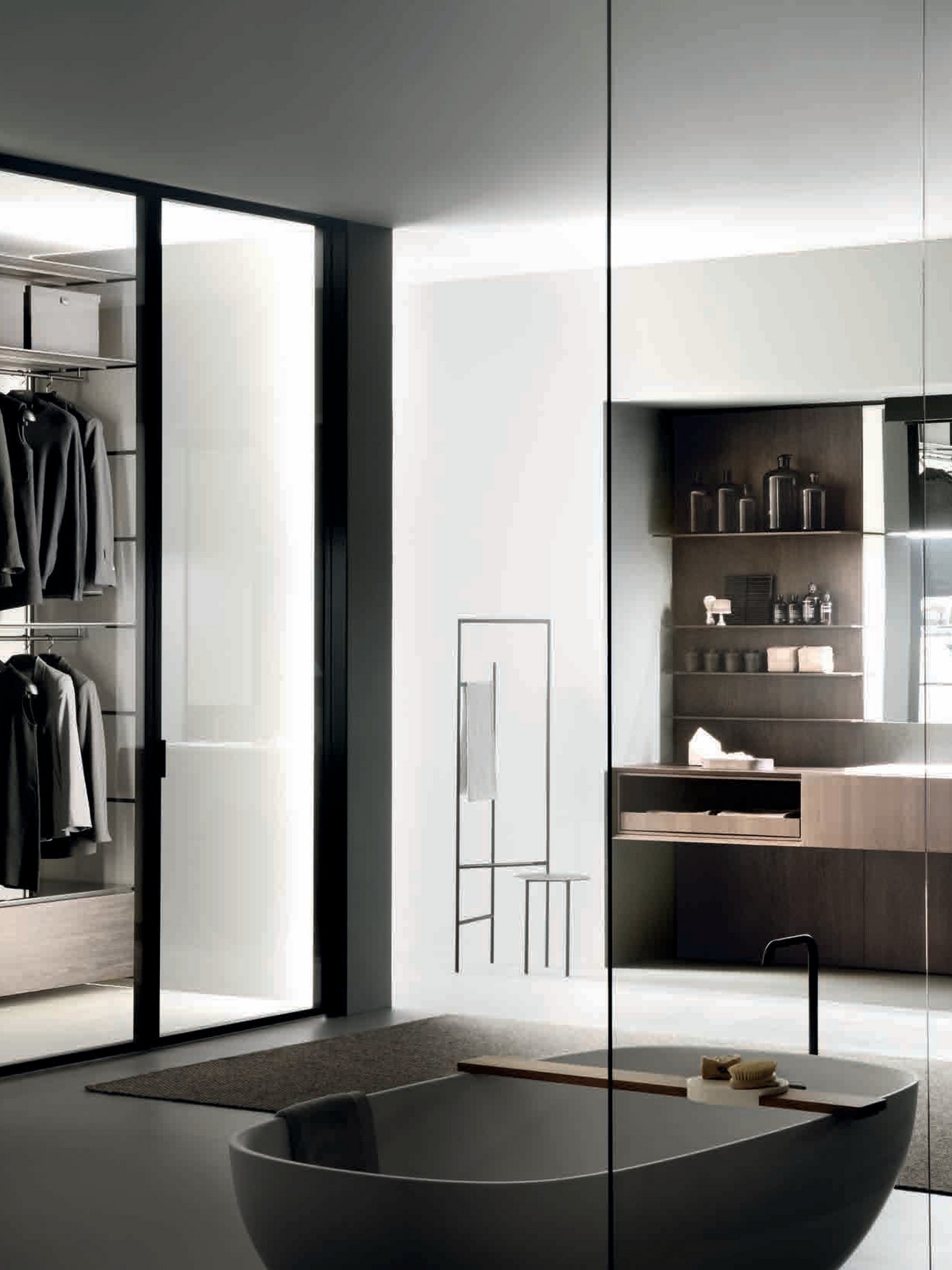 Garderobier is a stool, valet stand and a partitioning system in one.