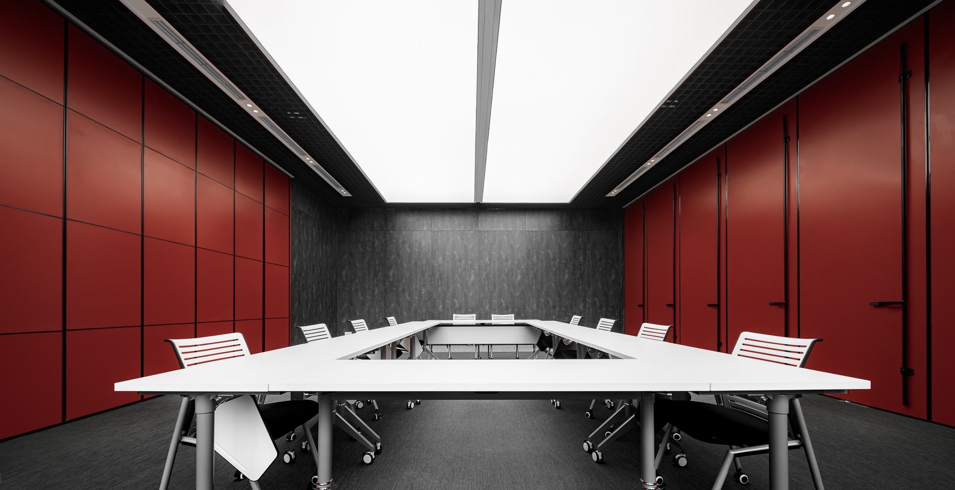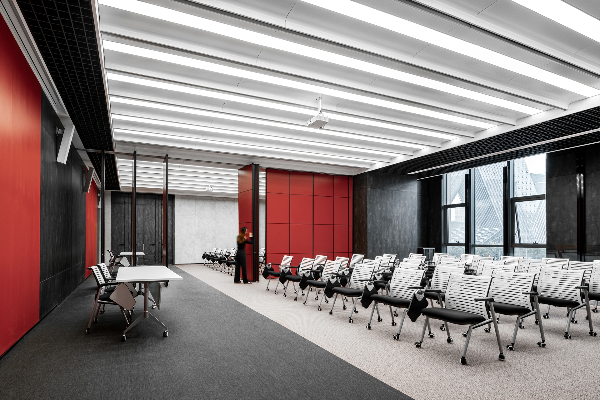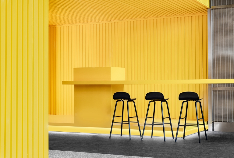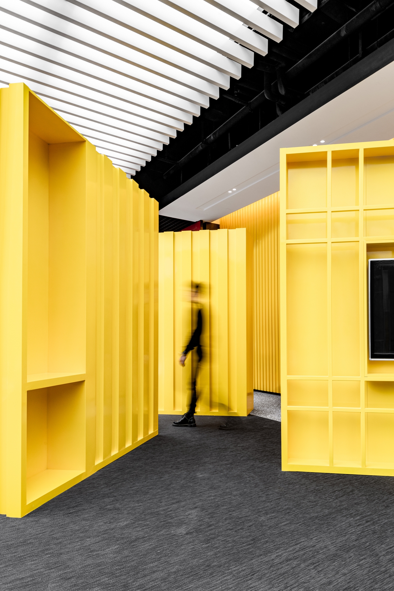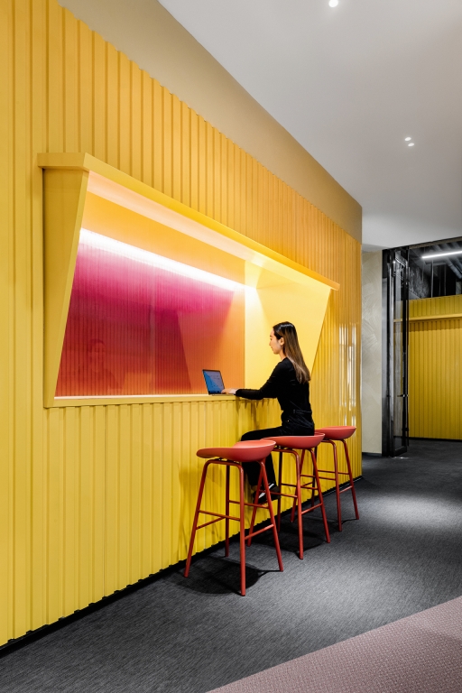 The project is located in Ningbo, a city that was the starting point of the ancient Maritime Silk Road and is still one of the most important port cities in China.The design inspiration comes from the container terminal. By combining container elements, colors and geometric figures in an orderly manner, an industrial-style business center is constructed.Taking the container as a box, each individual space is stacked and reassembled and redistributed through the whole space to form different open areas and structure. At the same time, different containers interpret different colors, like the high saturation of building blocks and the color composition of large blocks. Combined with the interspersed blocks, they together form an industrialized, modernist aesthetic with a sense of "order".The combination of line and surface is another design focus of this project. The lines are the characteristics of the container itself, and the industrial die-cast corrugated metal panels have a natural texture.The work uses this material as an important design element. Thick metal collides with bright colors, and the deconstructed space is paired with a well-organized order.