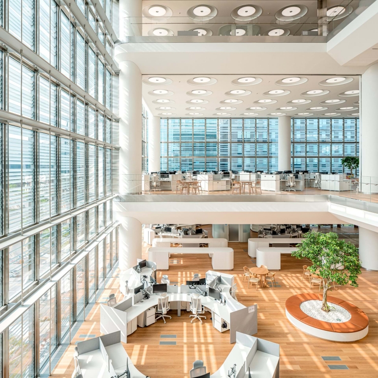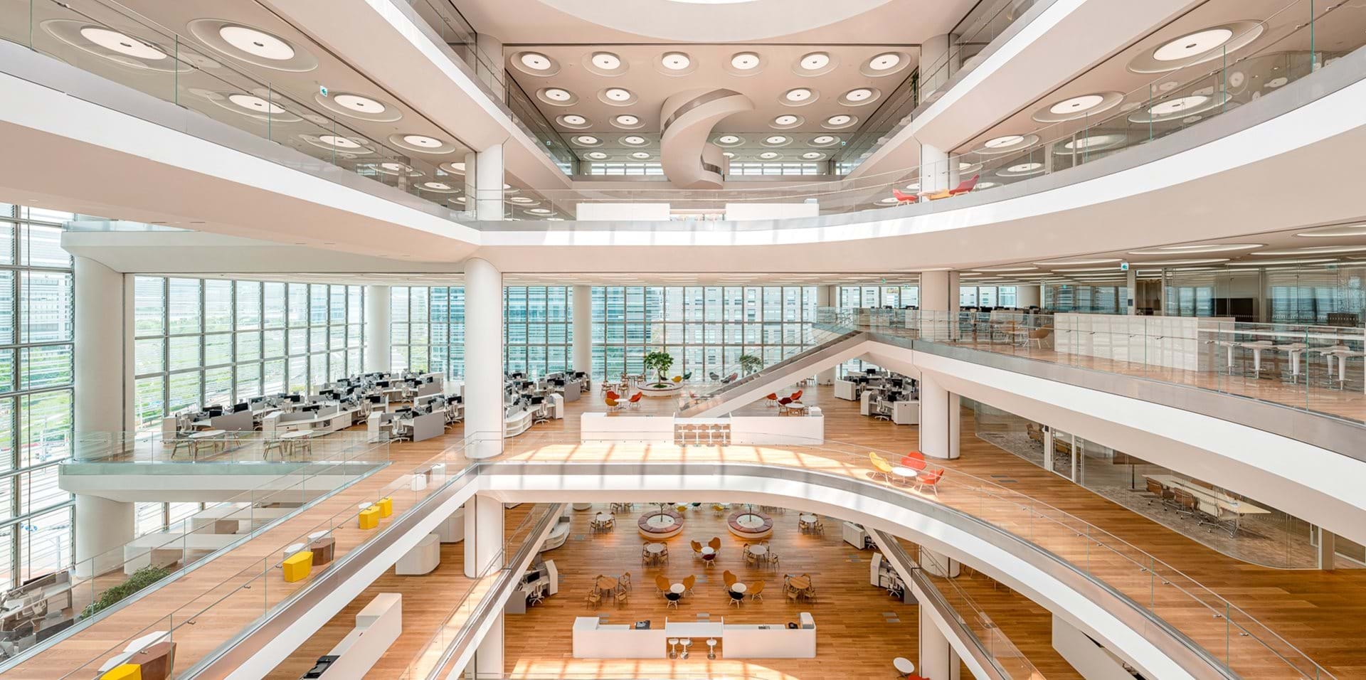 Building on the successful partnership developed during the Hankook Technodome project – the company’s integrated R&D centre in Daejeon – Foster + Partners was asked to design Hankook’s new headquarters in Pangyo, on the outskirts of Seoul. The new building embraces several themes that are symbolic of Hankook’s desire to create a dynamic office environment that supports flexible working styles, as the company looks towards the future. The building serves as a catalyst for change for the company’s ongoing efforts to inculcate a progressive corporate culture.