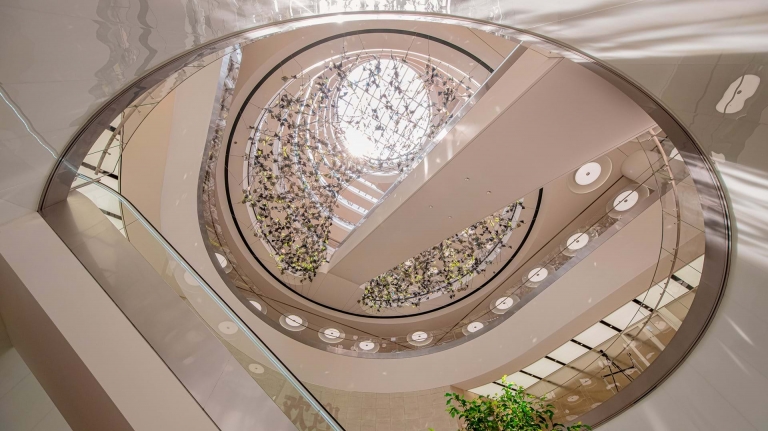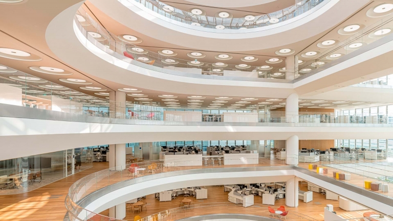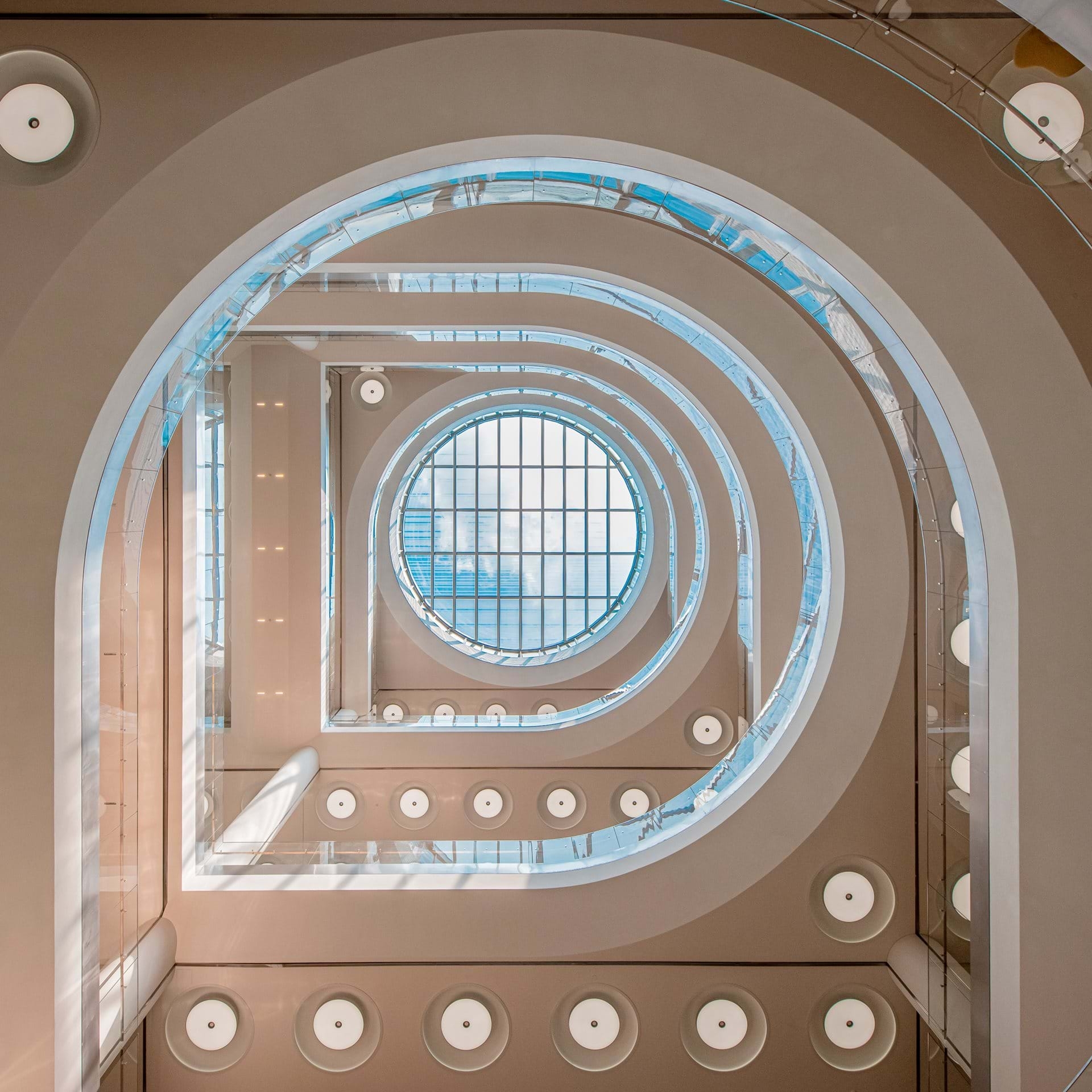 The new headquarters reflect Hankook’s development as a global brand, echoing the excellence in engineering that the company represents. The ten-storey building houses the Hankook offices and its subsidiaries, alongside a state-of-the-art business centre with a 175-seat auditorium. The floorplates spiral around a central atrium, creating spaces of differing heights throughout the building. The dynamic volume generates visual connections across the different levels encouraging staff interaction, while also letting natural light deep into the heart of the building.