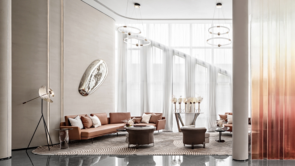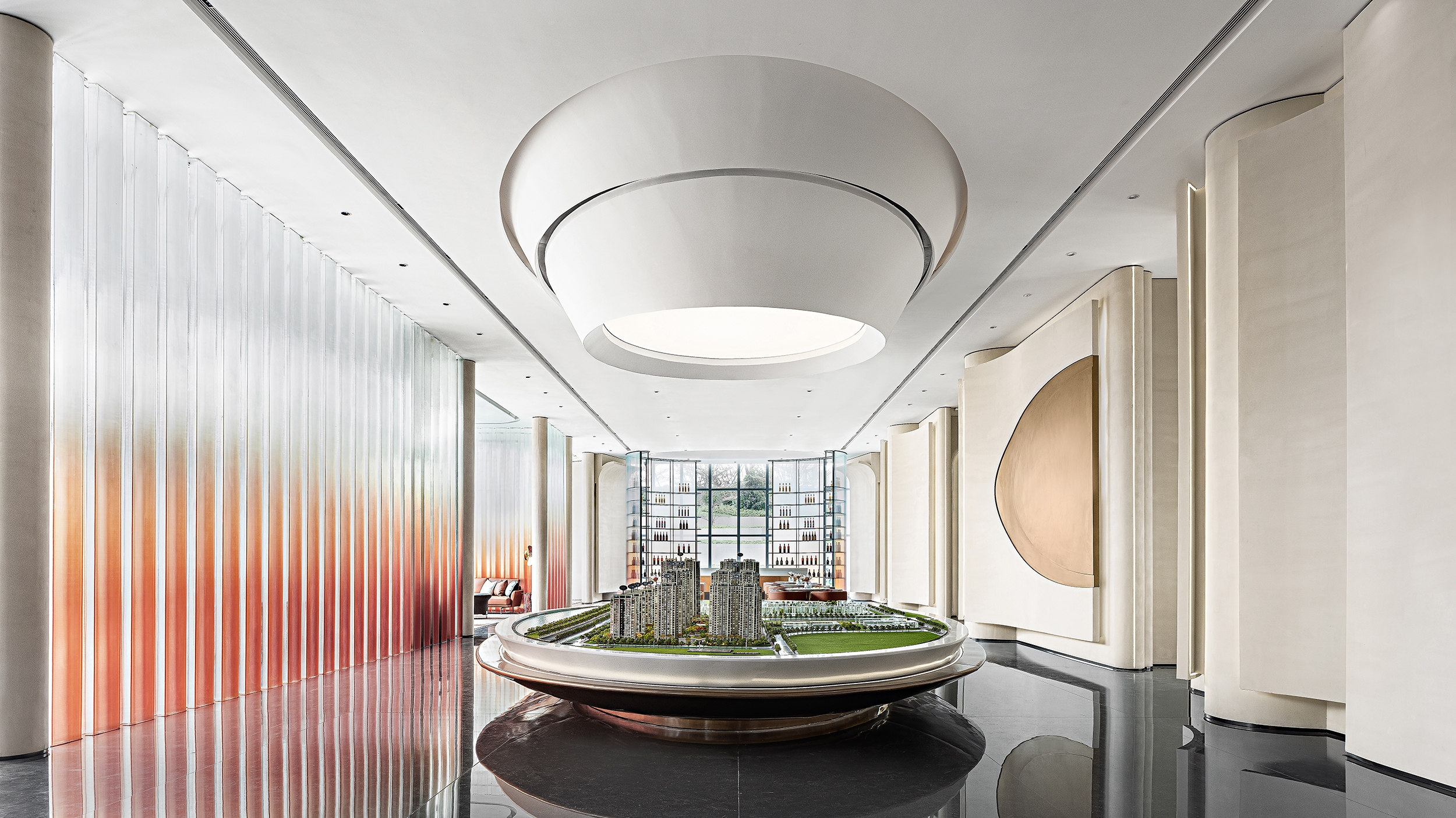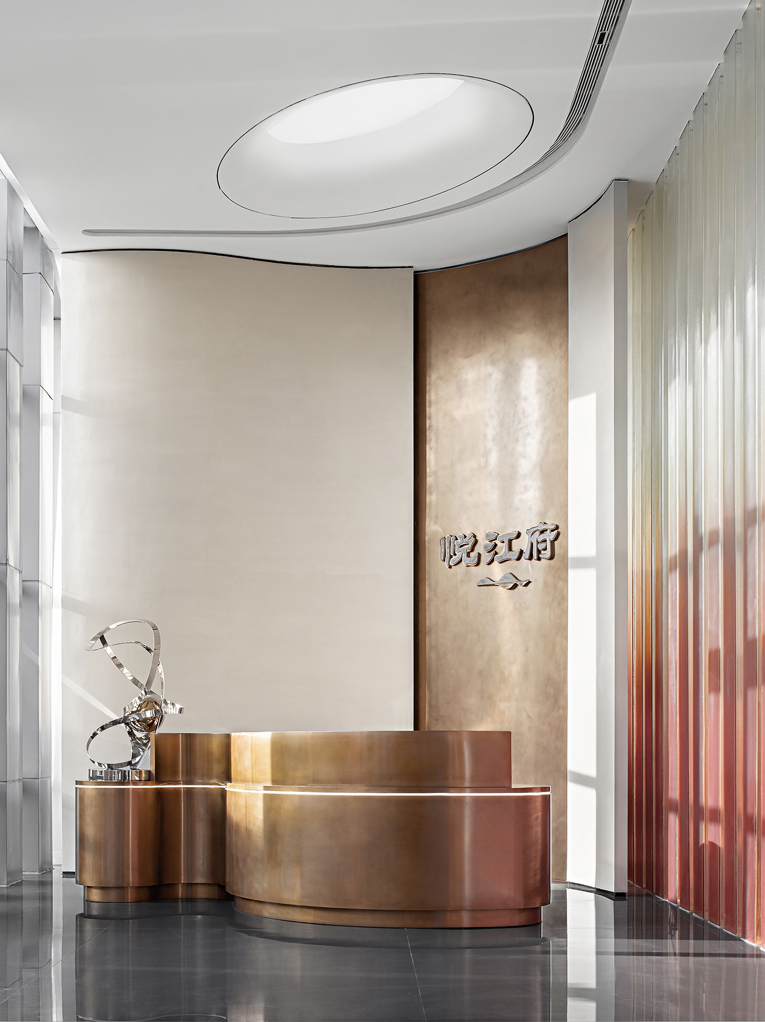 Zhonghai Yuejiang Mansion is built on the sea, and the design concept is developed with the concept of "watching the moon". Through the lingering stars and the curve of the universe, it gives new vitality to the architectural space. Looking at the seaside, the sun and the moon reciprocate on the sea, the sky full of stars in the morning, haunting the endless night sky, and the interstellar curve transforms the space into a rhythmic and dynamic art space. Space and nature reflect each other, people and time, thinking and creation, the new art is intertwined in the space gap, further sublimating the concept of Mochizuki.