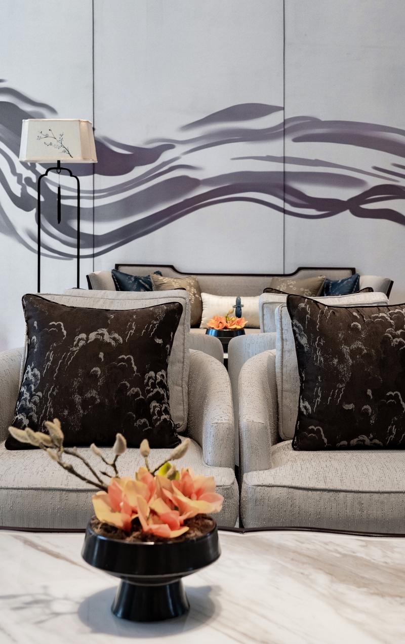 3. Unique elements of mountain and plum blossom adorn each space, creating a fresh sense of Oriental Zen.