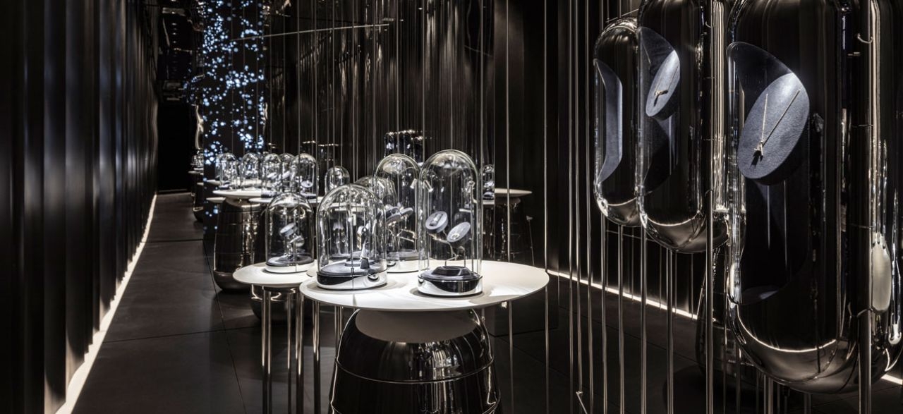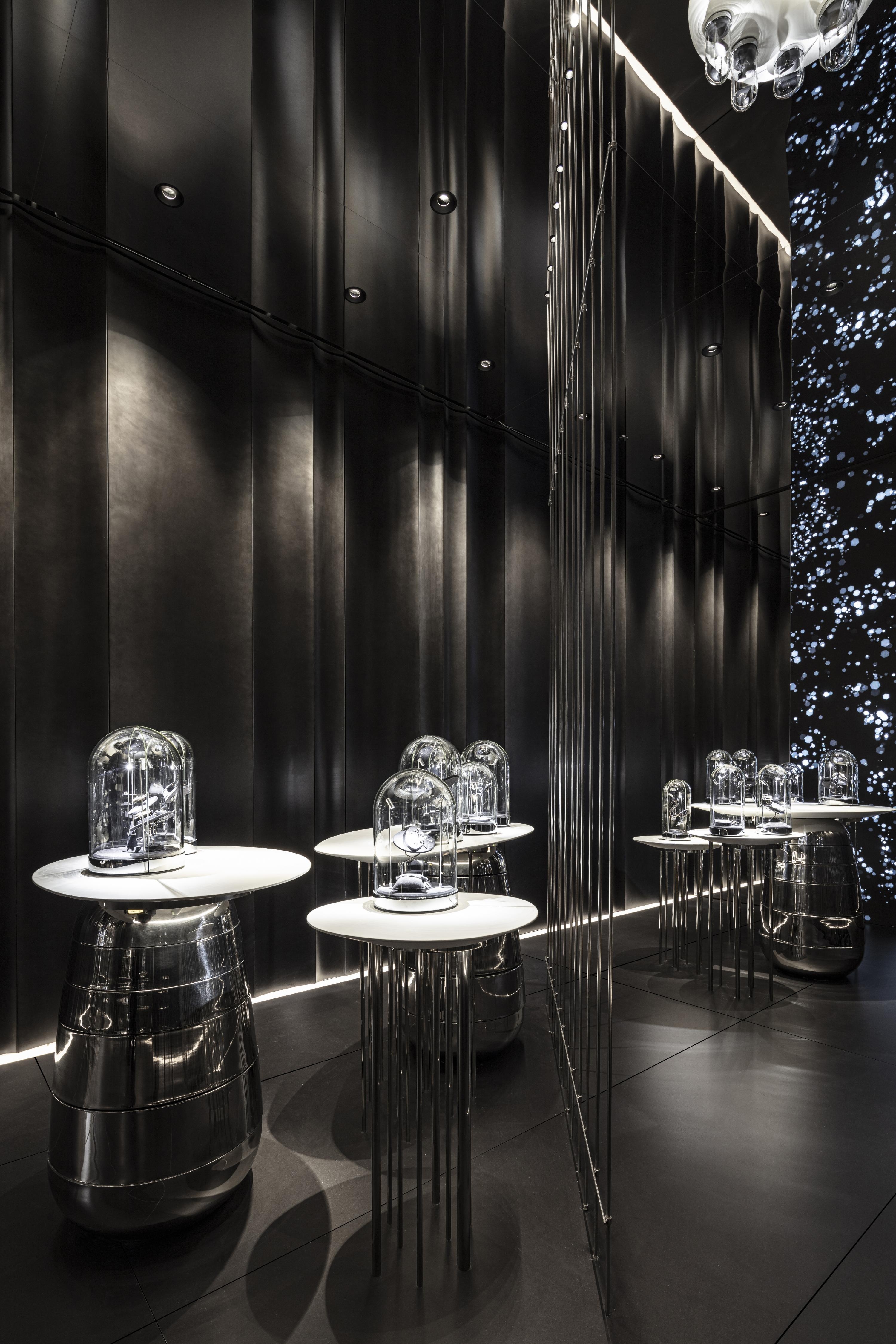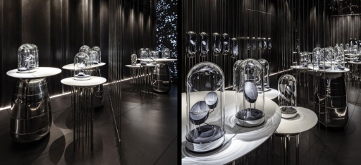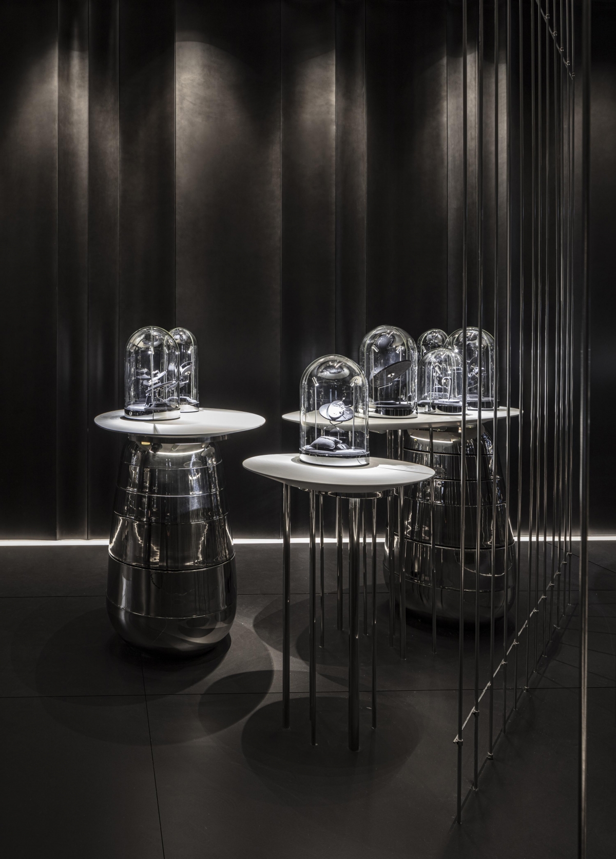 One was nature-driven, the forest. The other was culinary-driven, inspiring us to serve the jewelry pieces rather than presenting them. The design alludes to a very informal, strongly emotional and holistic retail experience. While the “forest’’ initiated the spatial quality and the sequence of movement in the store, the culinary world inspired the intimate and personal moments one experiences while engaging with an object of desire. Both worlds are omnipresent in our daily life and both tick our innermost emotions.