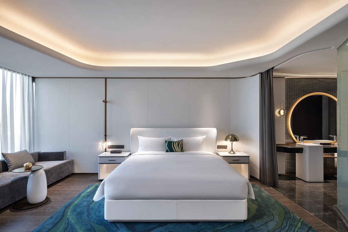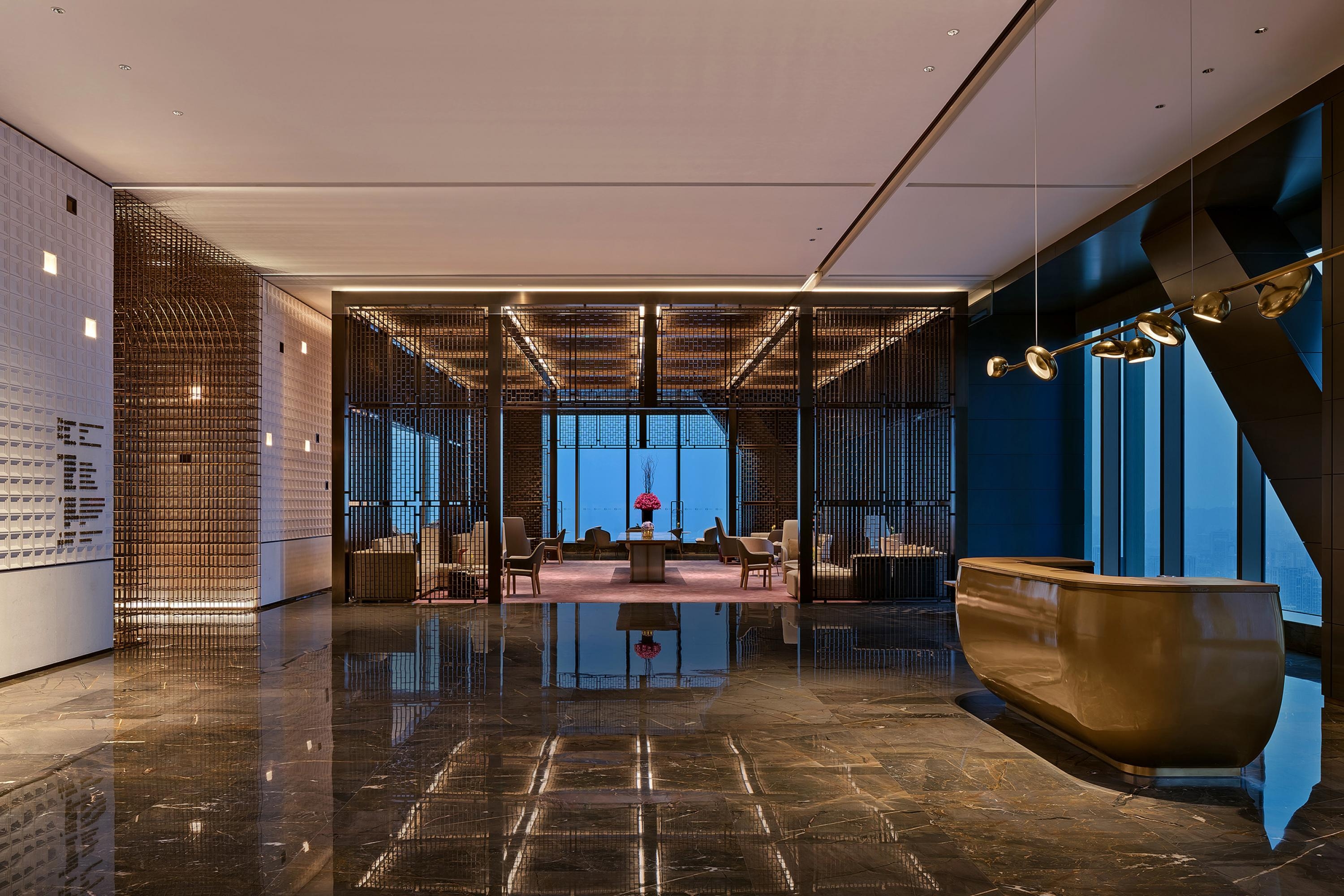 Golden Eagle G Hotel Nanjing is located at the top of the world’s highest three-tower building and also Asia’s largest commercial complex. In line with the artistic level of the landmark, it stands at a height of 368 meters to present a top-class luxury and fashionable lifestyle. The interior design team define “trend” as the establishment of common cultural cognition beyond sensory stimulation. With this design philosophy, the designers combine Nanjing’s profound history and culture with modern trendy lifestyle to create a brand-new upscale and stylish hotel in China.