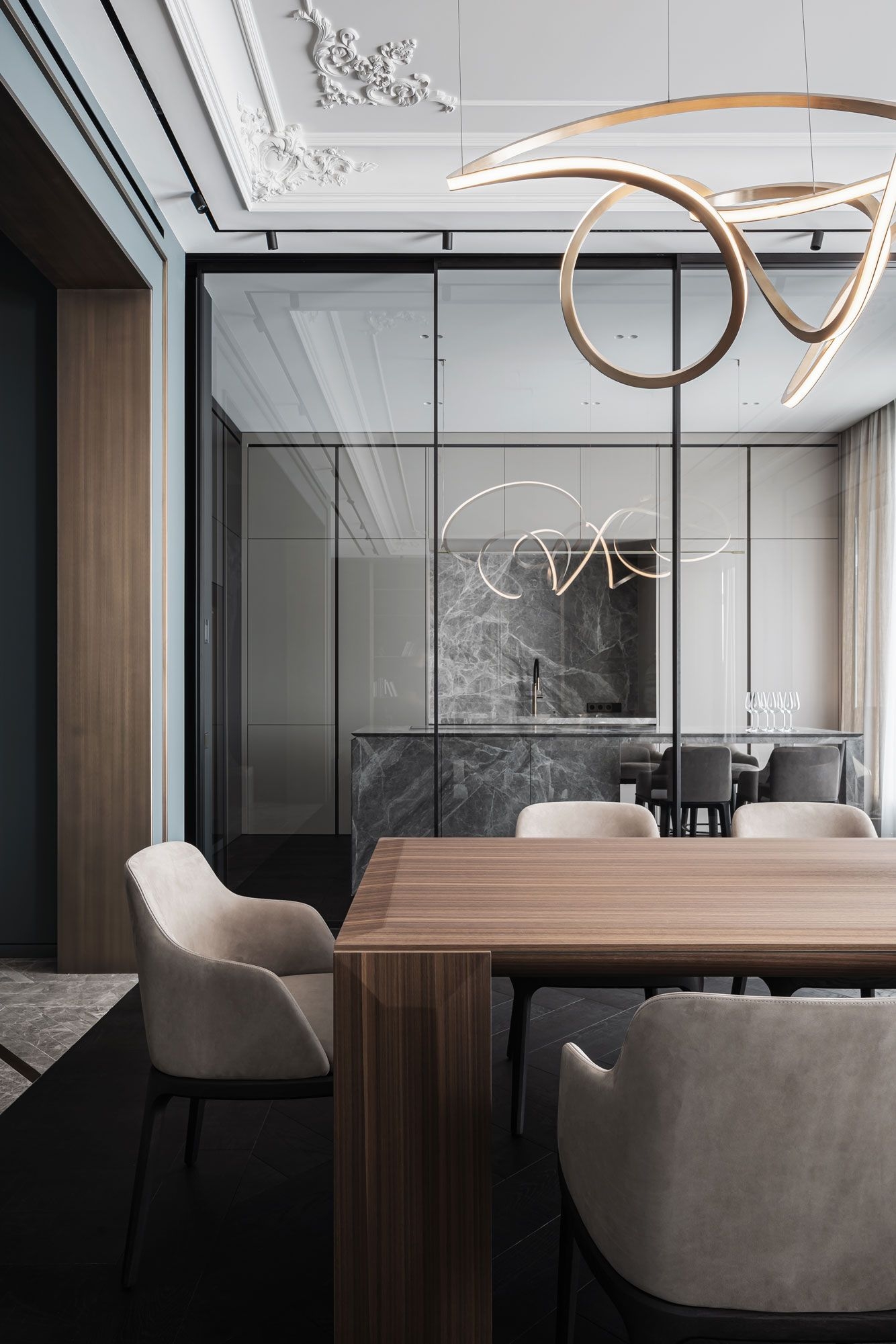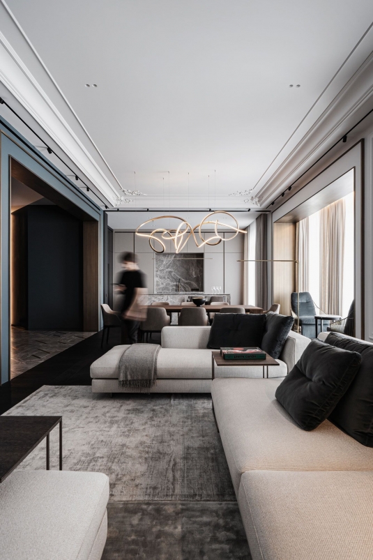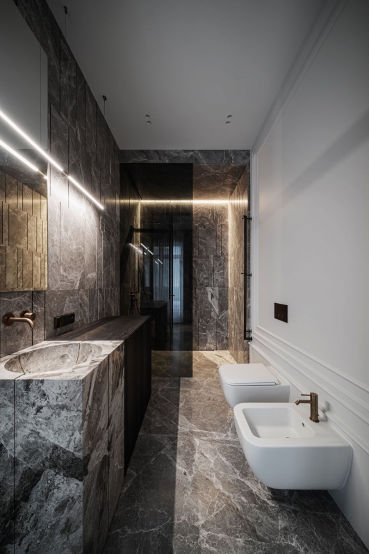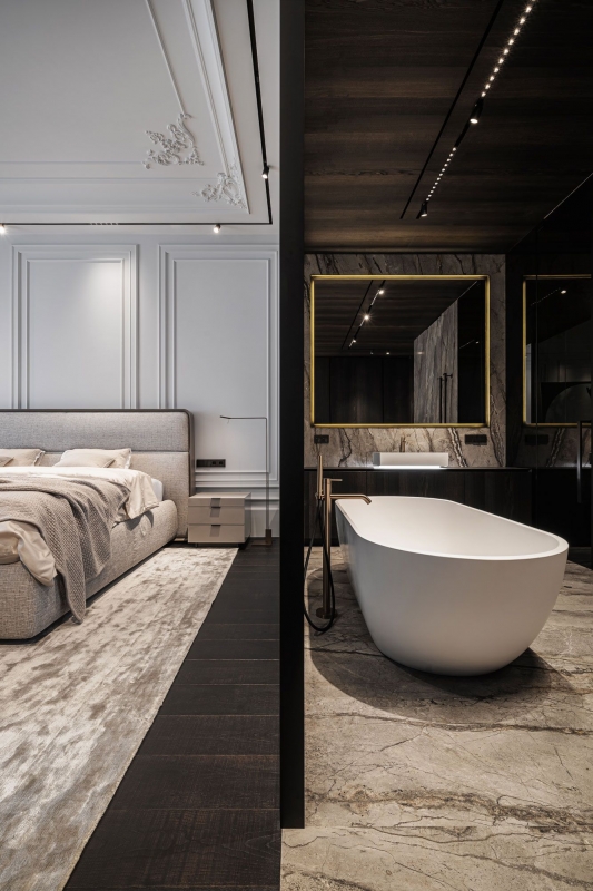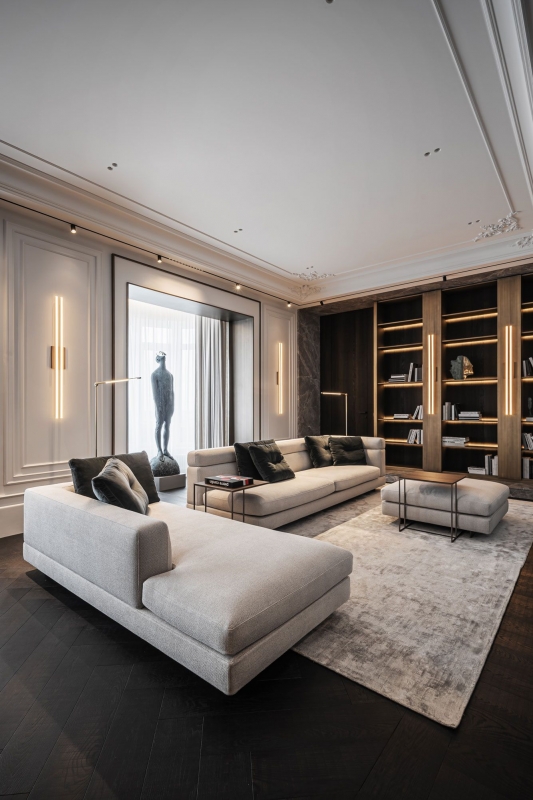 In working on this project, we adhered to the less is more principle. We have created a clean interior, modern classics with sophisticated fittings, natural materials and custom furniture. This apartment as a holistic perception of the architectural direction of the entire historical part of Kyiv city.