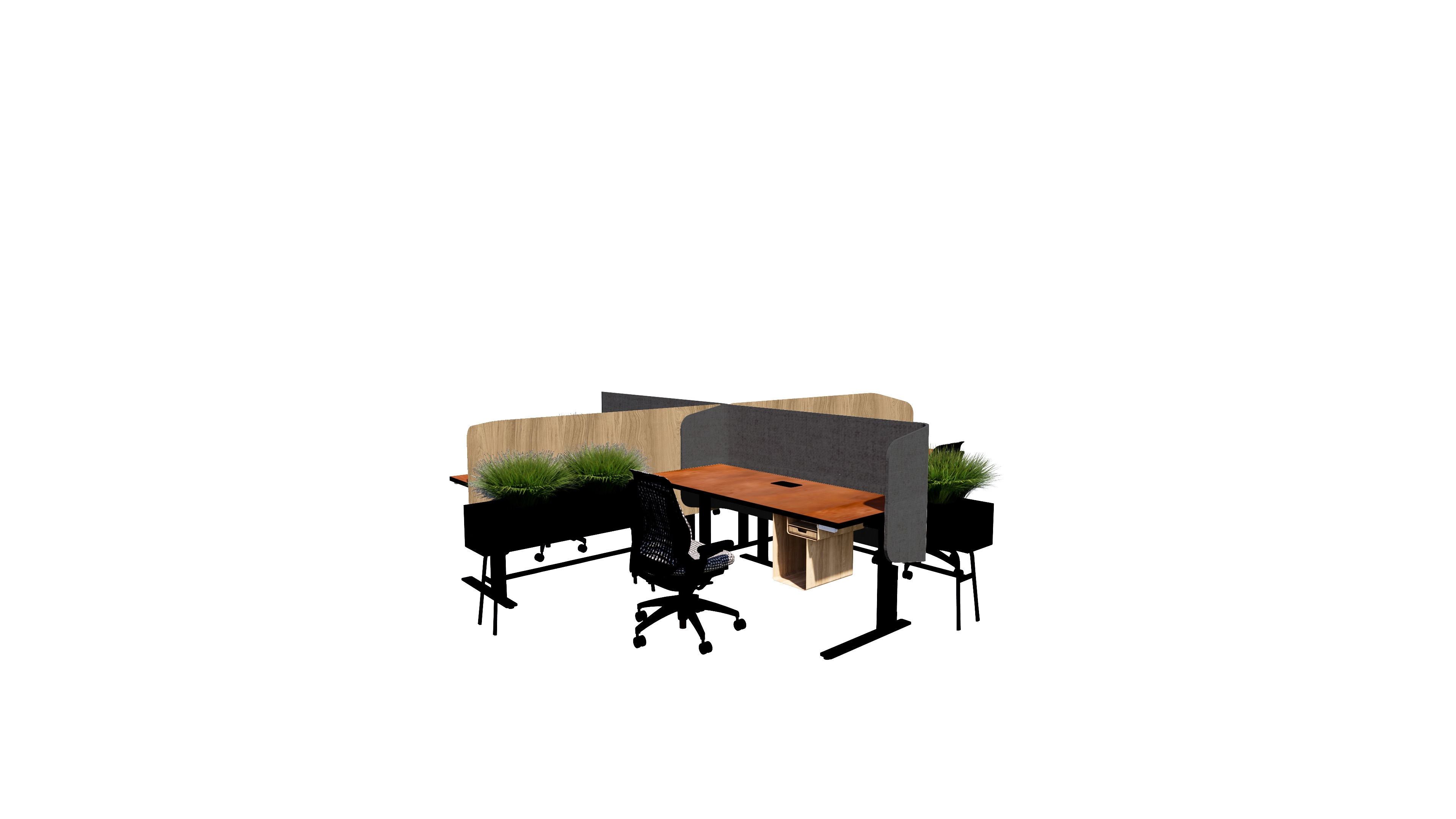 Returning to work post Covid 19, Skydda ("Protect" in Swedish) is a cluster of workstations that supports as a sneeze guard, helps employees focus attention, and provides social distancing, while a planter at each workstation provides natural air filtration and puts the mind at ease when surrounded with nature. These two elements combined with natural antimicrobial finishes on the desk surface such as copper, bamboo, and fabric infused with zinc and copper oxides, destroys viruses on surfaces that are touched most frequently. Thus providing a safe haven at work that is not only functional, but also aesthetically pleasing.