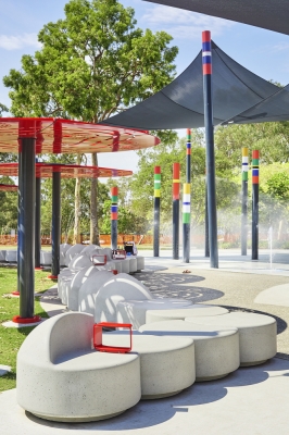 Logan City Council worked with the community to provide a new water park, which was installed adjacent to the existing playground, located at Wembley Road, Logan Gardens. The space was focussed on community interaction and included multiple interconnected areas for play, socialising, and recreation.