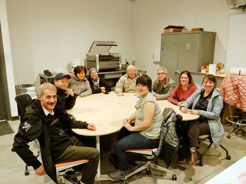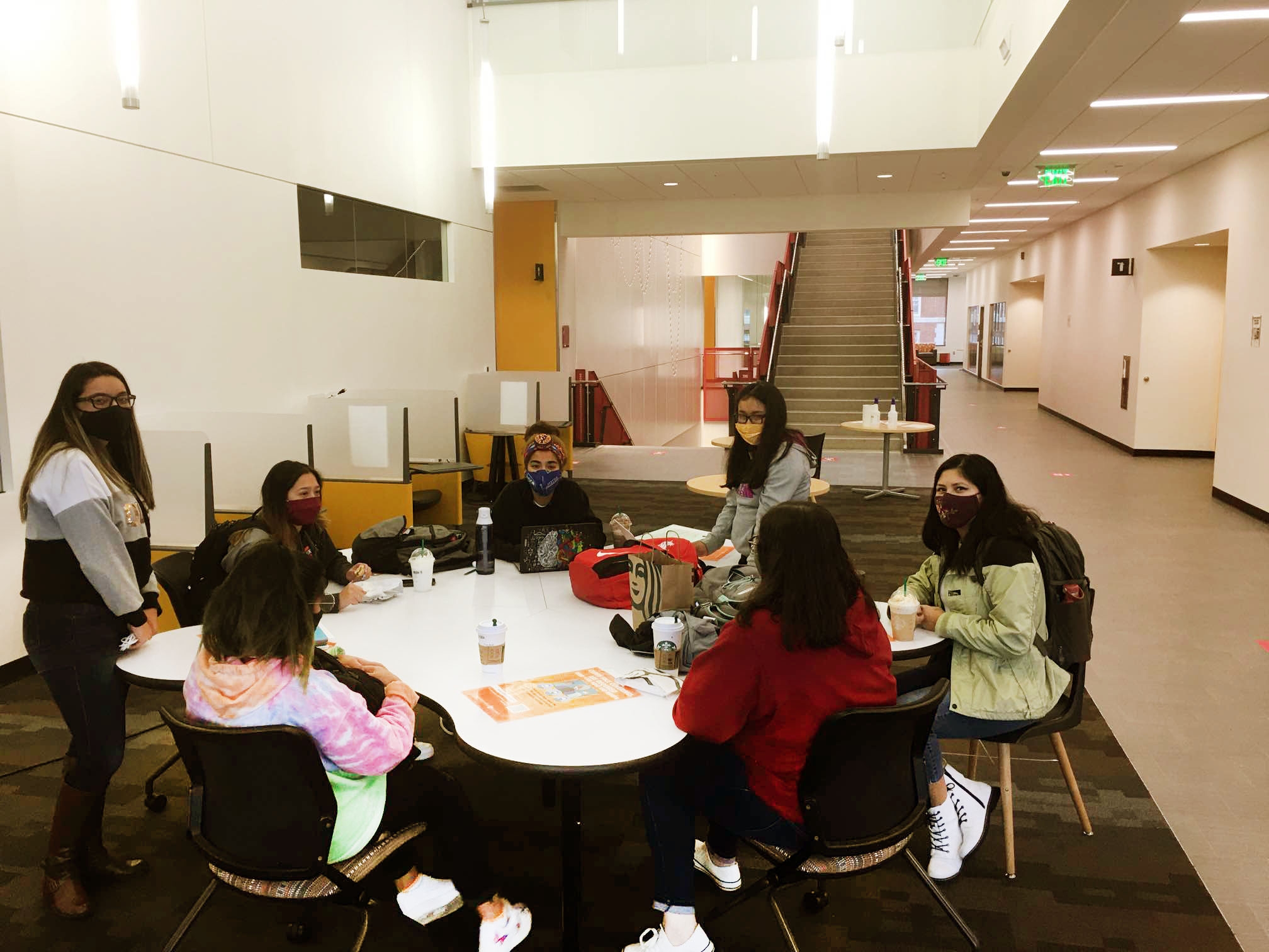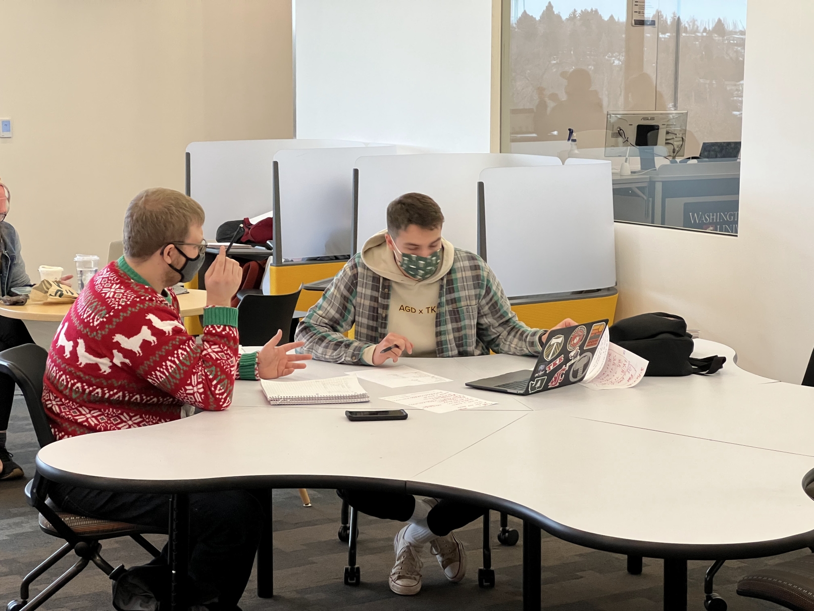 Through the construction of 6 full-scale prototypes and a series of controlled focus groups, a radial arrangement of petals and pockets emerged that allows users to customize their position and involvement at the table. Visual access to every user is achieved simply by rotating in one’s chair. The table can be used by a group of 10 or by multiple smaller groups simultaneously. The size and shape allows users enough space for a laptop and accessories or provides educators enough space for classroom learning tools. The leg arrangement meets ADA requirements and allows all users ease of movement. Social distancing is achieved at half capacity and the non-hierarchical layout solves the problem of social awkwardness in public spaces, especially post-COVID.