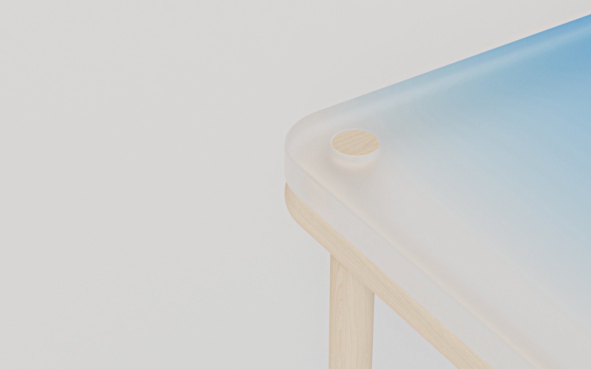 The two front legs extend beyond the base frame so that the seat can perfectly nestle within the structure, creating a seamless surface for the user to sit on.