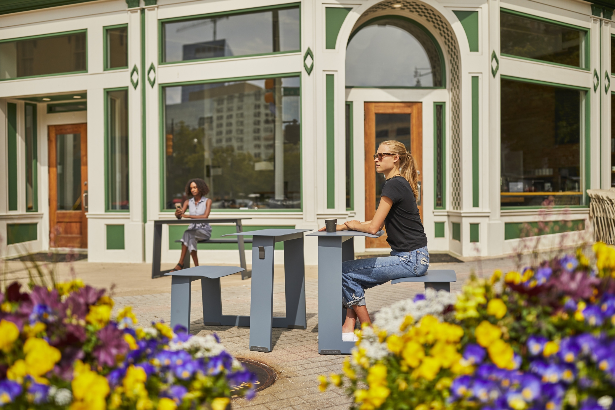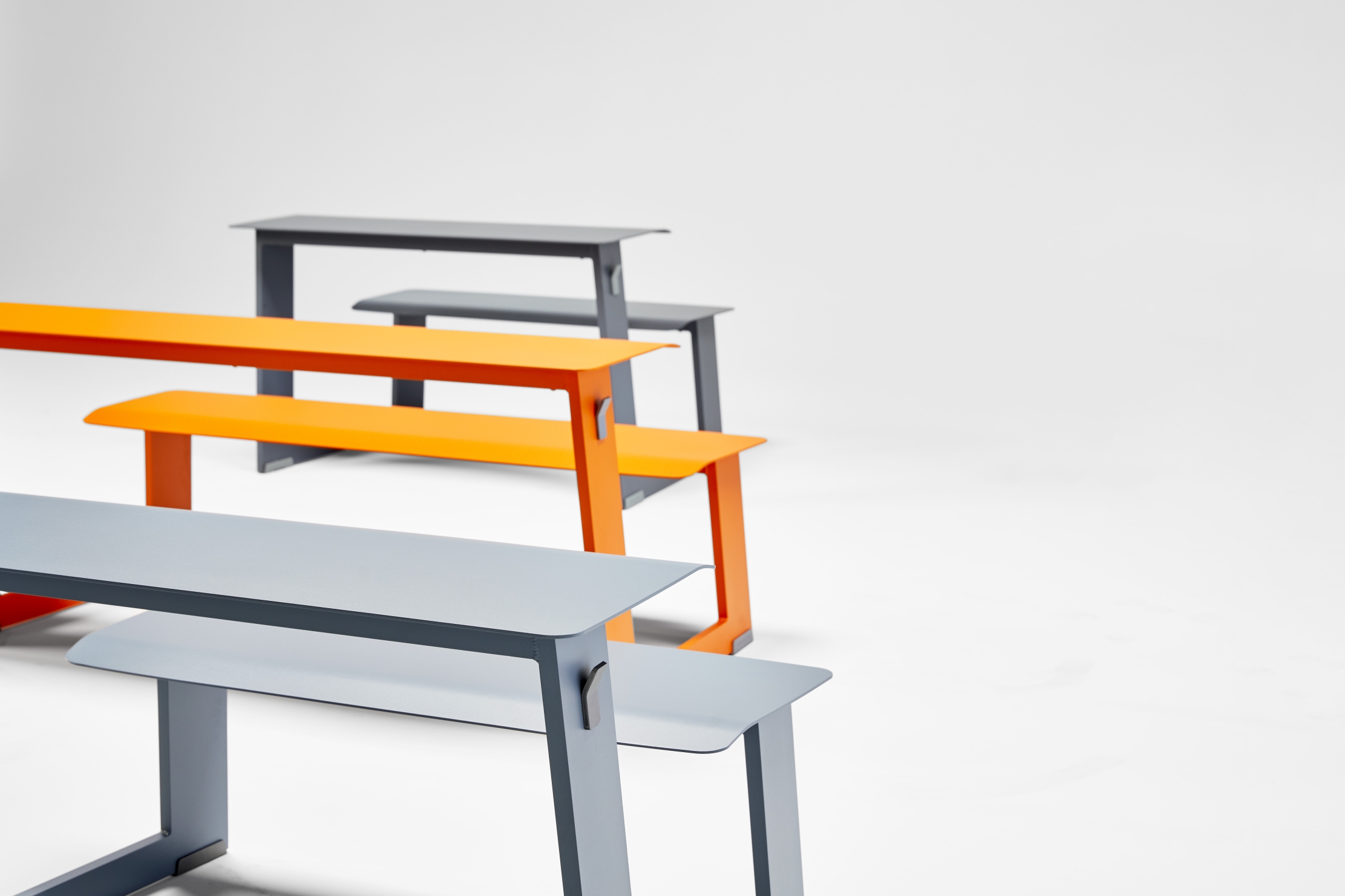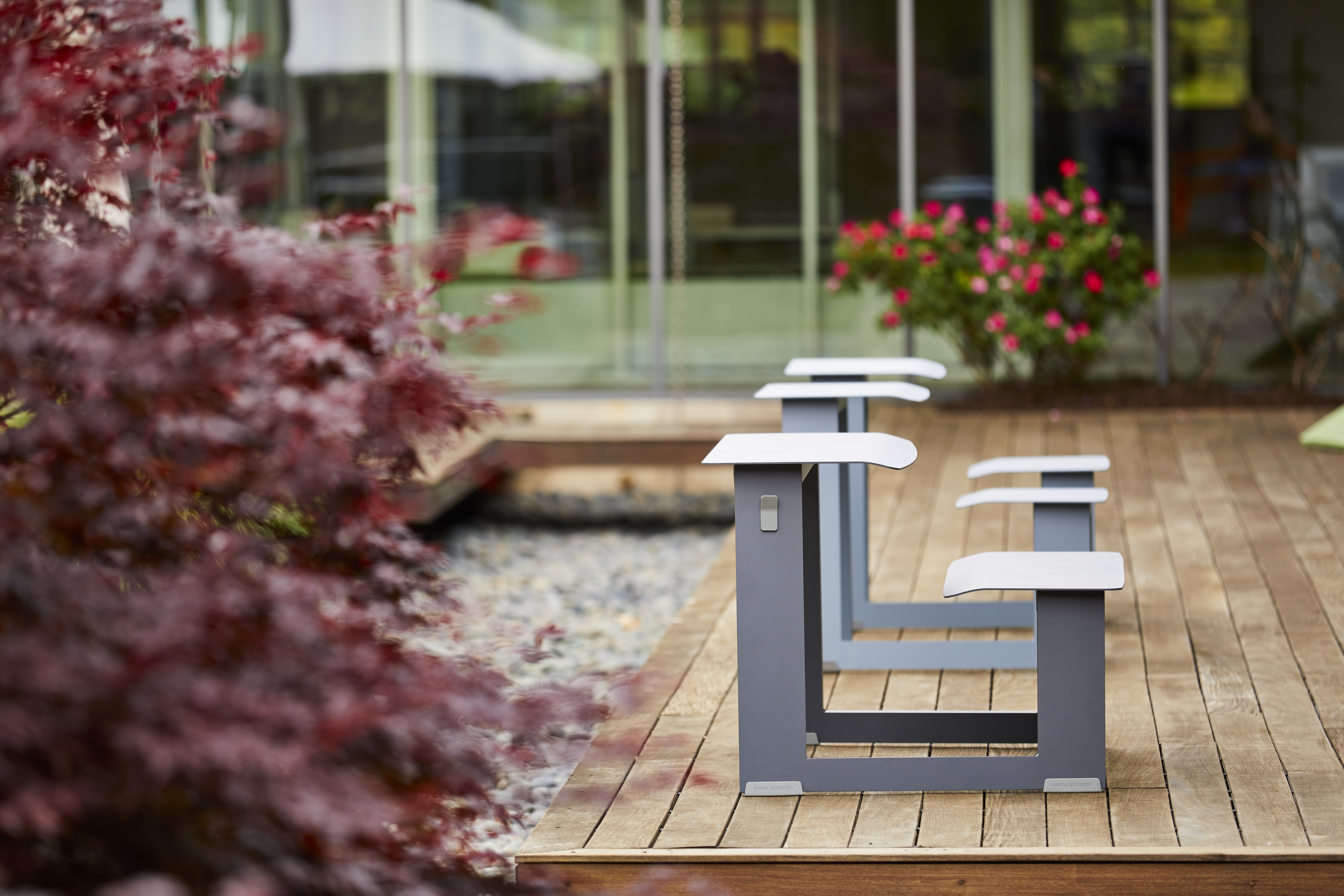 Take-Out expands the scope of the connected seat concept, bringing modern refinement, simplified lines and—most importantly—adaptability to the category. Light enough to be picked up, arranged and rearranged, Take-Out simplifies the creation of multifunctional outdoor settings, offering a multitude of ways for people to connect through a simple and elegant site furnishing—face-to-face or abreast, for an intimate chat or a large group gathering. Gently curved edges eliminate pressure points on the elbows and behind the knees while also lending Take-Out a warm, welcoming gesture.