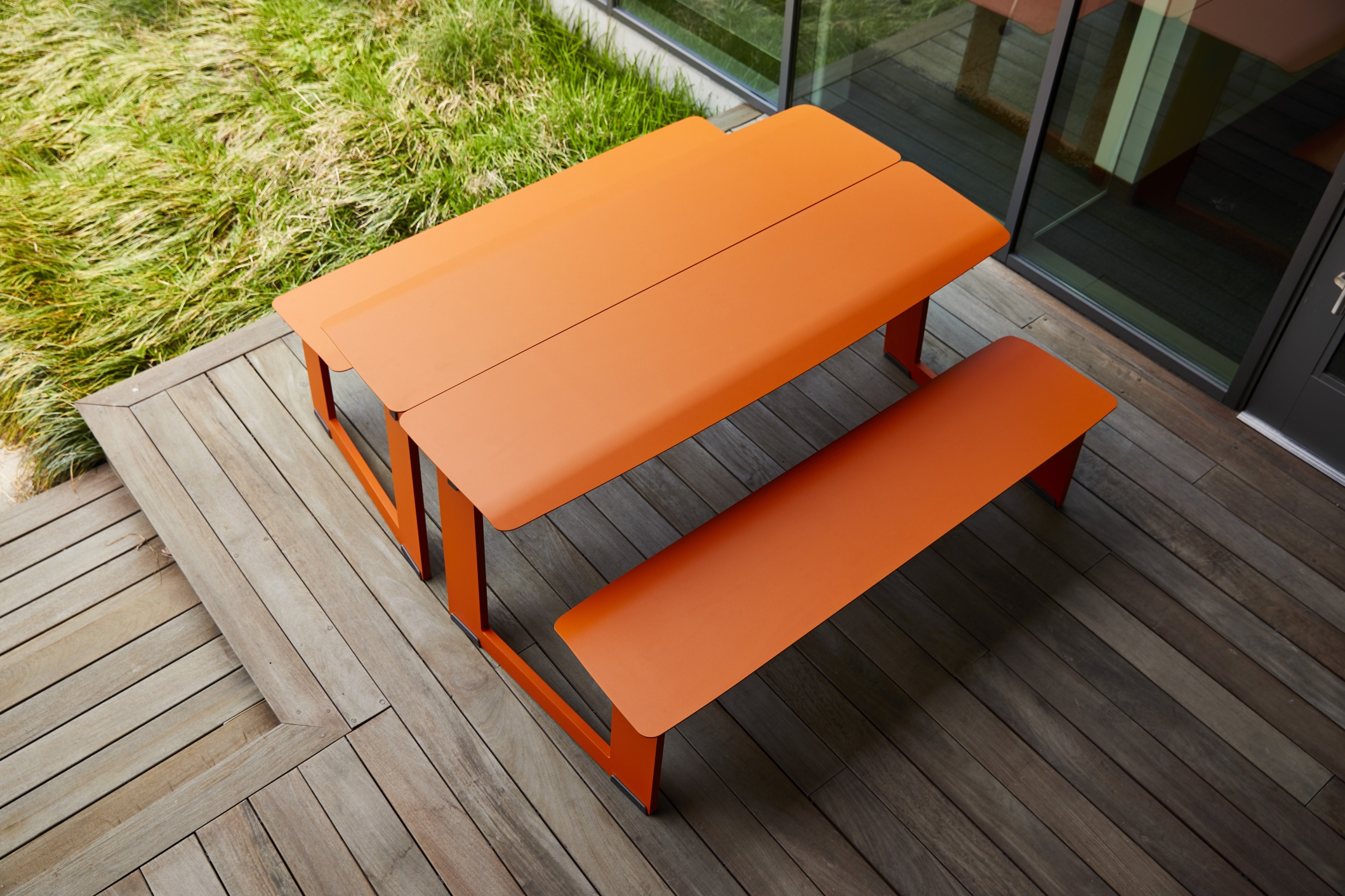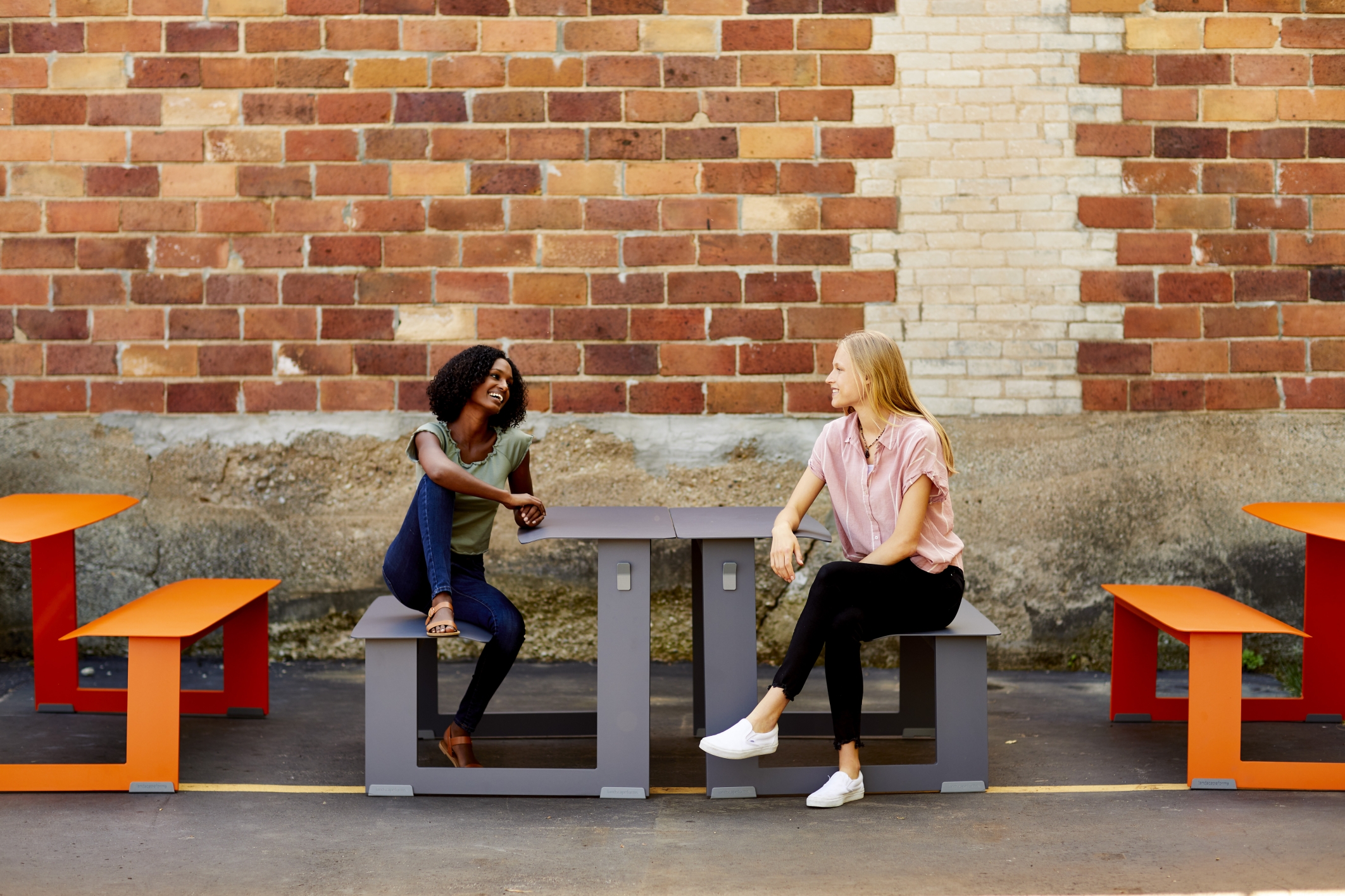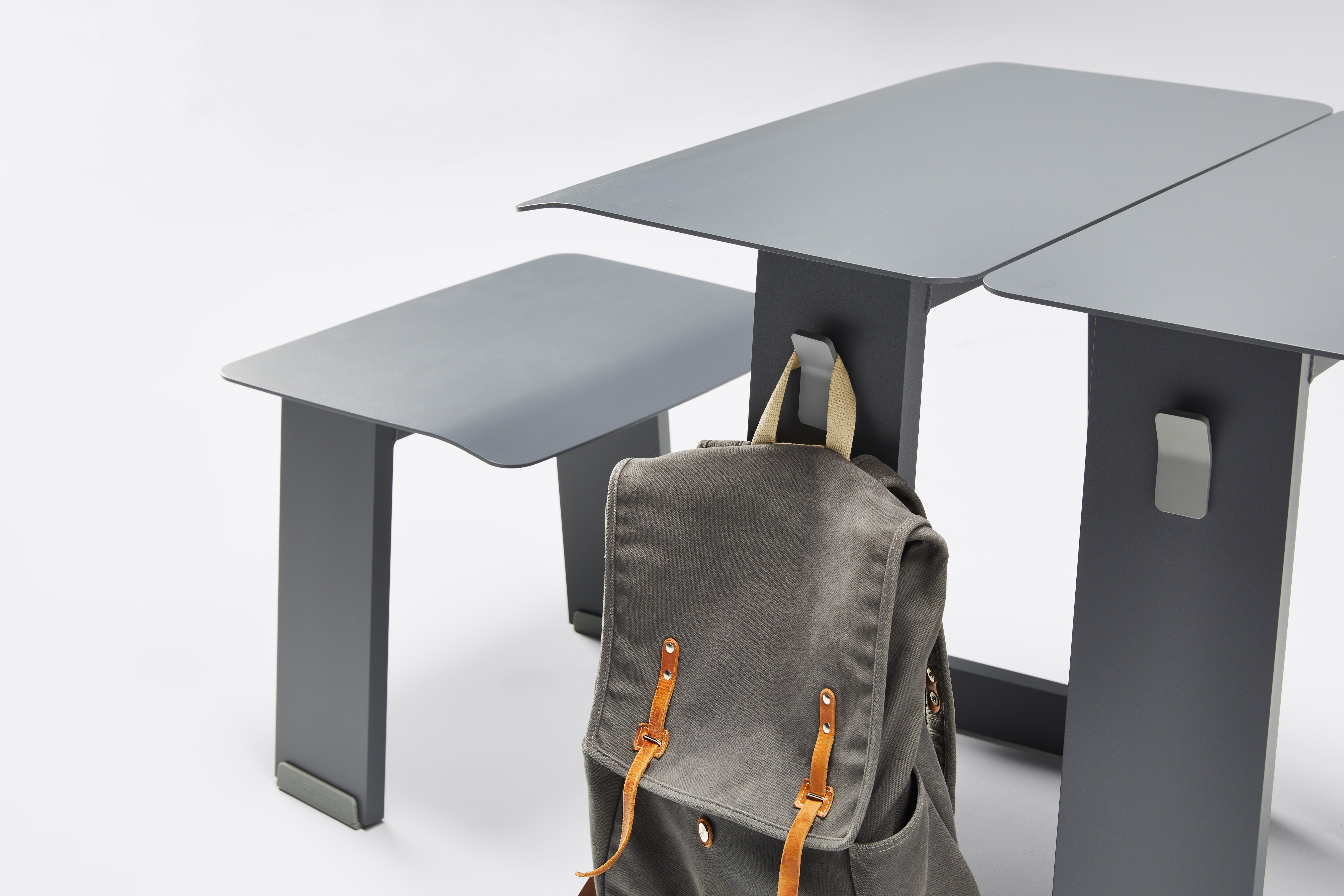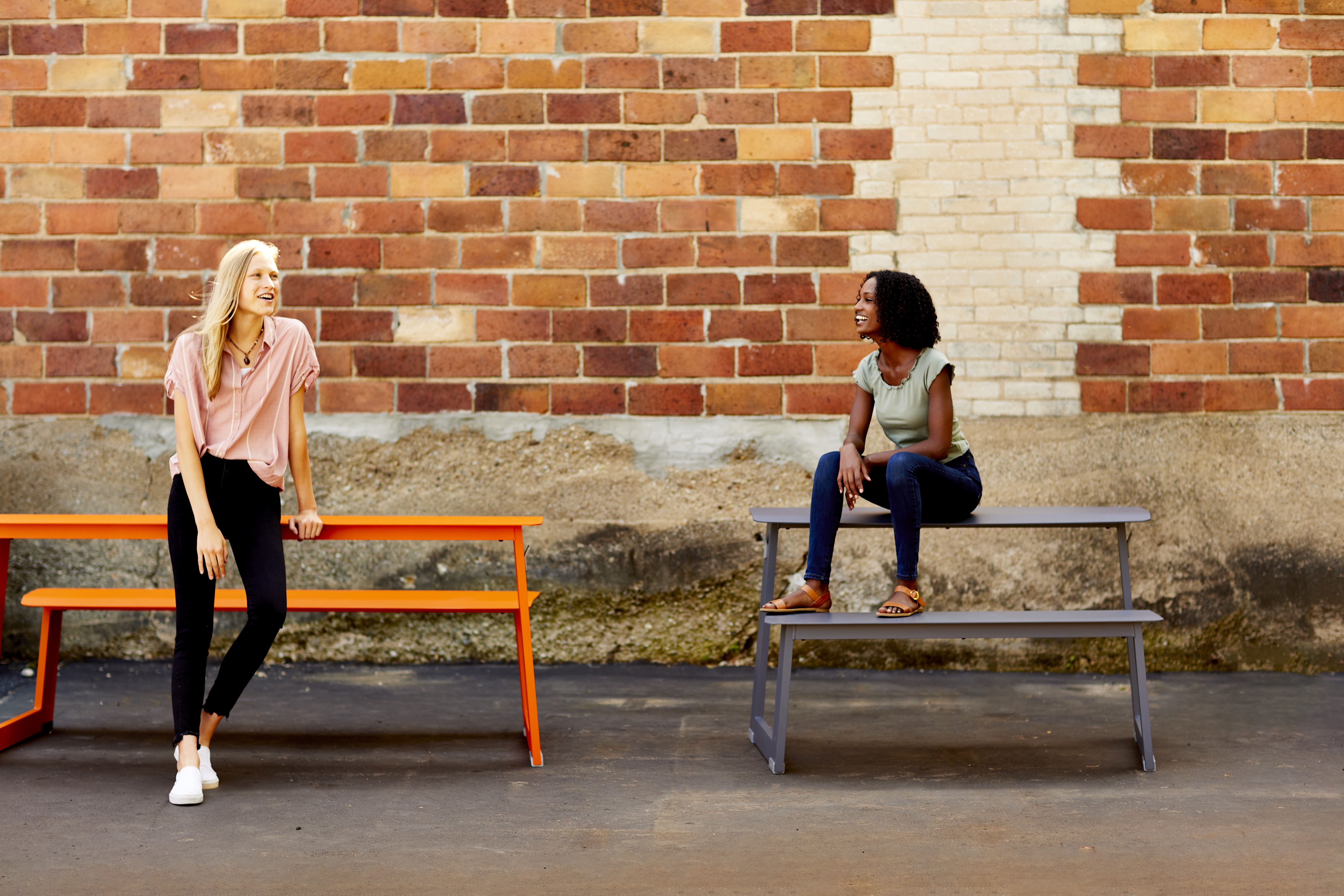 Take-Out expands the scope of the connected seat concept, bringing modern refinement, simplified lines and—most importantly—adaptability to the category. Light enough to be picked up, arranged and rearranged, Take-Out simplifies the creation of multifunctional outdoor settings, offering a multitude of ways for people to connect through a simple and elegant site furnishing—face-to-face or abreast, for an intimate chat or a large group gathering. Gently curved edges eliminate pressure points on the elbows and behind the knees while also lending Take-Out a warm, welcoming gesture.