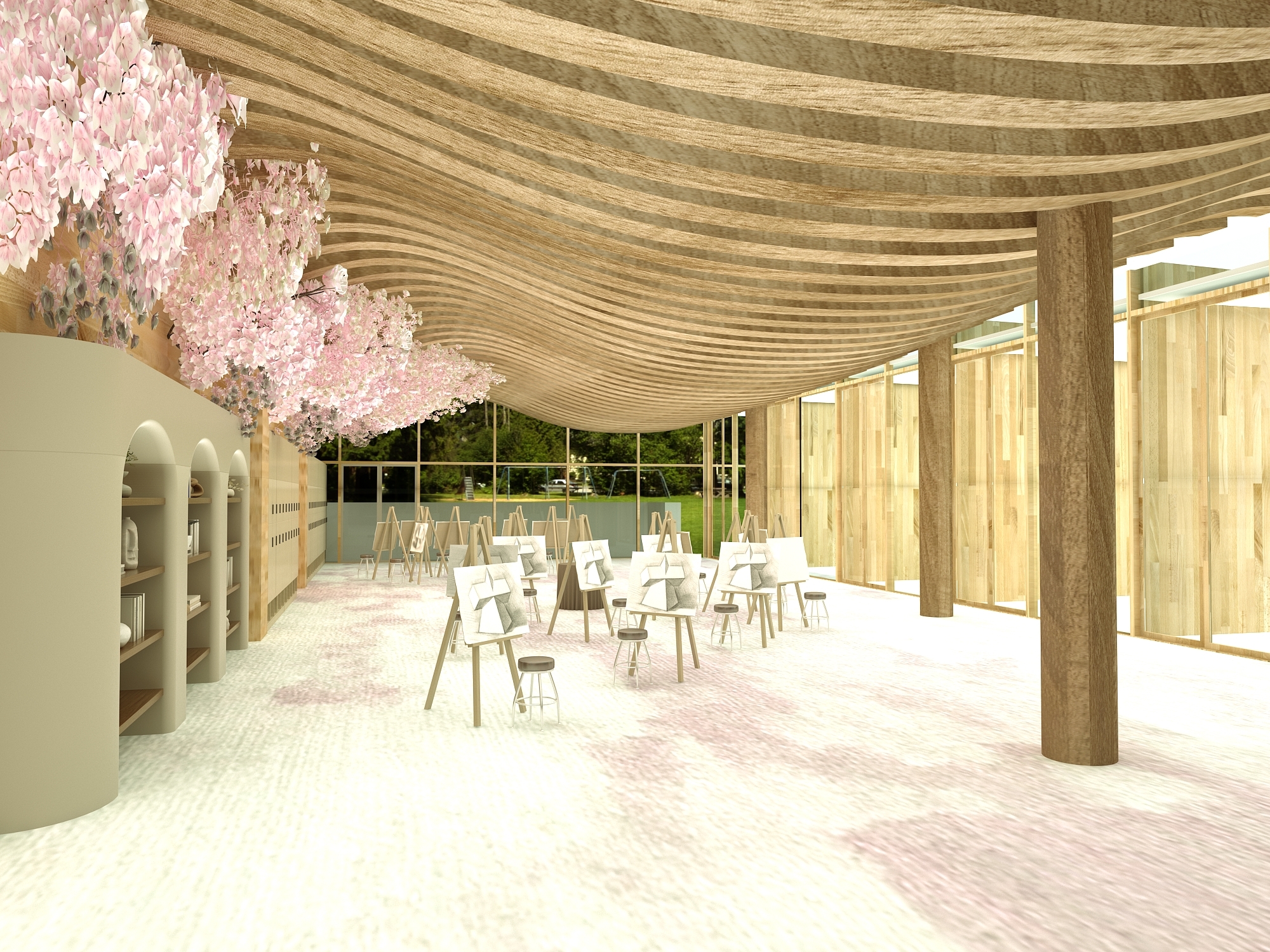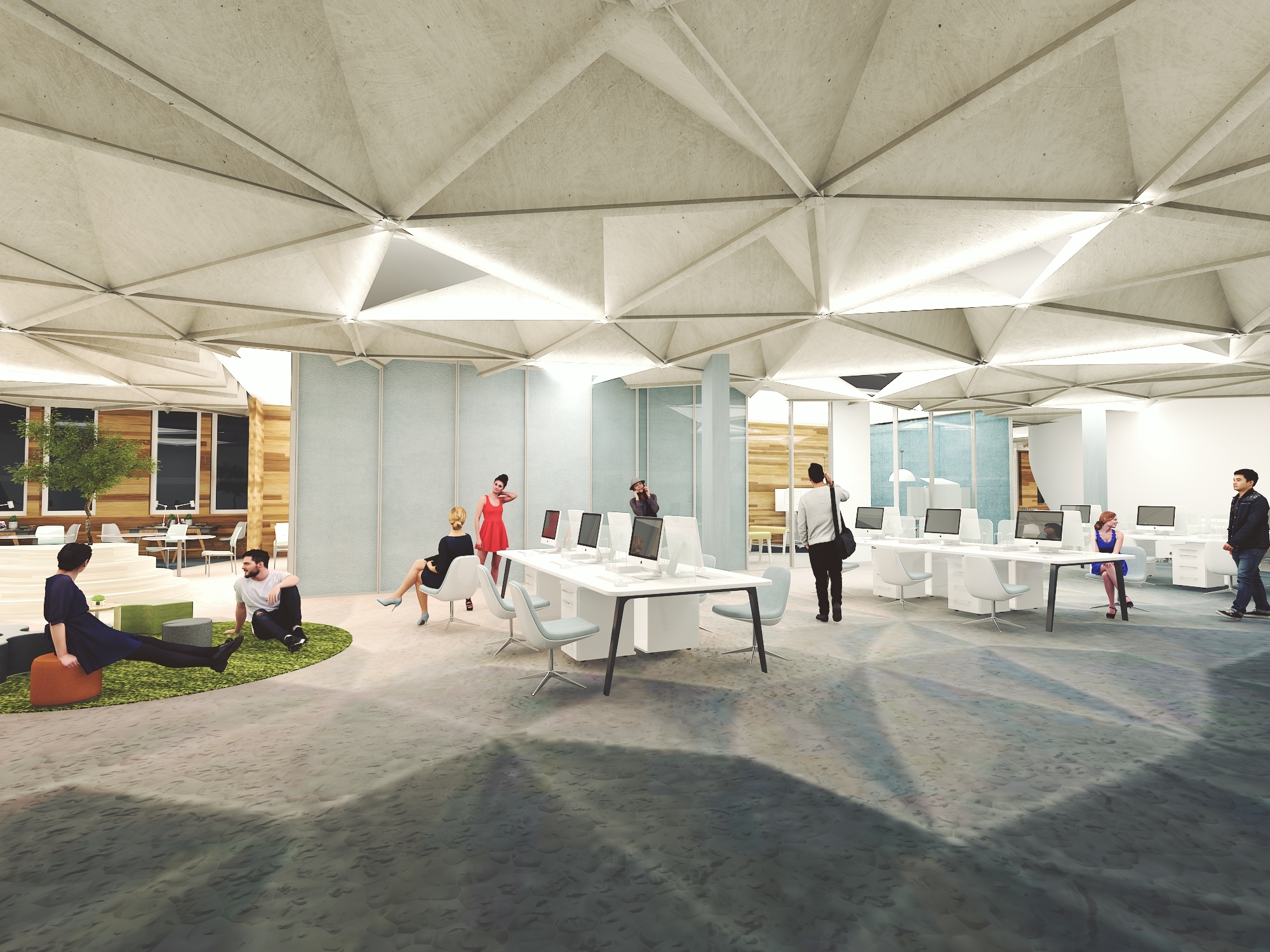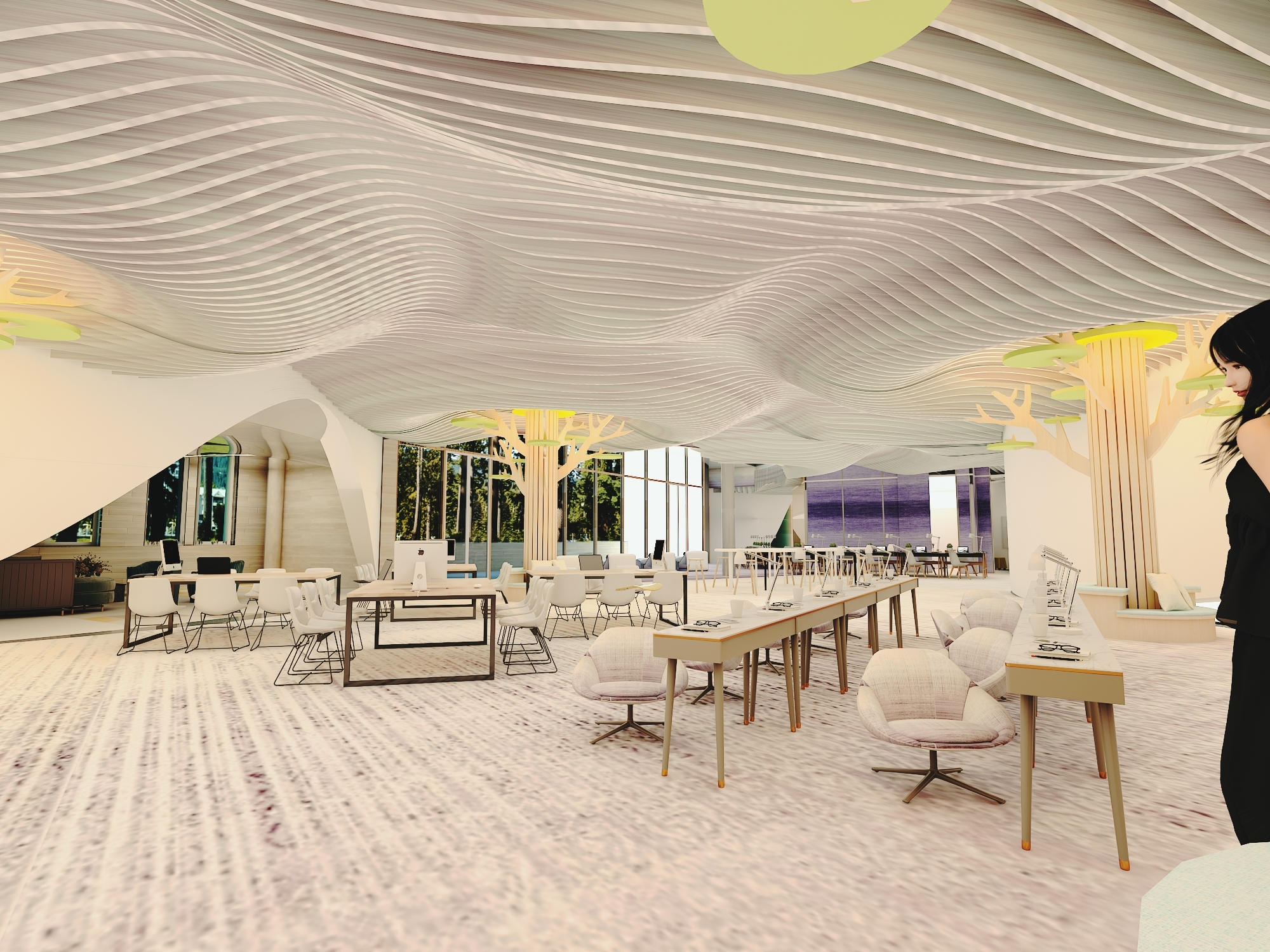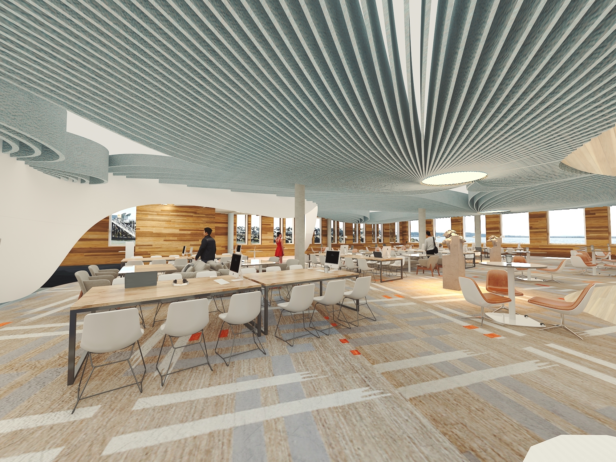 Moreover, the design will enhance the flexibility of the space, so the student can feel comfortable studying, relaxing, or interacting with others. The newly designed learning environment at Salisbury University will become a contemporary space through the creative use of architectural elements making use of the five senses. A warm, inviting and comfortable atmosphere will be created through the sensible use of color theory, light theory, sound design, the HVAC system and ergonomic design. The space planning, material, finish, and build-ins will reflect such theories as place attachment, attention restoration, bandwagon effect, and Maslow’s hierarchy of needs. In fact, all aspects of the new design will attend to students’ sensory needs as well as fuel their motivation and passion toward learning.
