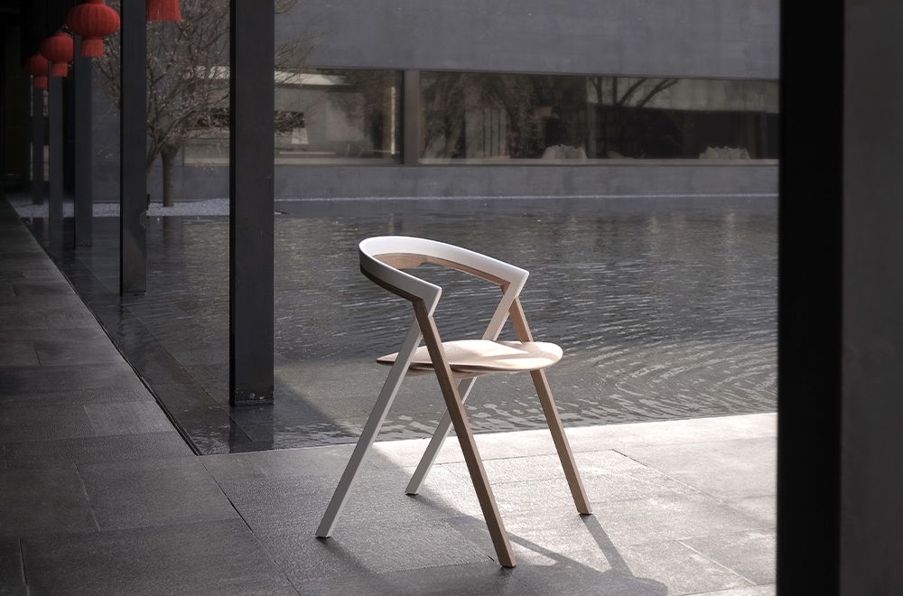 Lotus is a guest chair designed to bring forth a translation of traditional Ming Dynasty chair design for a modern home environment. The design was inspired by a Ming Dynasty folding chair that was created to allow high-class generals to maintain a symbolic status through furniture during an outing. There’s a Chinese idiom that describes the growth of a lotus flower, out of the mud yet unstained, which is the emotion Lotus hopefully illustrates. The characteristics of the imagery is emphasized through the intersecting design crafted through a unique lap joint and defined by a contrasting finish. The construction of the chair is structured with traditional Chinese furniture wood joinery methods: seamless, sturdy, and clean. “Lotus” in Chinese is “Lian”, a character that is also in my late grandmothers name. Having lived through such a turmoil part of Chinese history my grandmother was still the kindest, generous, warmest, and purest of heart person I knew. All of which are emotions I wanted to convey through this chair.