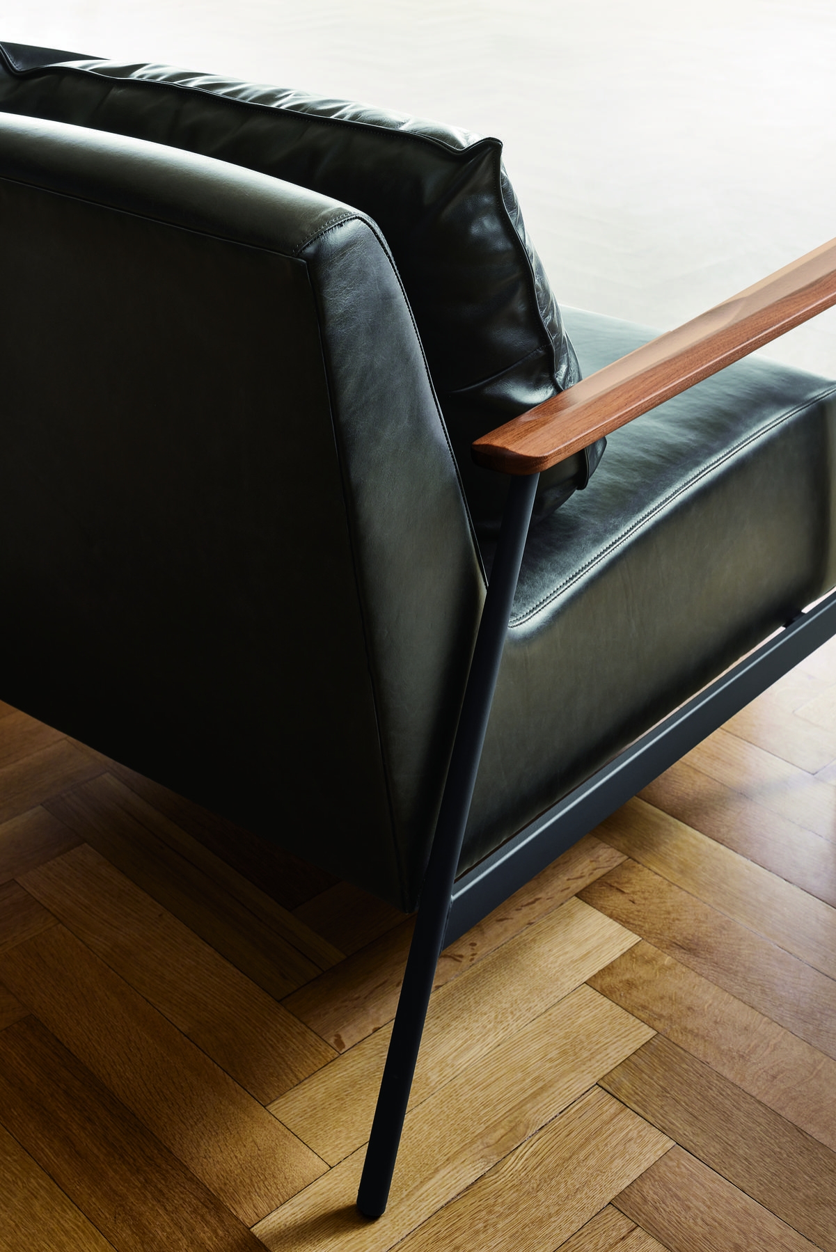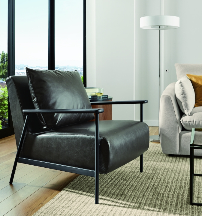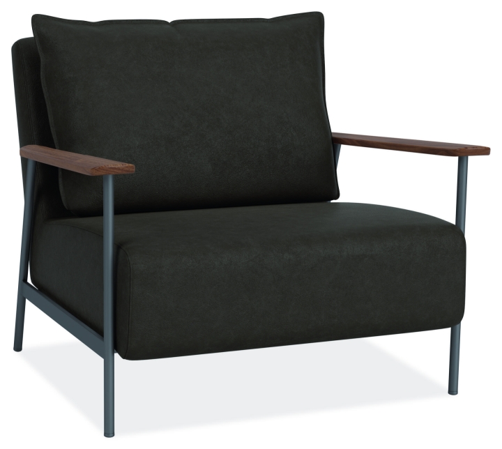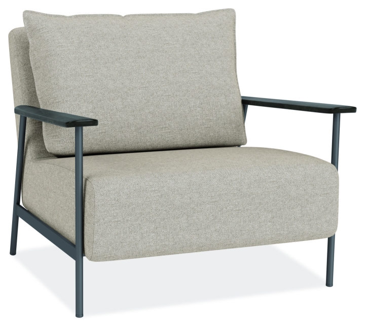 Xavier is an eye-catching modern accent chair that effortlessly blends comfort and style. The thin metal base and solid wood arms are counterpoints to the thick seat. A loose back cushion completes the easygoing style, while the supportive seat grants endless lounging.