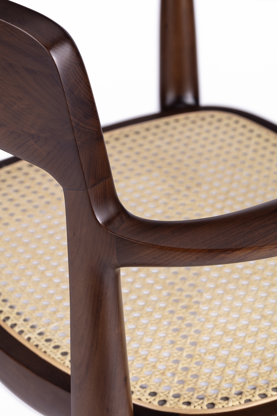 The wood goes through a series of machining processes until it reaches its final shape of each part of the chair. The heavier processes, where there is greater material removal, are done by automatic machinery, others that require greater precision are carried out by CNC machines. In the assembly of the pieces, a refined manual work is done that requires the skill of an experienced carpenter. Its shapely feet connect to the seat in an unusual way, conveying lightness and sophistication.
