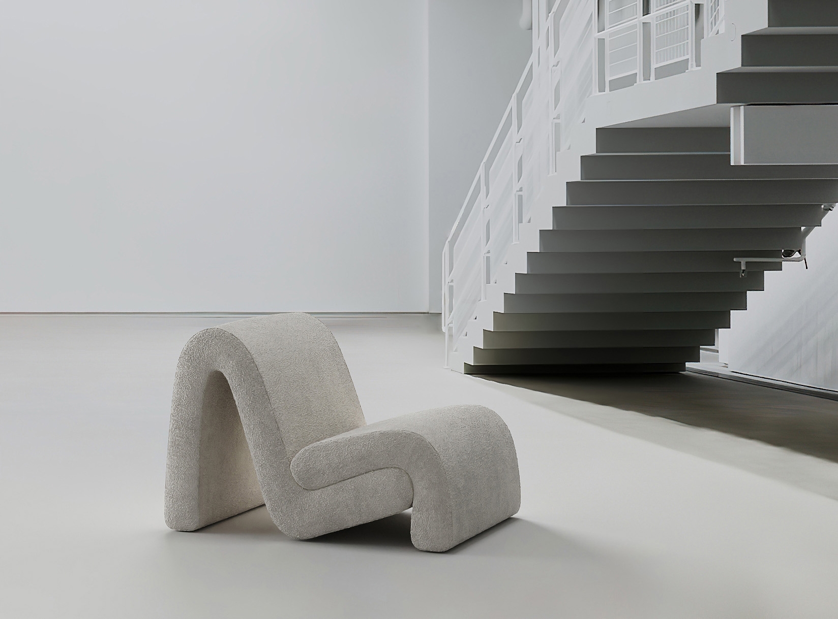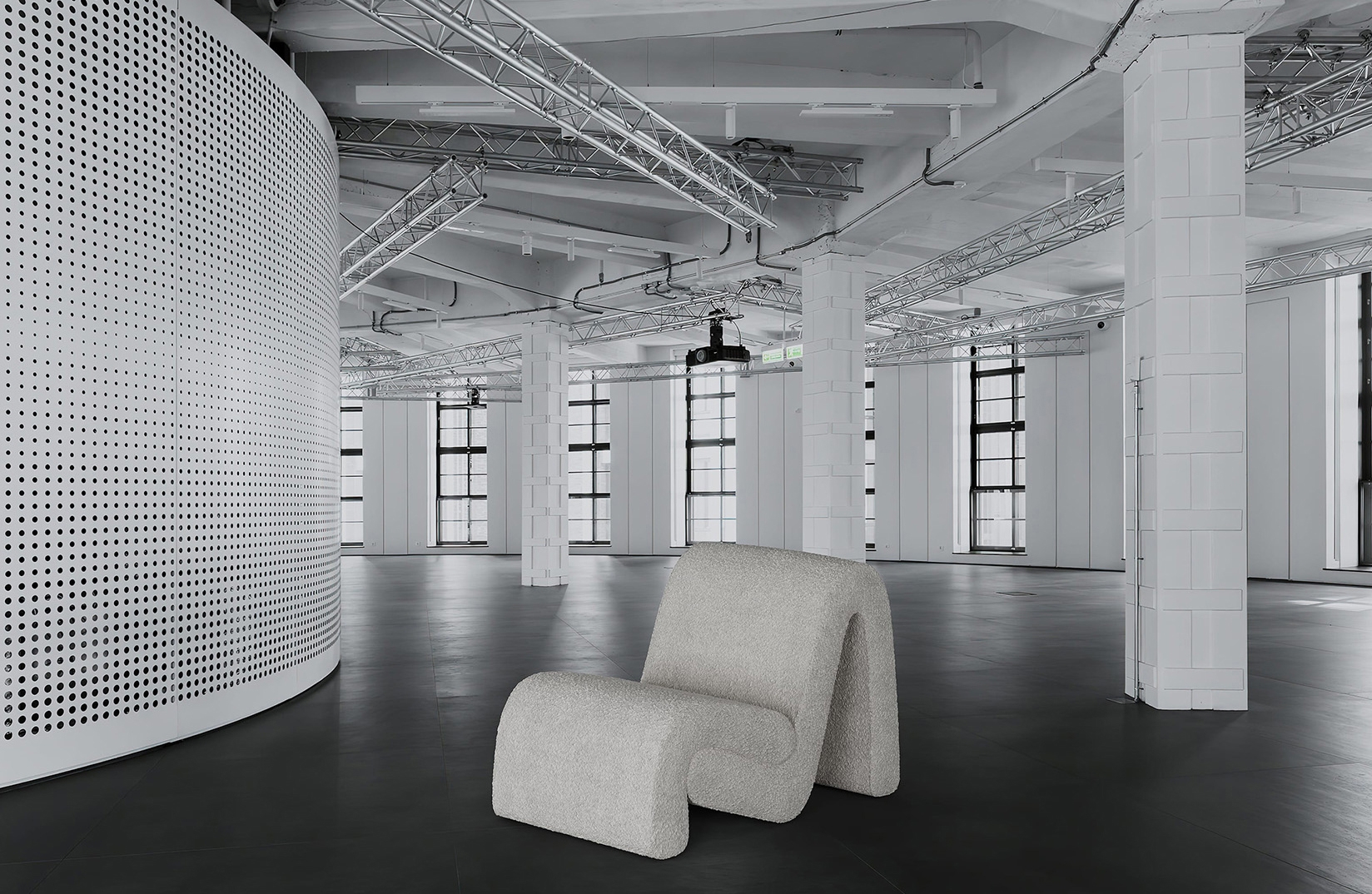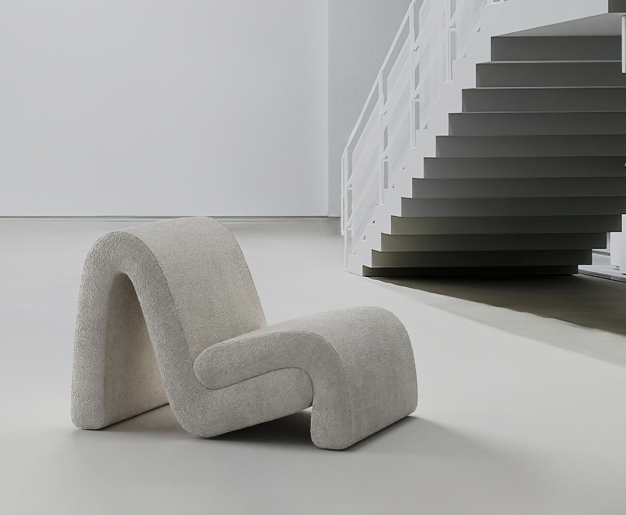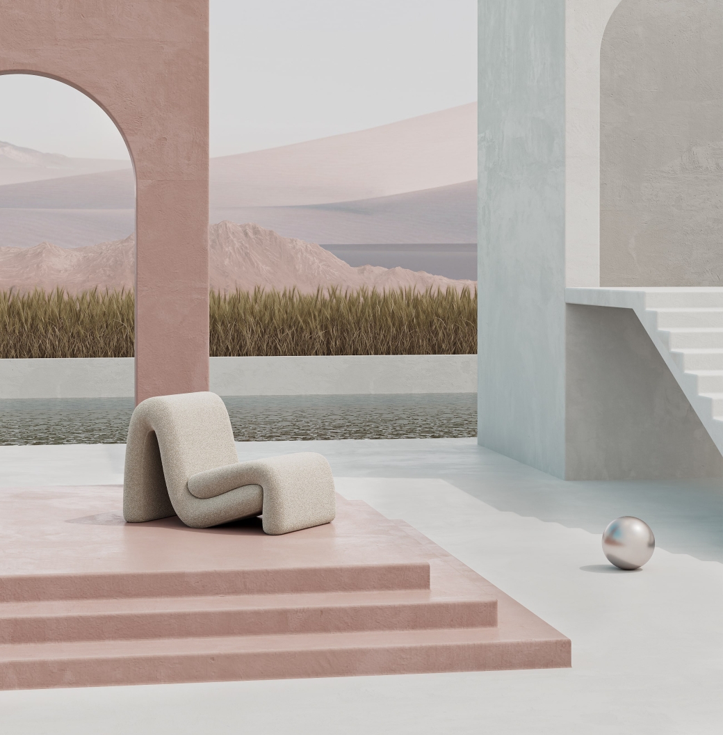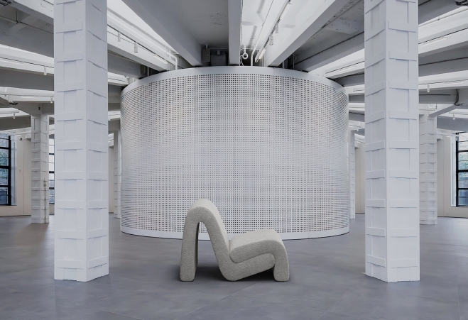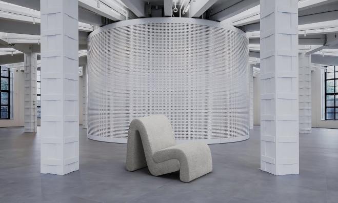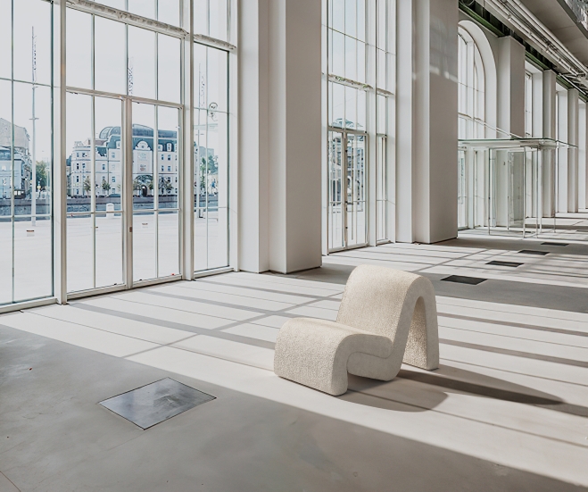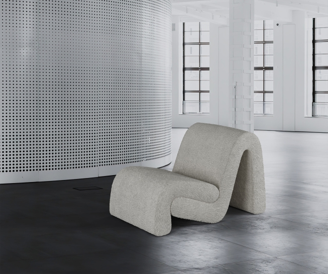 Curved armchair creates a relaxed atmosphere in the interior.