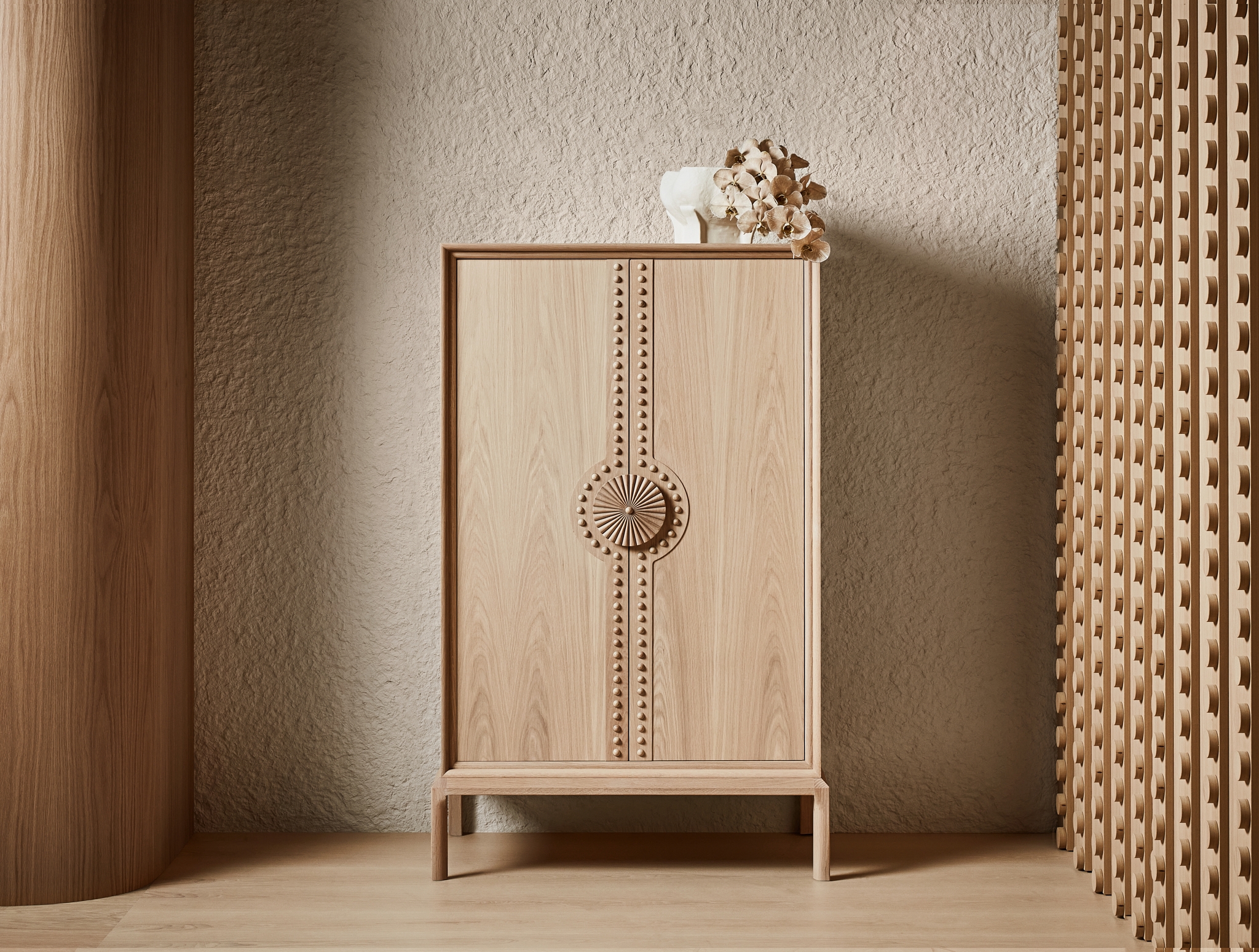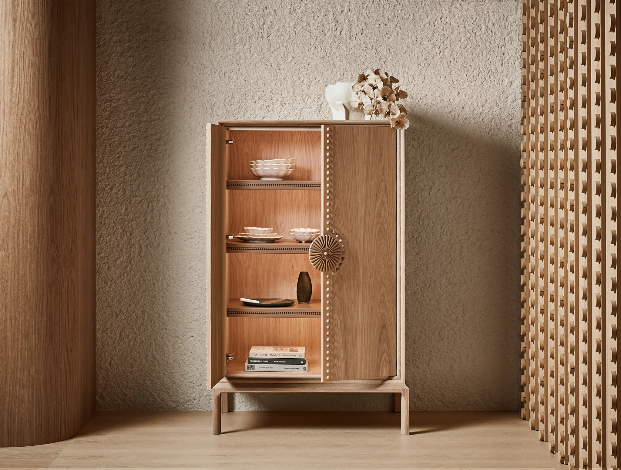 “The Marigold handle was inspired by my love of couture fashion, I took elements of a couture fashion dress with pleats, and ribbing. After scrolling over 1000 images, I saw a beautiful felt flower and I loved the detail, so I transferred parts of the design into the handle.” - Wilhelmina McCarroll, Design Director