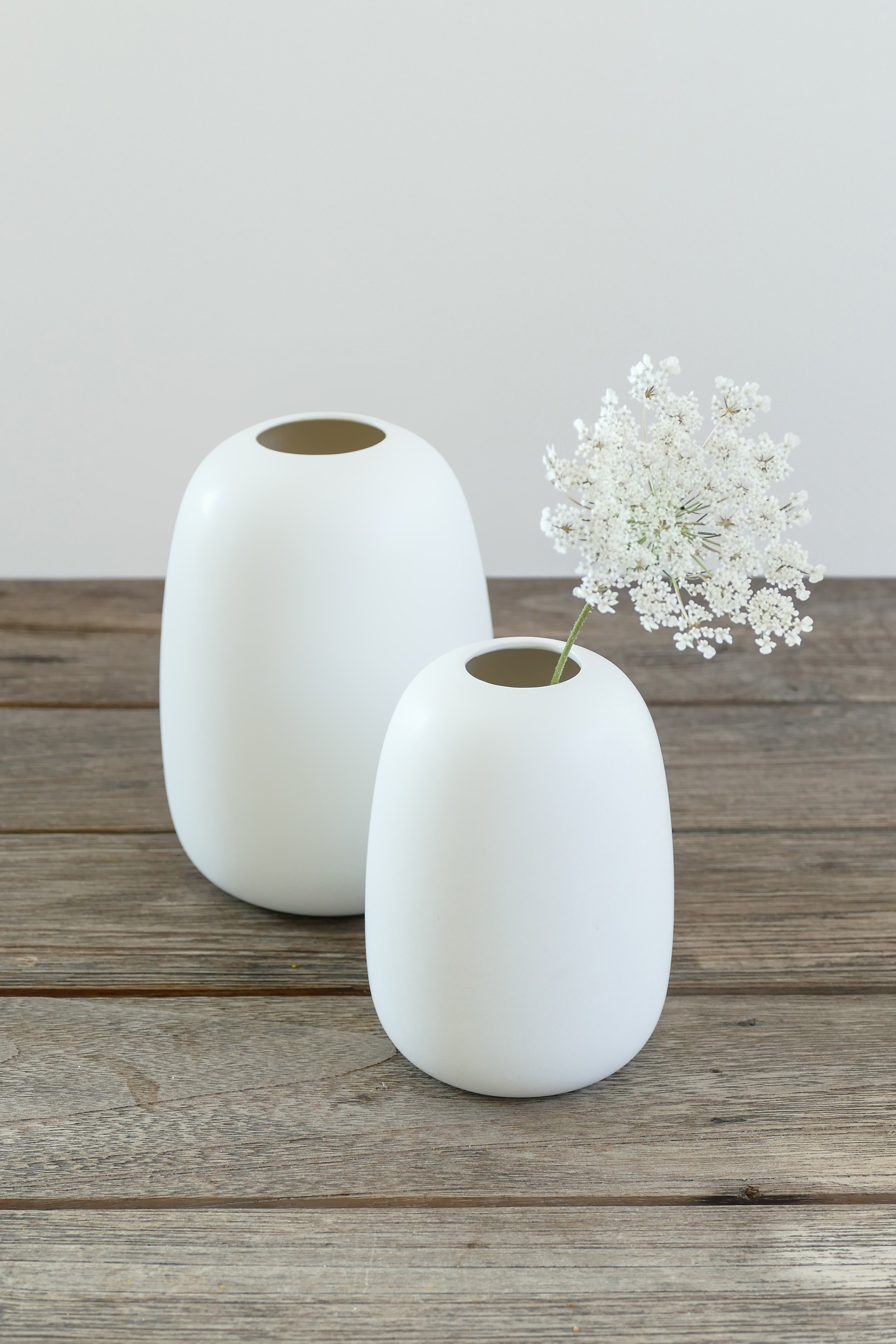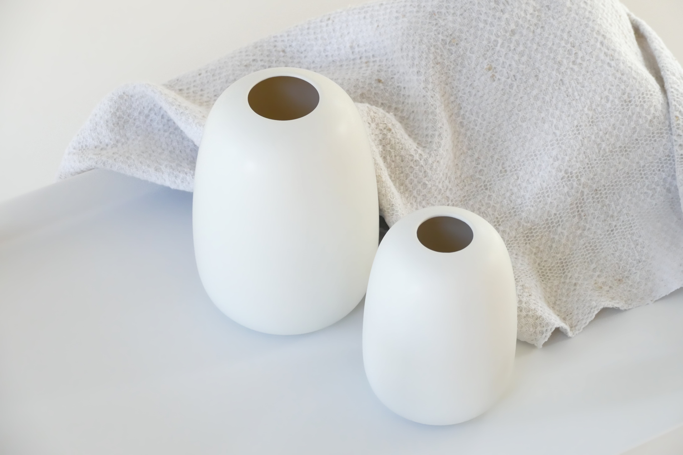 Made of high-quality porcelain, fired at 1280 degrees Celsius and glazed in matt white, the VASES vase by MAOMI is an eye-catcher in any living area. The delicate matt eggshell tone determines the colour of the high-quality product.