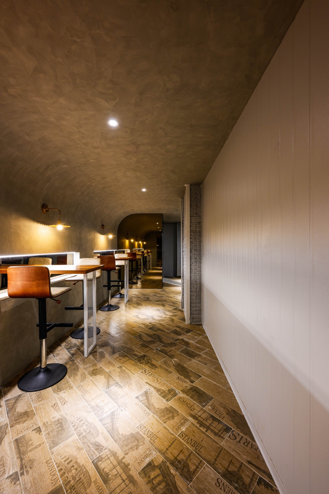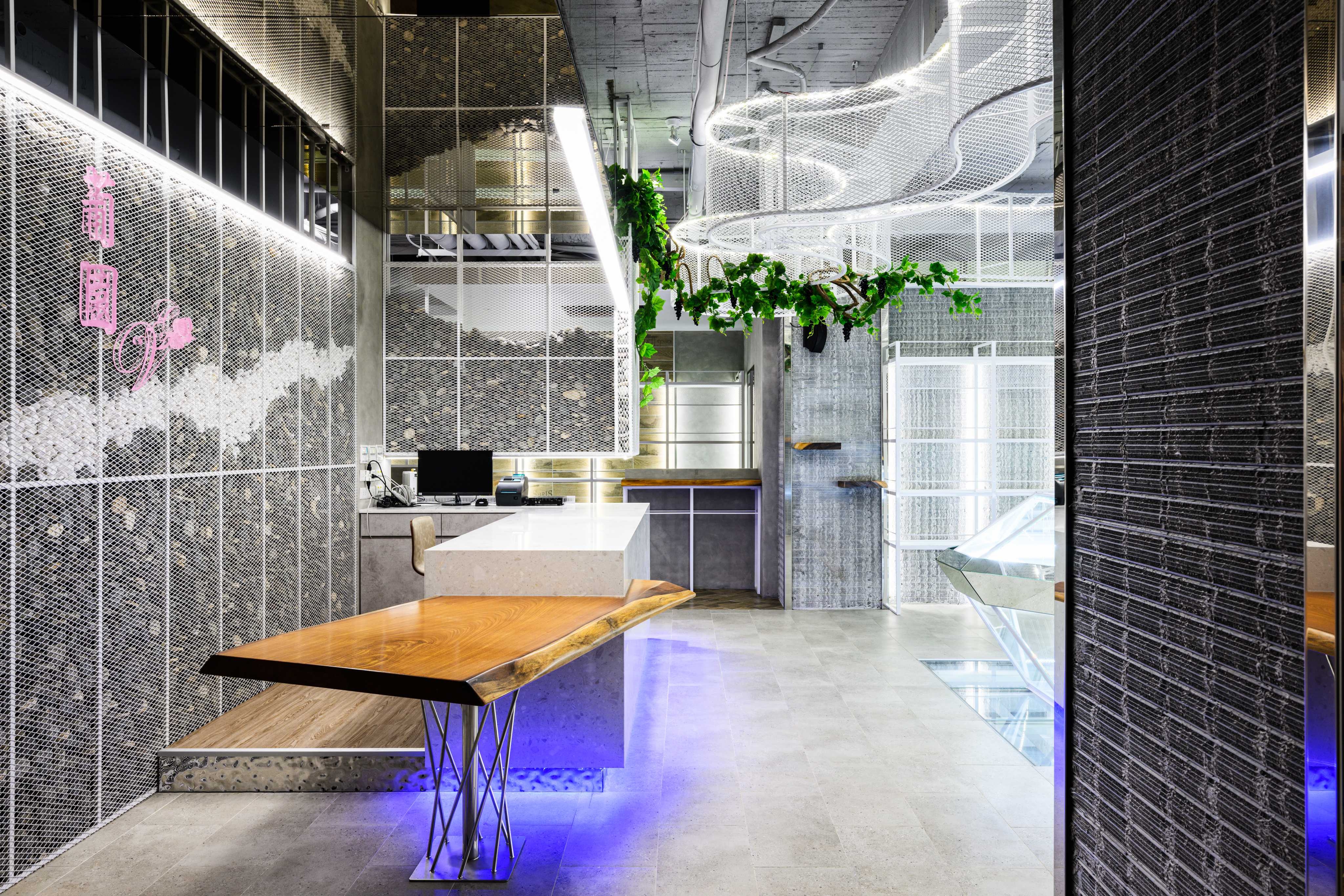 Revitalizing an aged edifice, this project highlights raw structural beauty through visible beams and columns. Inspired by water's transformative states—solid ice, liquid water, and gaseous steam—it interprets nature's lifecycle, merging modern visuals with sustainable methods. The design integrates grinding stone, bare wood, and soil sections with metallic and mirrored accents, creating a modern space that converses with nature. Indoor clouds formed by grapevines and metal mesh bestow a majestic air, completing this eco-conscious transformation.