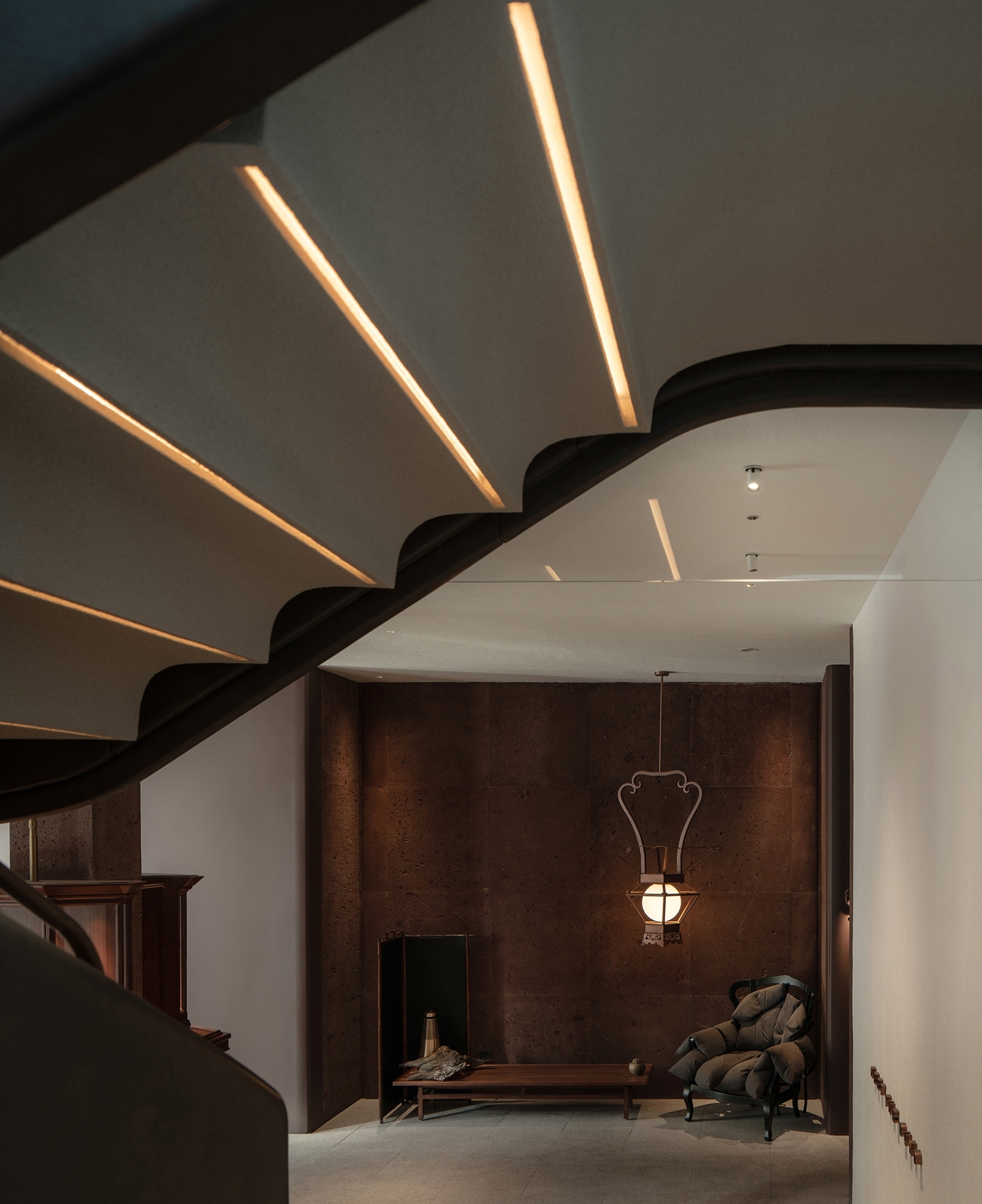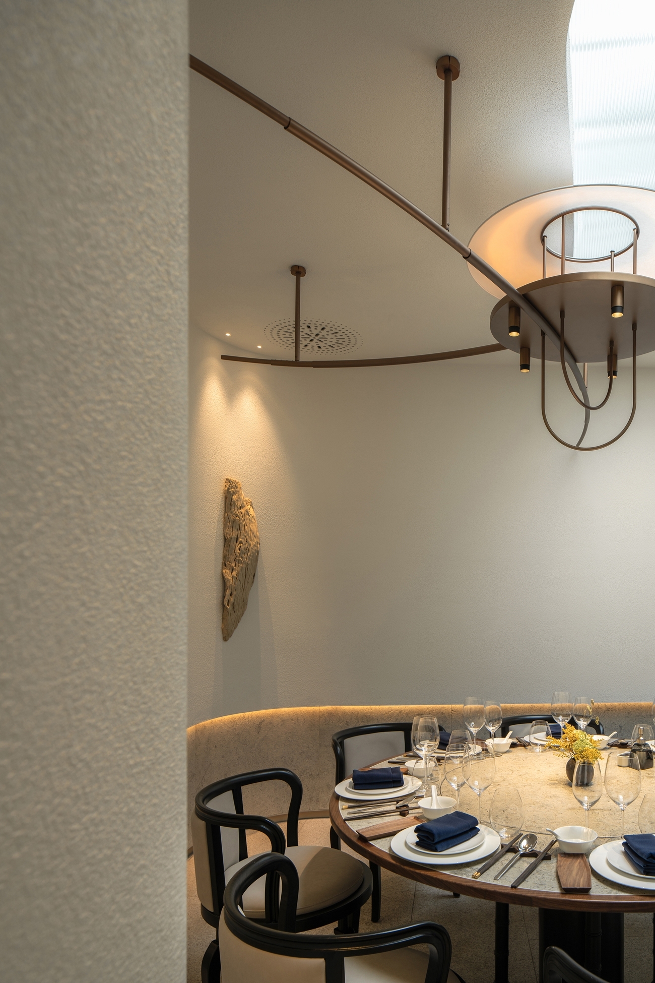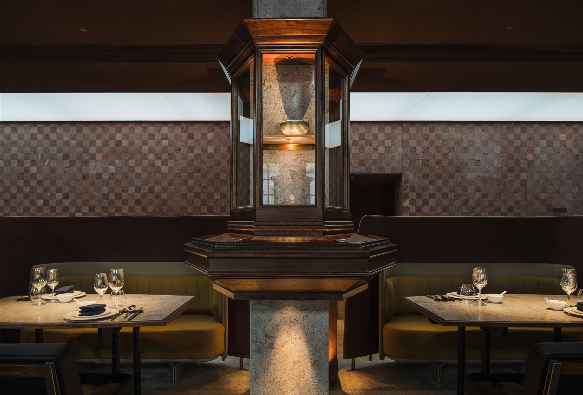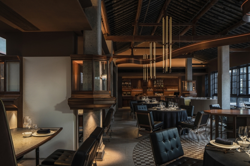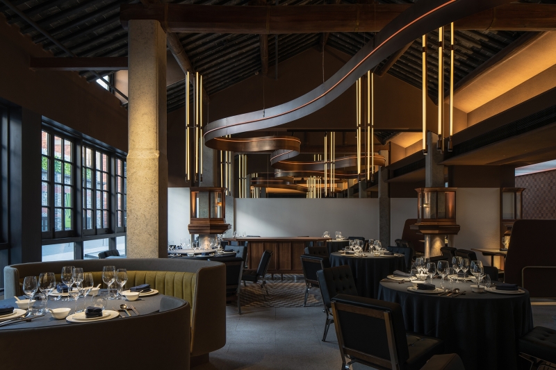 In Xintiandi's iconic building, the designer integrates Fujian culture and architecture while preserving the essence of Fujian cuisine. The design highlights stone column traces, club wine cabinets, and a mix of antique and contemporary furniture, enhancing the space's elegance. By creating a symbolic language, Fujian culture harmoniously blends with Shanghai's local architecture, resulting in a distinctive interior design.