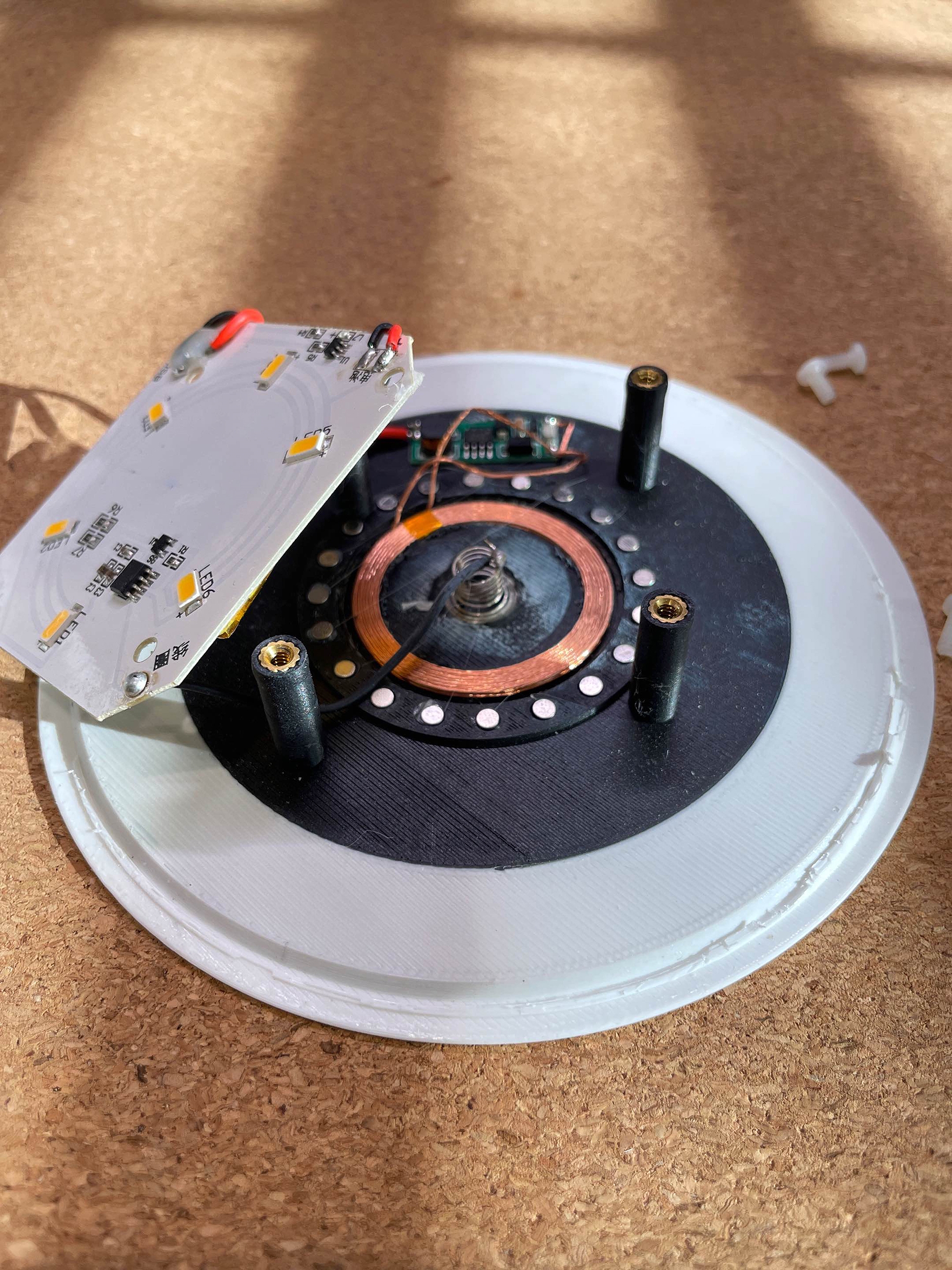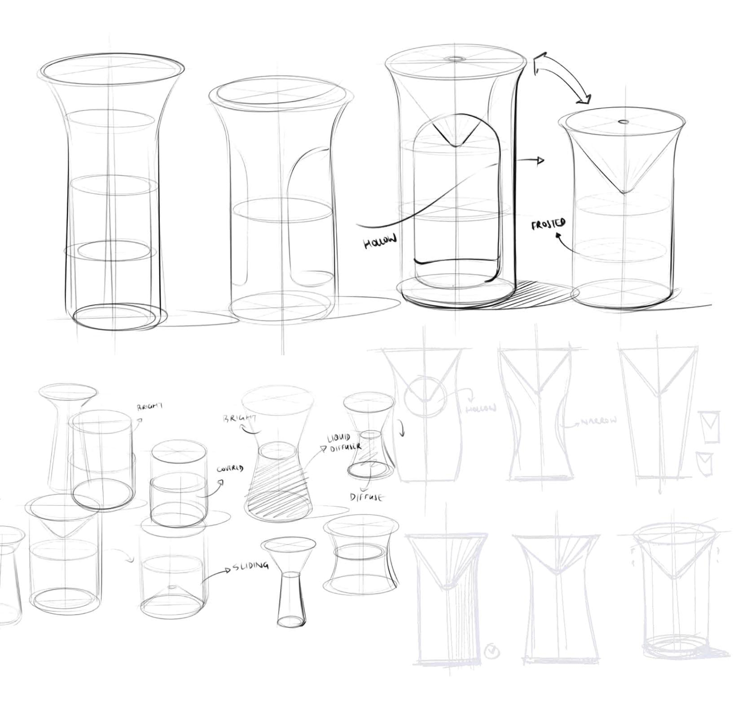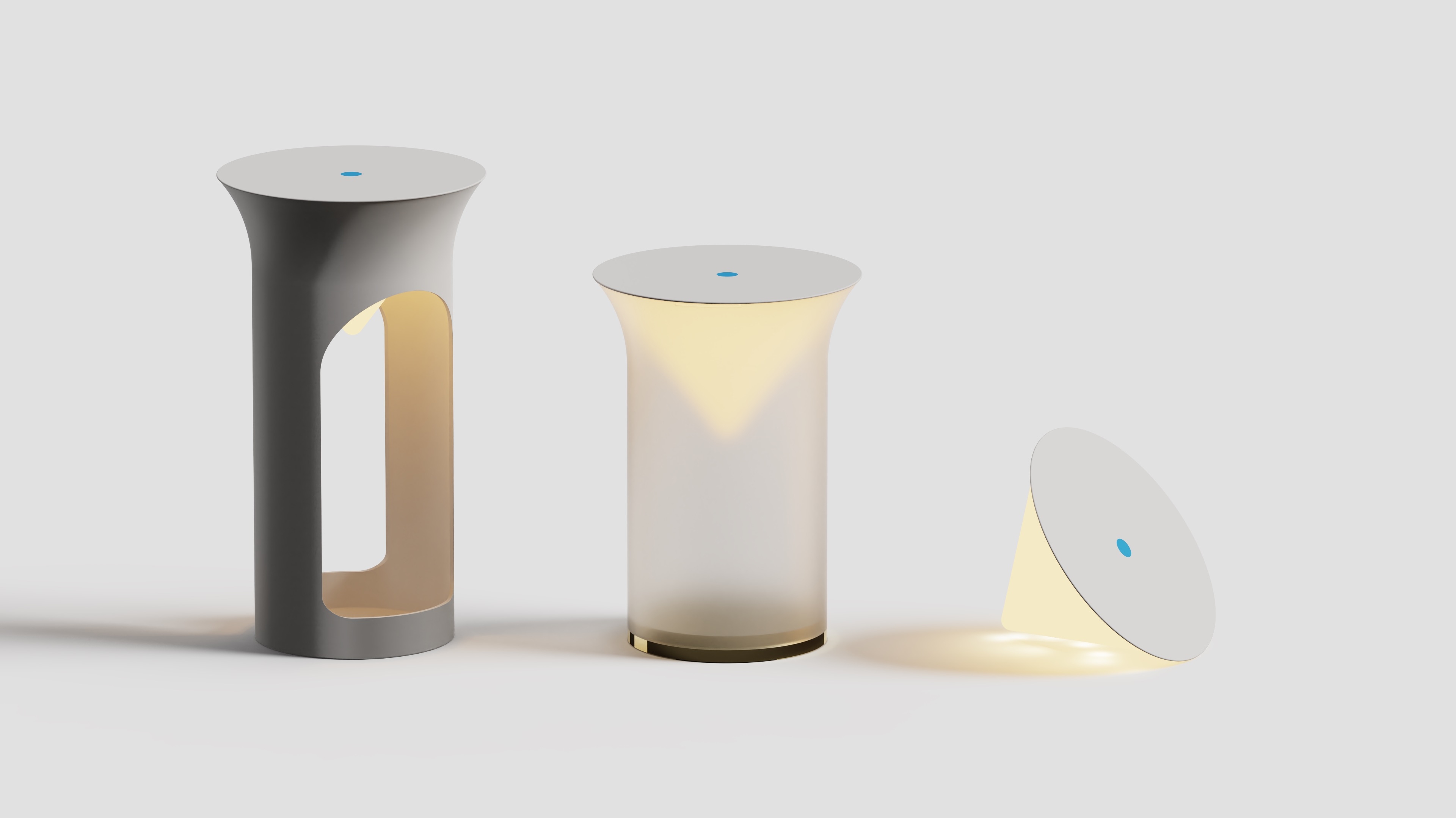 They share the exact same lighting unit. The design challenges are incorporating LEDs into a small space and achieving convenient recharging purposes. I used COB LEDs and a spring touch switch, being able to control the lamp by simply touching the outer shell. I also put magnets and an induction charging coil in it so that Lume is rechargeable with magnetic induction chargers.
