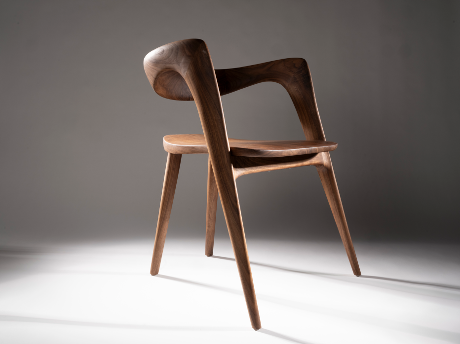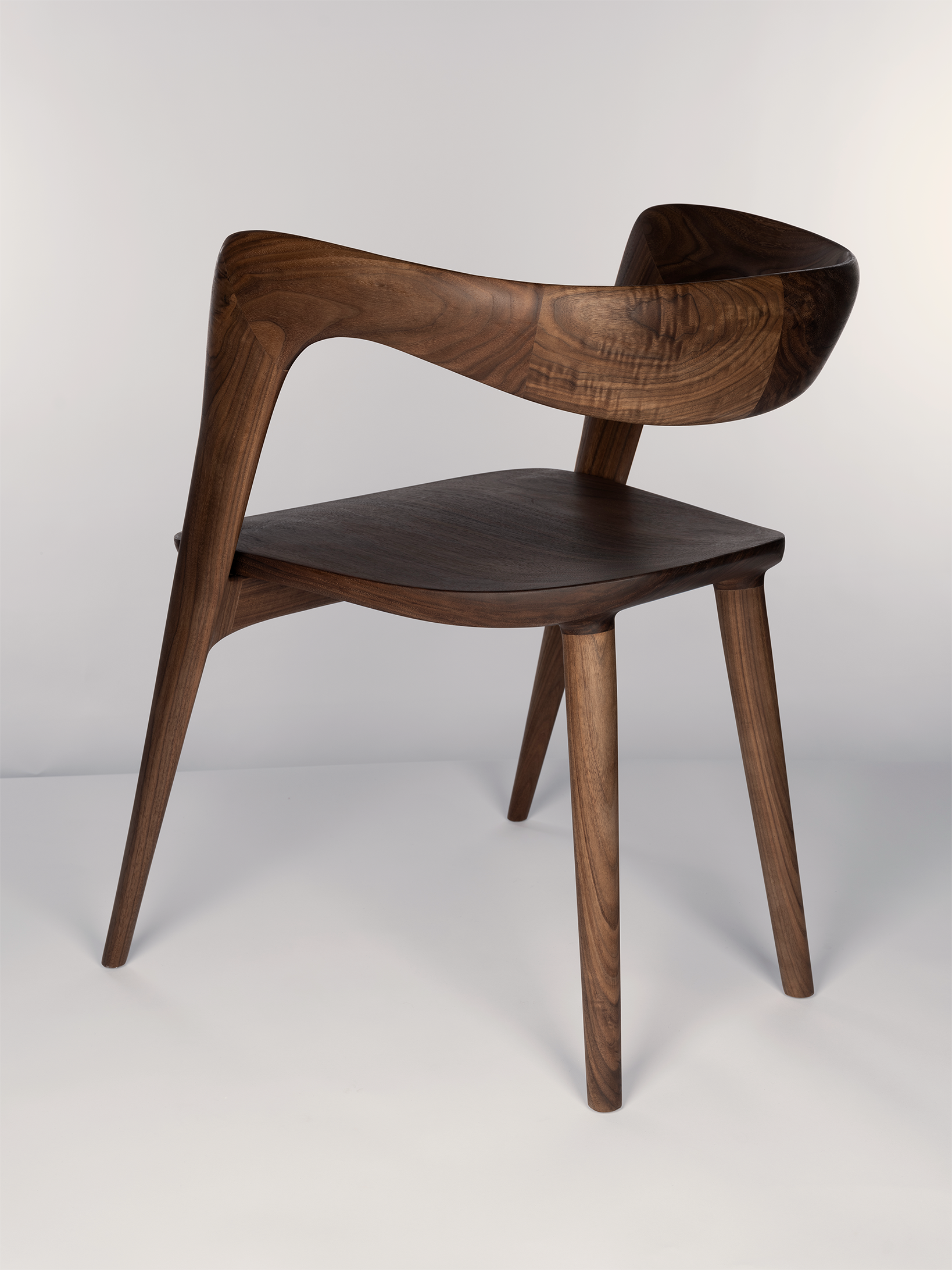Koi is a side chair inspired by the graceful movement of a Koi fish. Koi is an elegant and sophisticated chair that captures the sense of water fluidity created by fish while swimming. Infused with Asian beauty, the chair features curves that flow seamlessly from every angle. Made with walnut.
