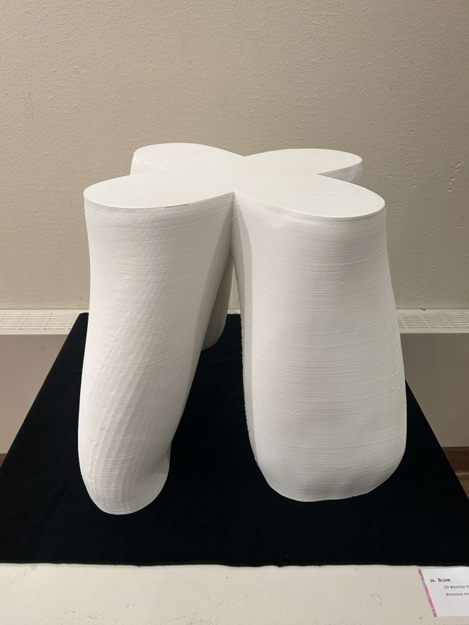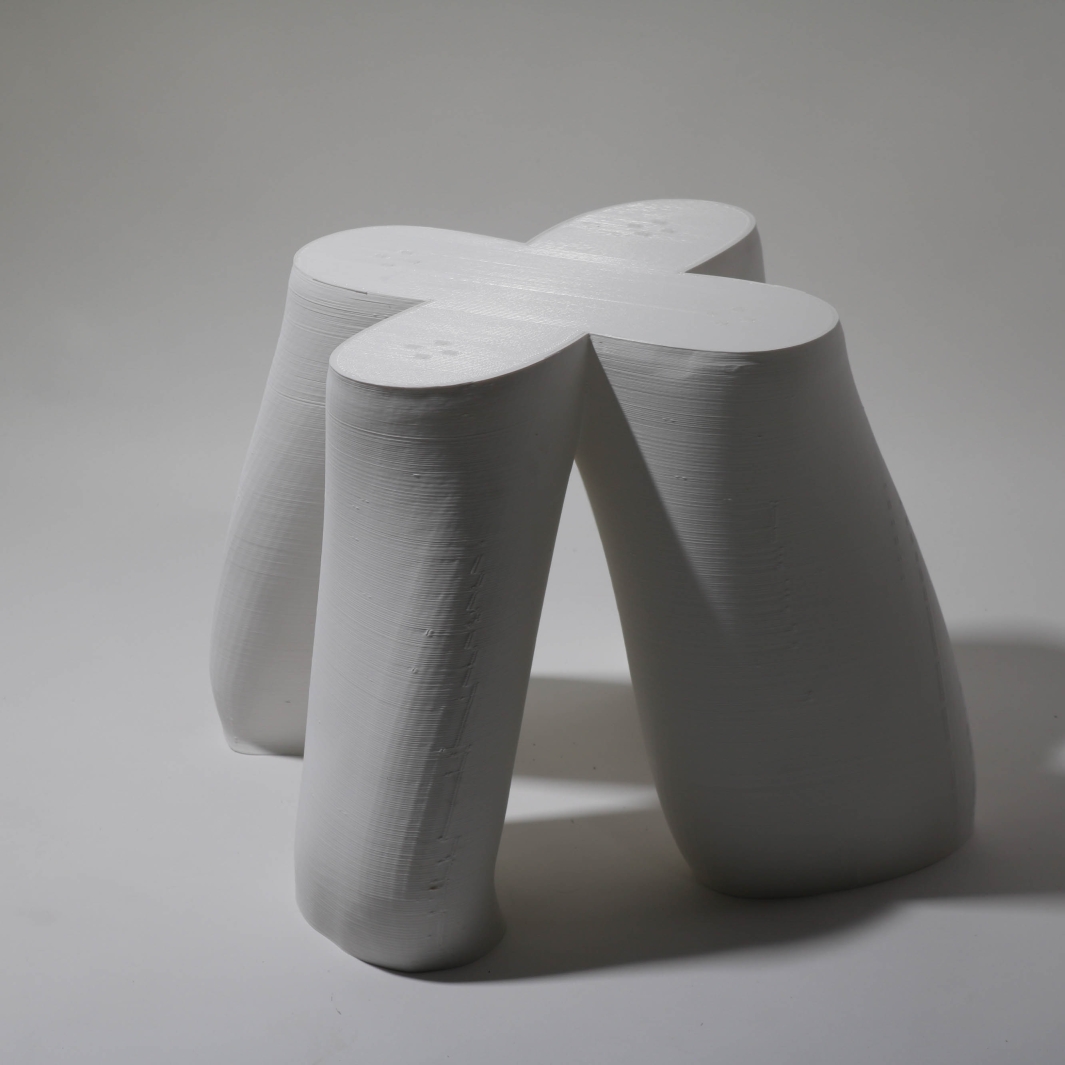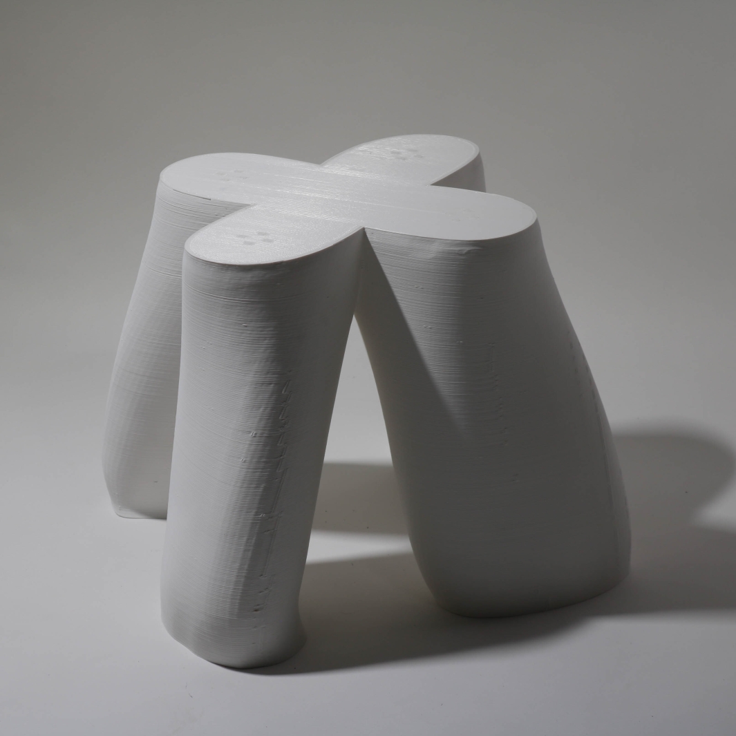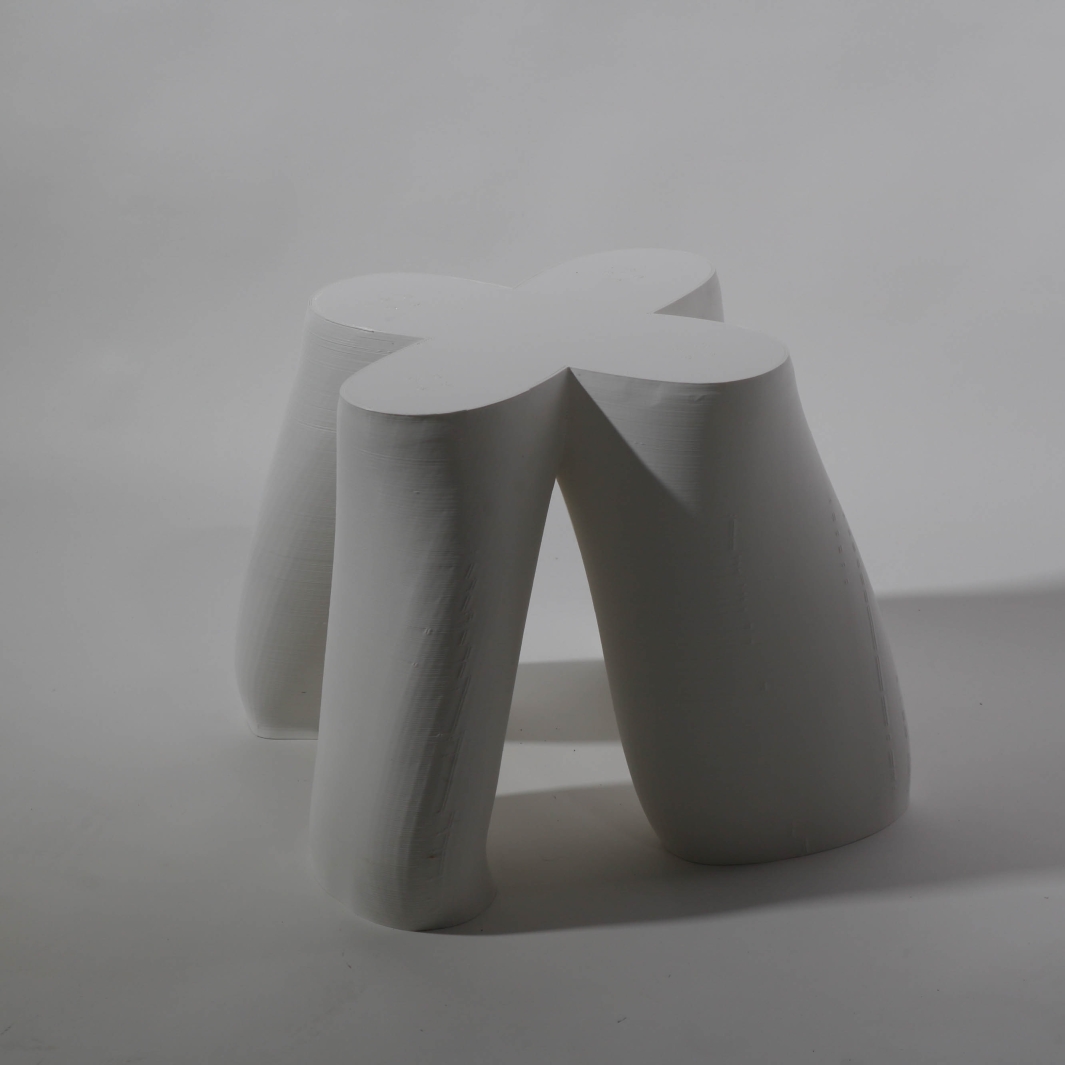 Blume is a three-D printed stool standing at 14 inches tall. This stool whose form is inherently organic with its seat being the form of a flower. Blume was inspired by flowers in cartoons that I would watch as a kid.