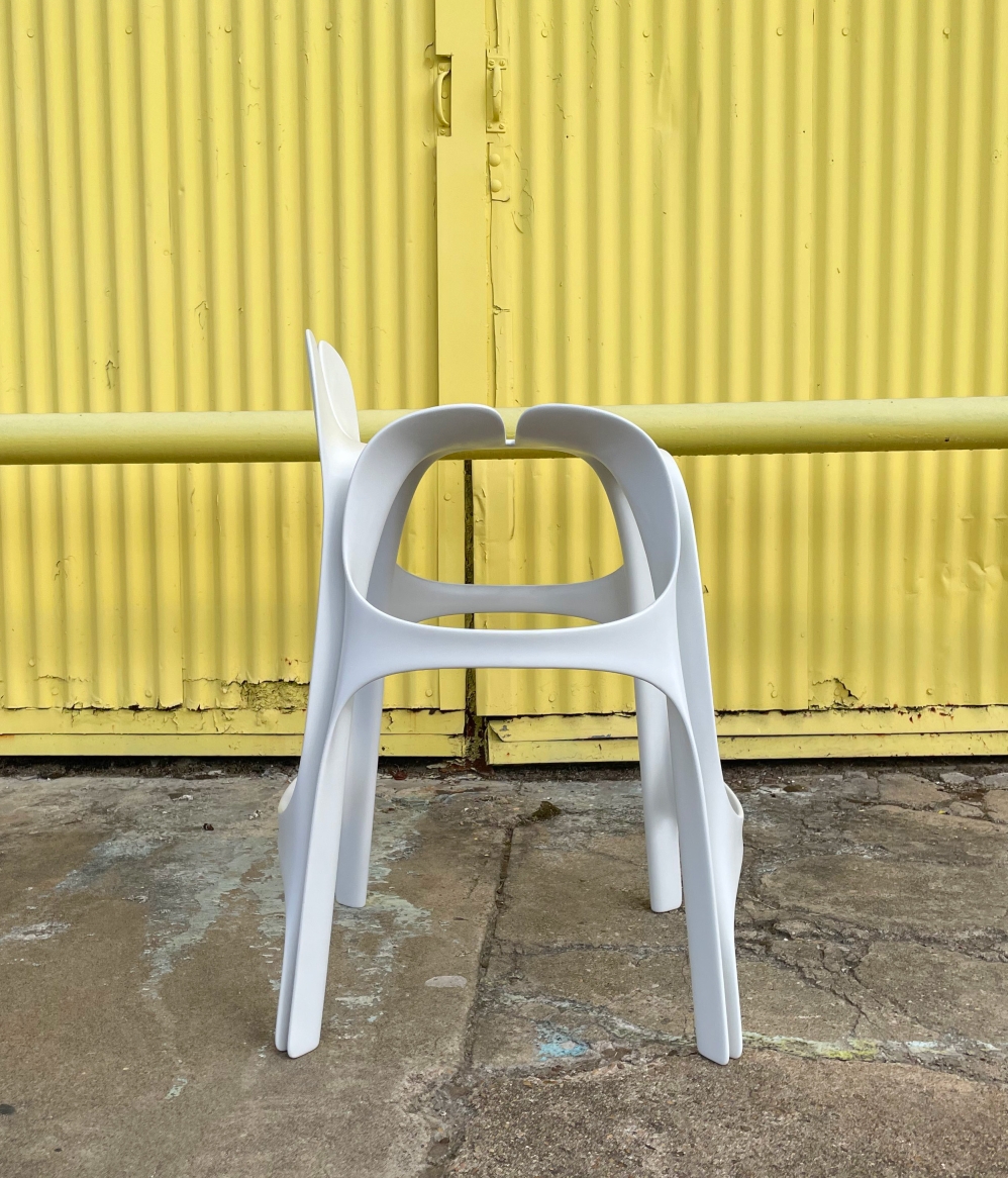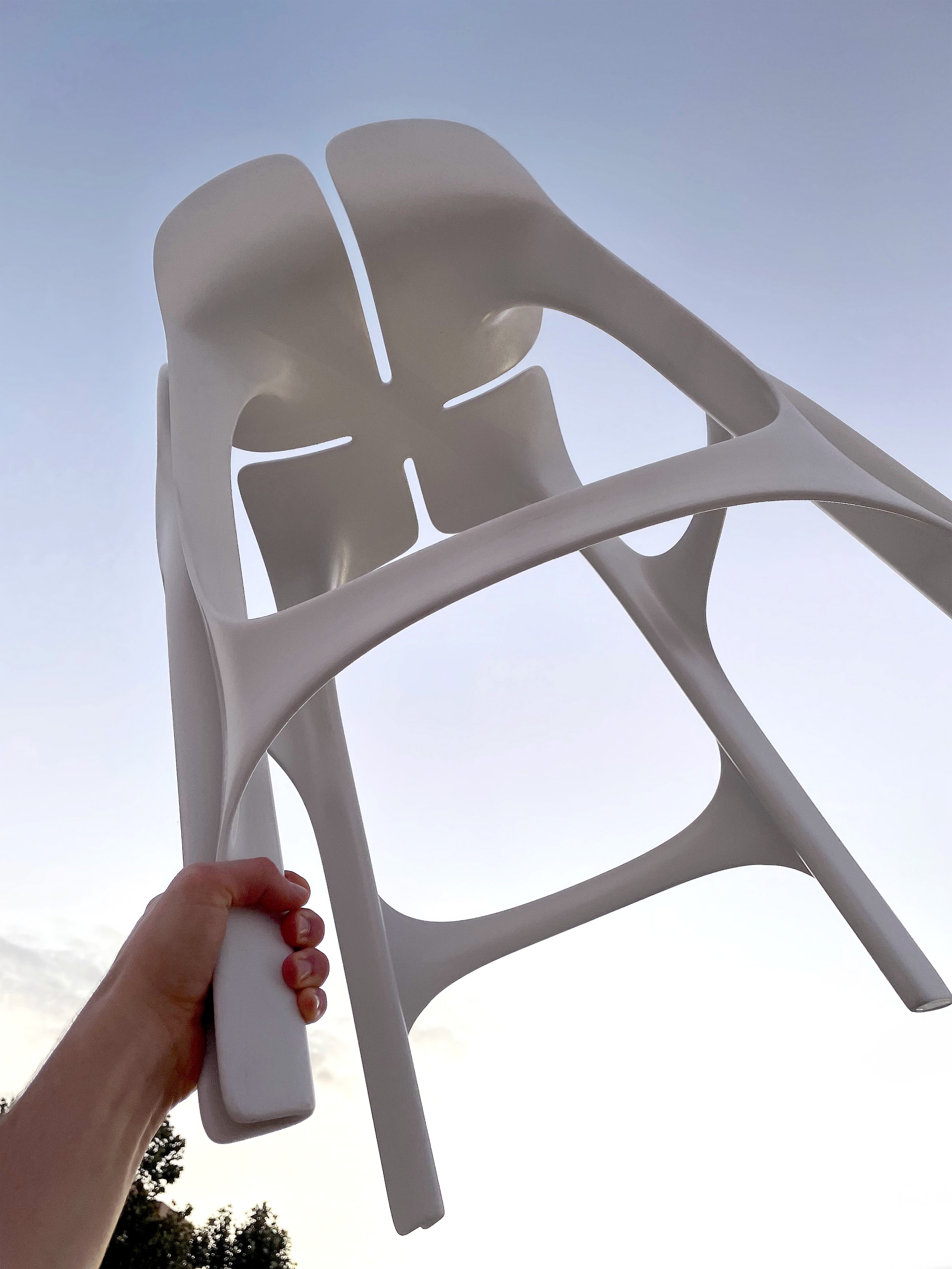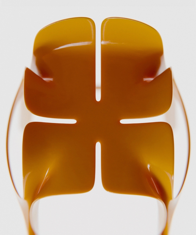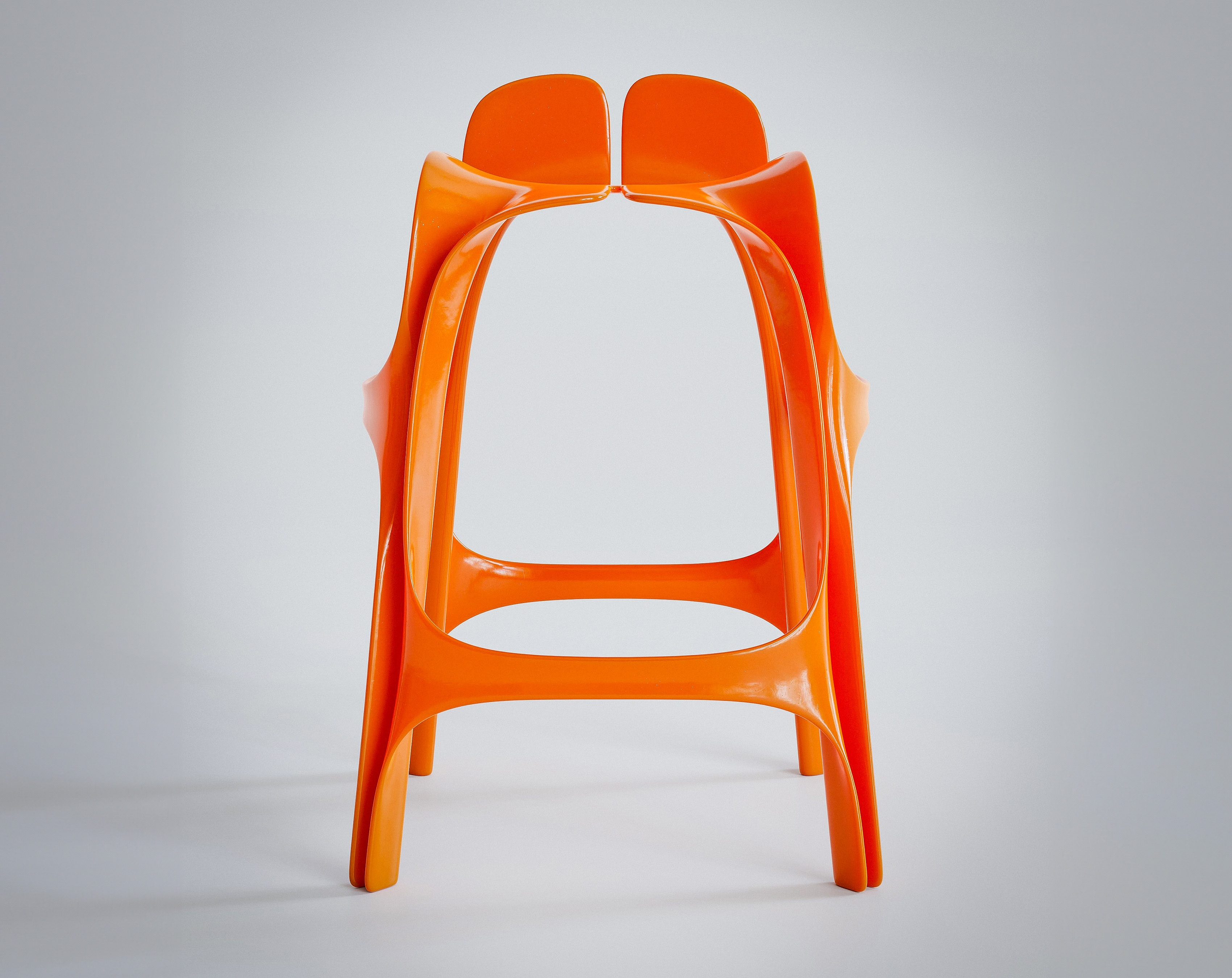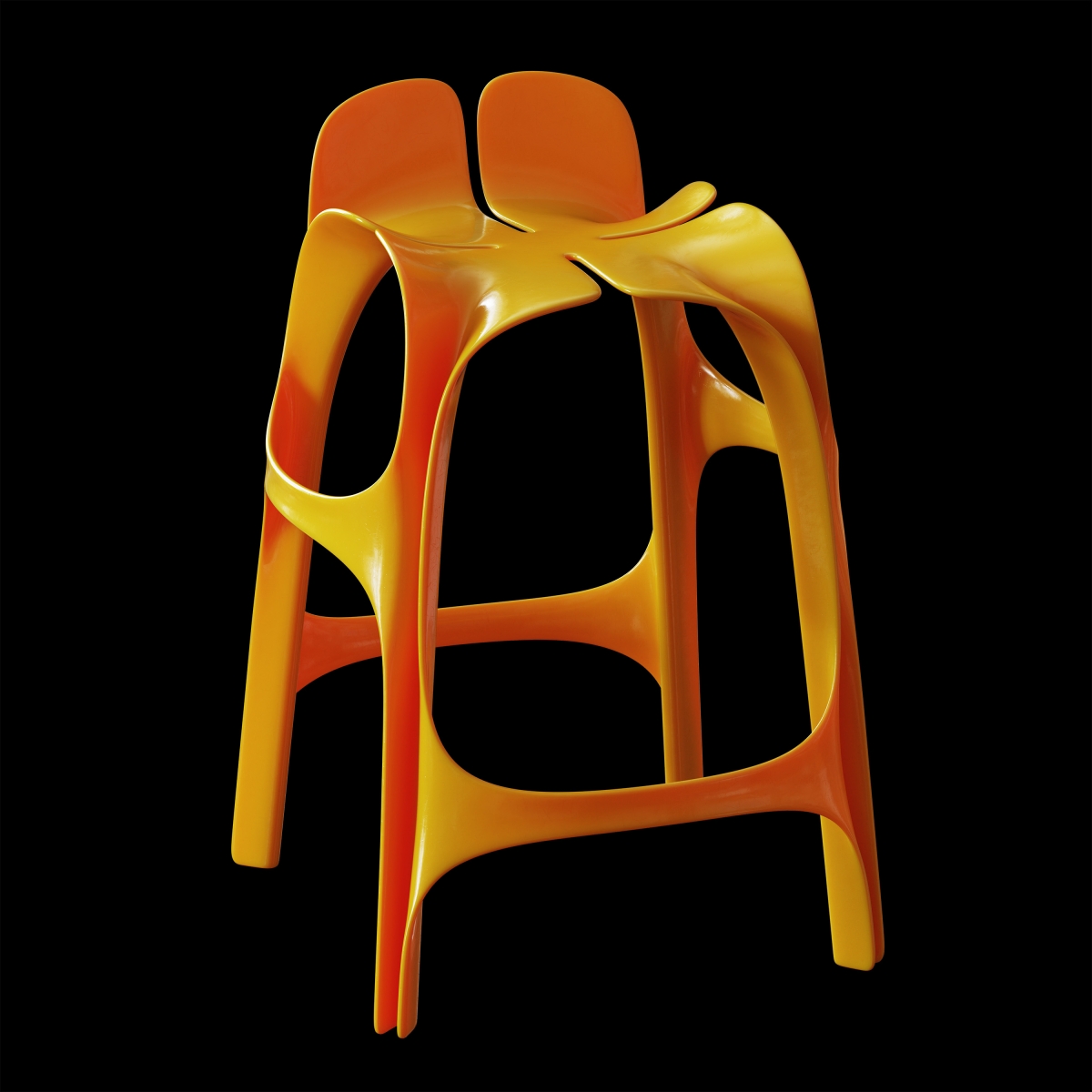The Le Fleur barstool originates from the lines and curves of a simple, yet elegant flower. The single surface bends and morphs, with each leg like a stem converging at the top of the stool to create a subtle, petal-formed seat, while maintaining important manufacturing constraints such as stack-ability and uniform wall thickness.