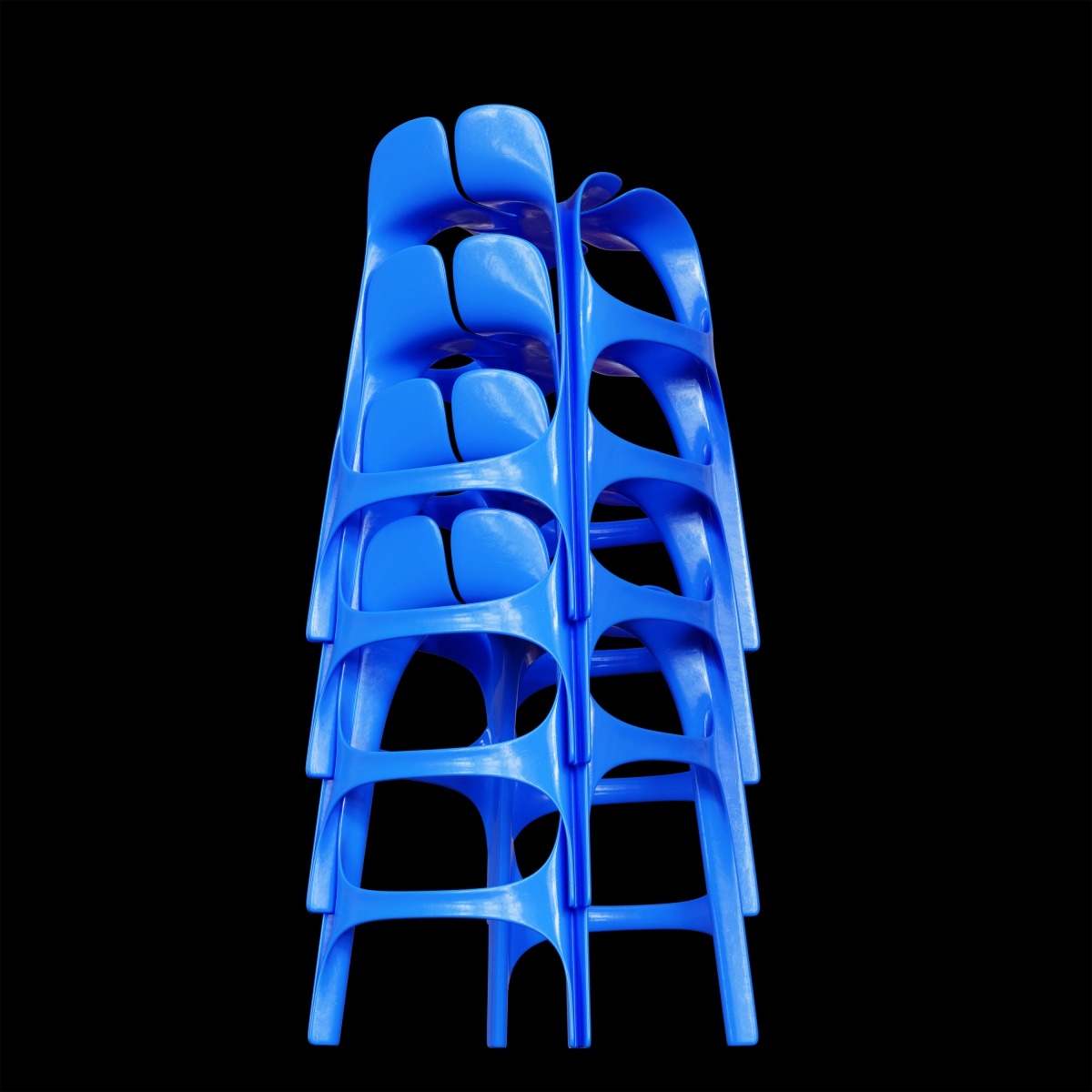 The Monobloc style and single mold construction allow for mass production, as well as unlimited custom color variations. Strength and stability are created due to the compound surfaces and interconnecting plastic structure.