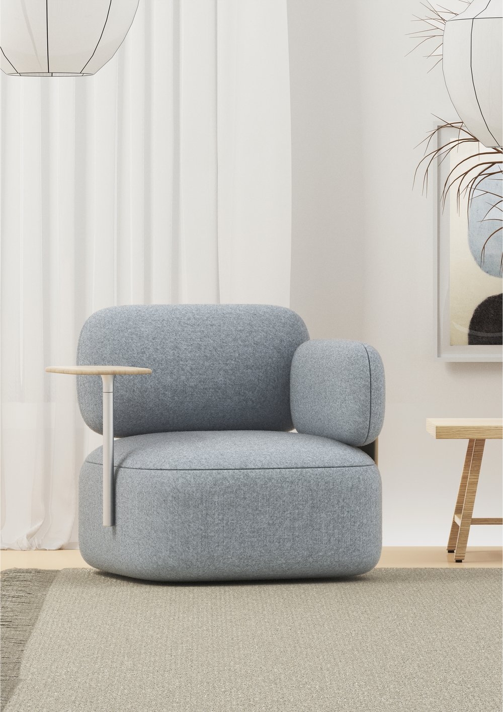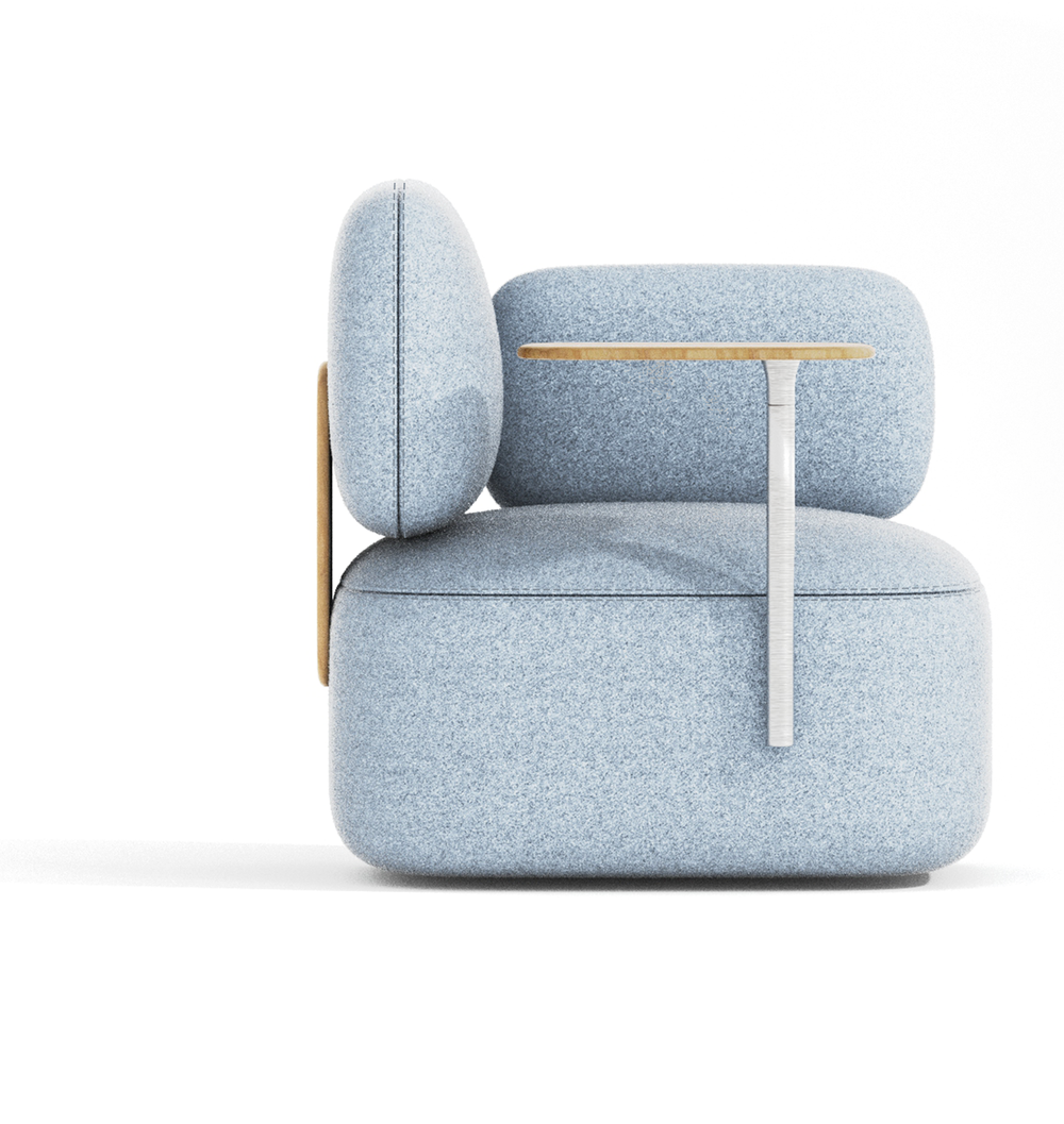 In a post -pandemic world, we are surrounded with back to office and work from home. As we create the new hybrid normal, I wanted to design furniture that adapts to the workspace or home. Otto can give more functionality to your home or bring softness to the workplace. Otto is Designed to respond to life that blends work lives and home. Well-refined cushions and oak wood make your space soften. The table can be pivoted by the user’s needs. It can be also used as armrest.