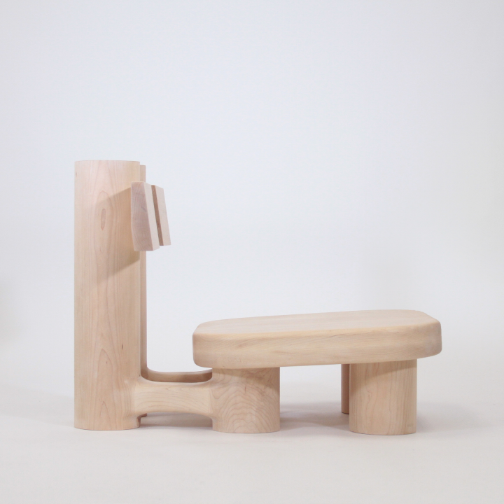 Home Chair is an exploration of harmonizing weight and warmth within one piece of furniture. The making of the chair is a combination of CNC machining and hand shaping. My inspiration for the design stems from Chinese architectural practices and the chair is a representation of my interpretation, expressed through minimalist design language. When designing the chair, I used hard maple to instill a sense of permanence and stability. The form draws inspiration from the symmetry, solid timber beams, columns, and the post-and-lintel construction system. The seating area is lower at a ten inch seat height and offers a comparatively larger seating area (24 x 22 inches). The chair’s surface encourages people to engage in dynamic sitting experiences.