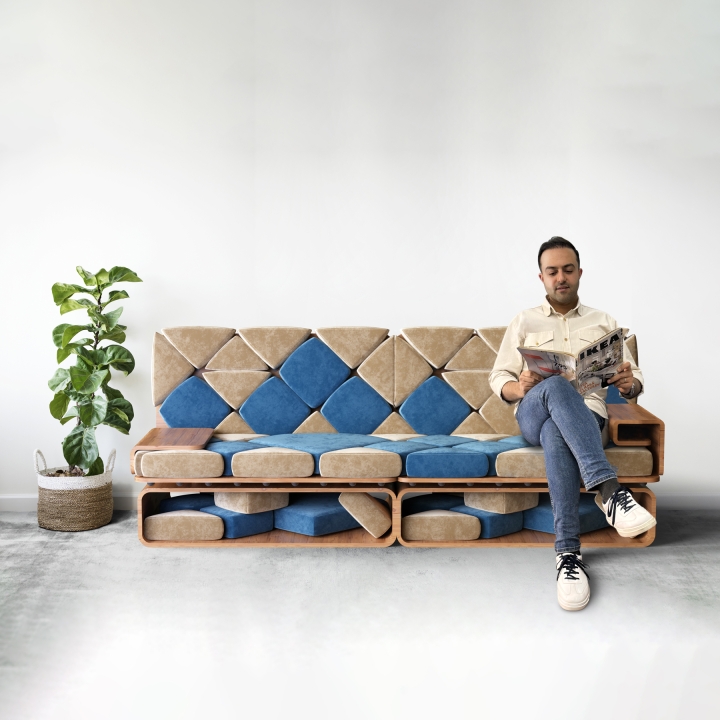 Morfius is built around a single modular structure and three distinct modular pillows that come in various colors. The concept aims to redefine the modular approach, emphasizing both functionality and aesthetics. The structure can be transformed into different configurations, from a single-person seat to an L-shaped sofa, standard sofa, bed, long linear sofa, and more. In terms of aesthetics, you have the flexibility to mix and match triangular, square, and diamond-shaped pillows. This versatility makes Morfius adaptable to various settings, including homes, offices, children's rooms, etc.