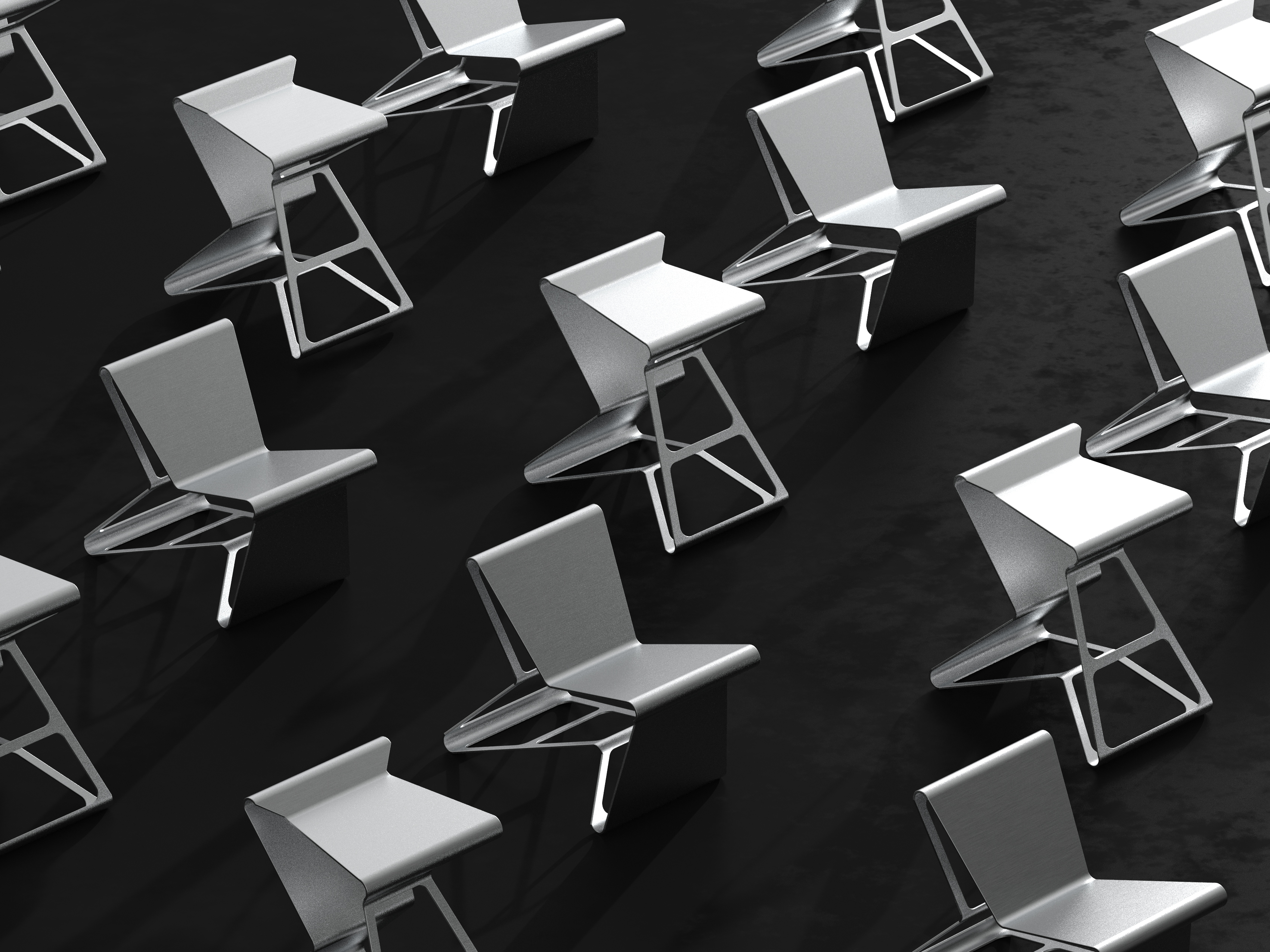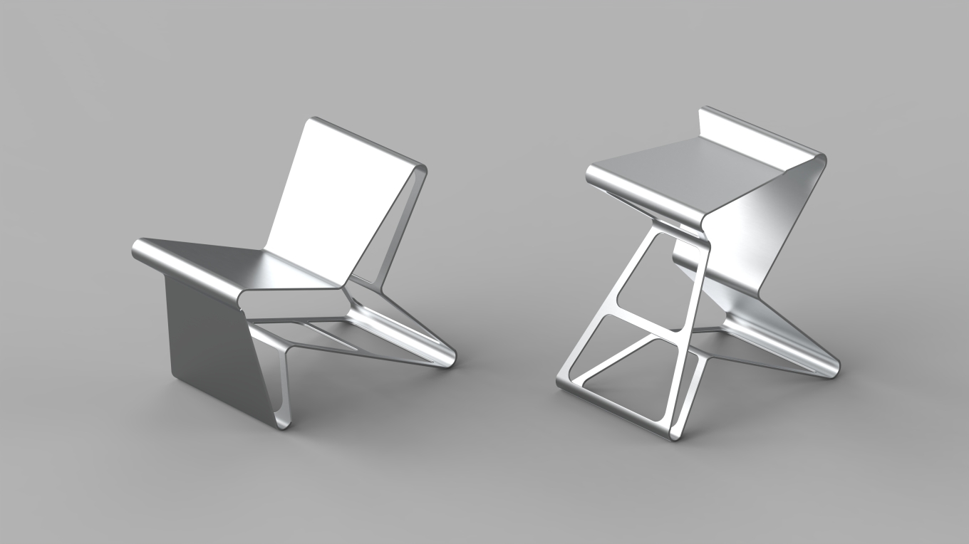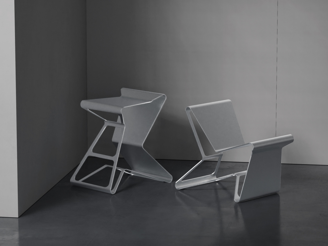 Versa, a nimble aluminum chair, effortlessly shifts between lounge and work stool roles, providing flexibility and enhanced productivity across various settings like creative studios, workshops, and home environments. Available in a raw brushed aluminum or enamel paint finish, Versa is suitable for both indoor and outdoor use, adding a vibrant touch of color to any space.