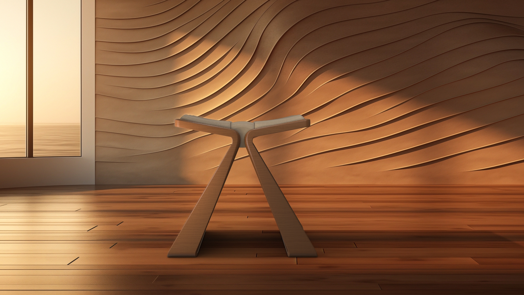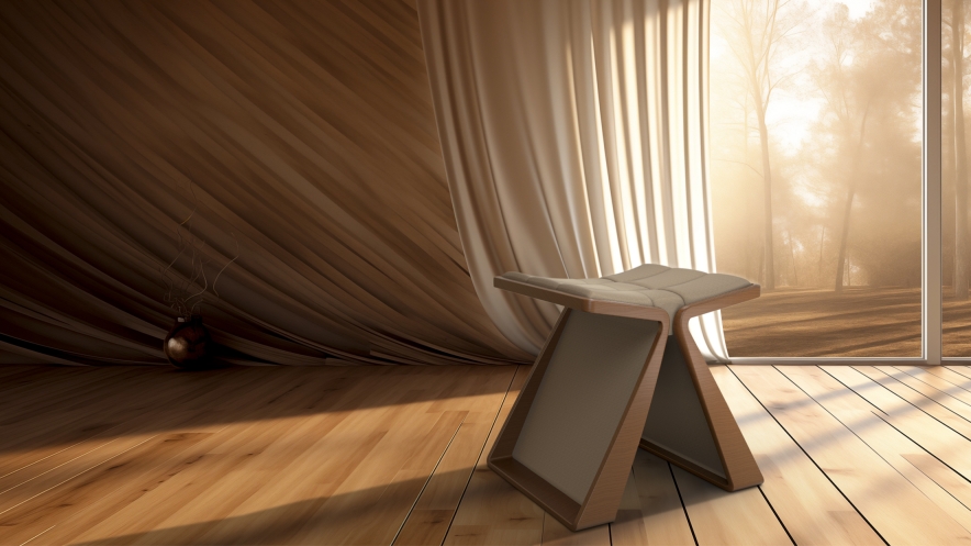 This stool's design is a harmonious blend of minimalist principles, soft lines, and comfortable cushioning. The soft, flowing lines offer a balance of elegance and serenity, making it both visually pleasing and comfortable to sit on.