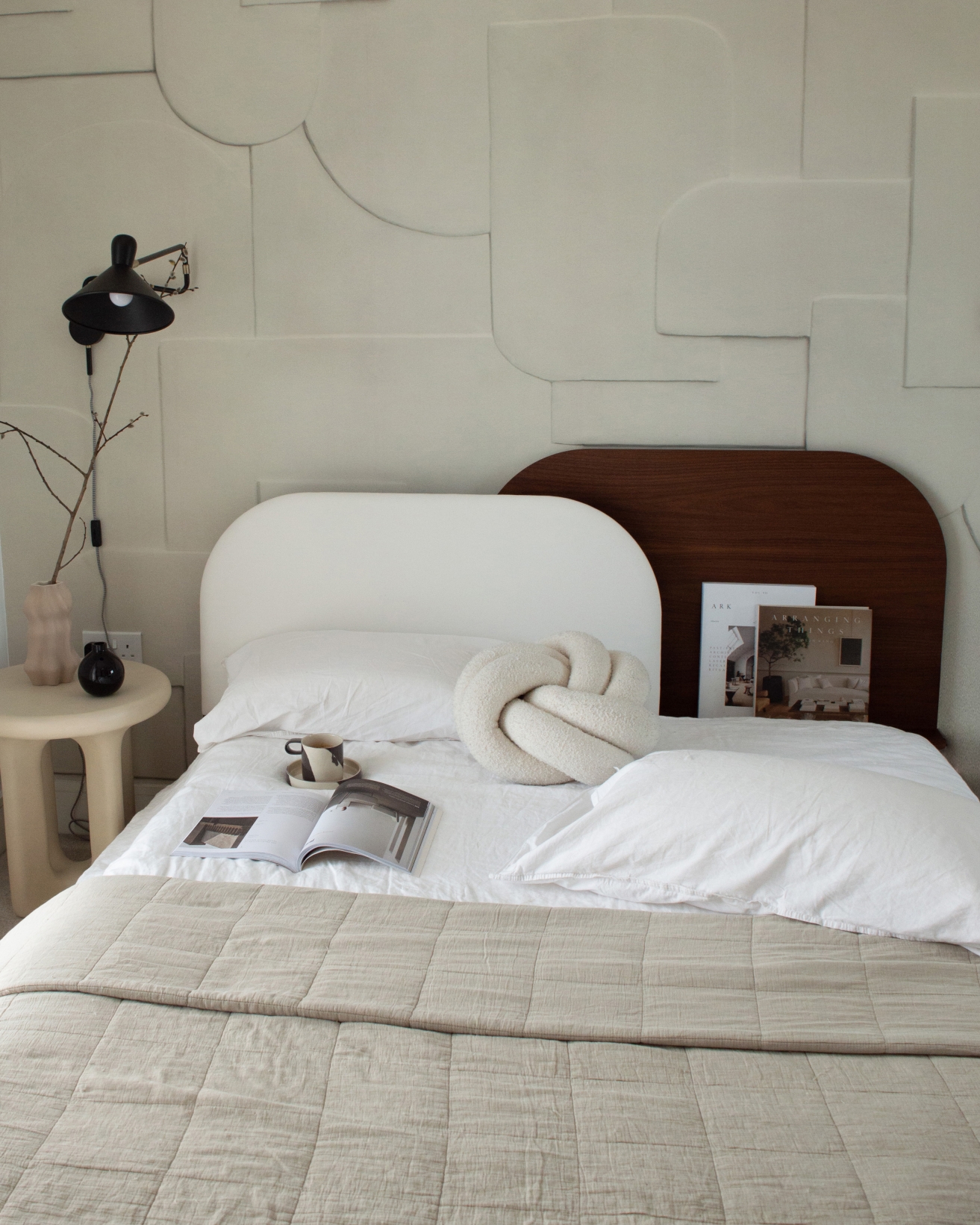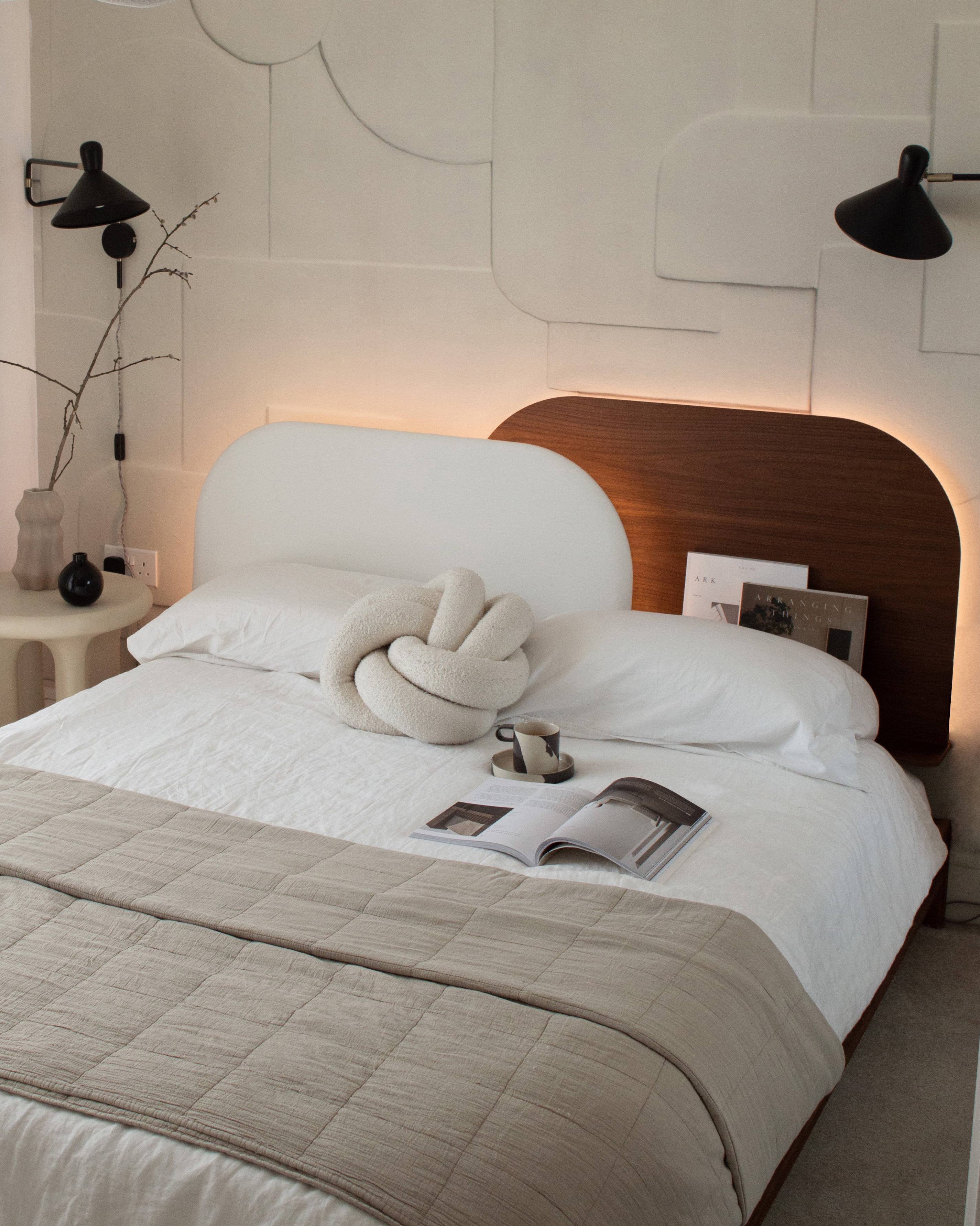 A unique headboard with a sculptural touch that brings personality and elegance to your home.