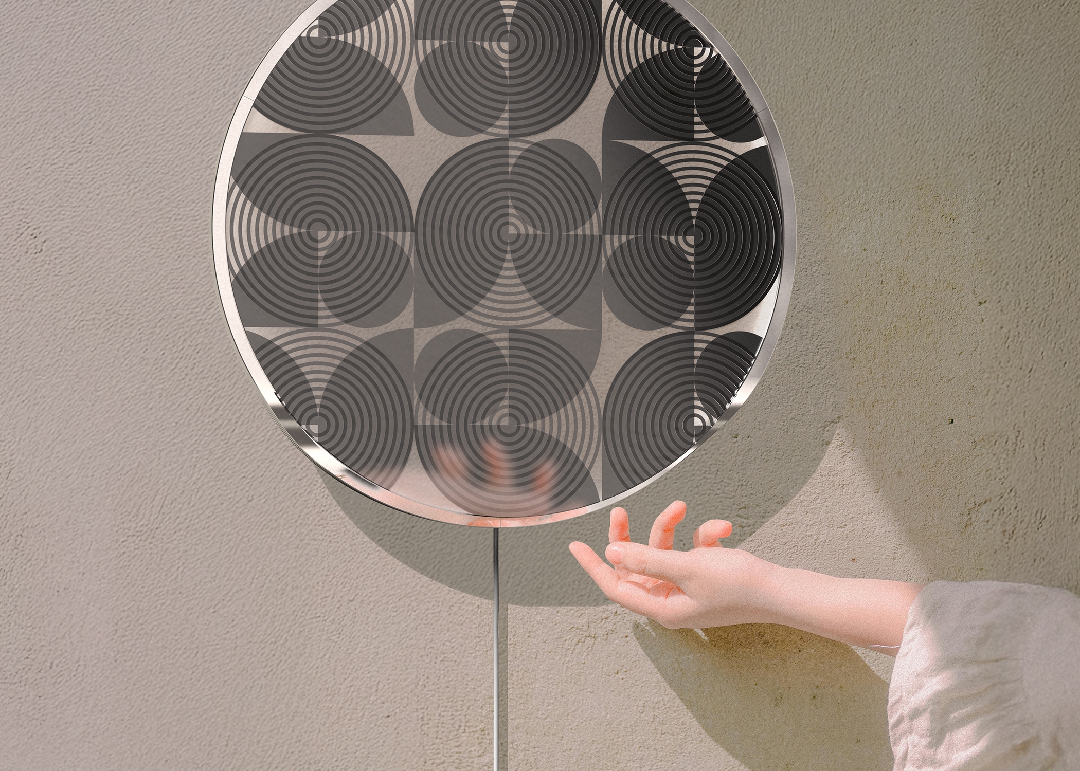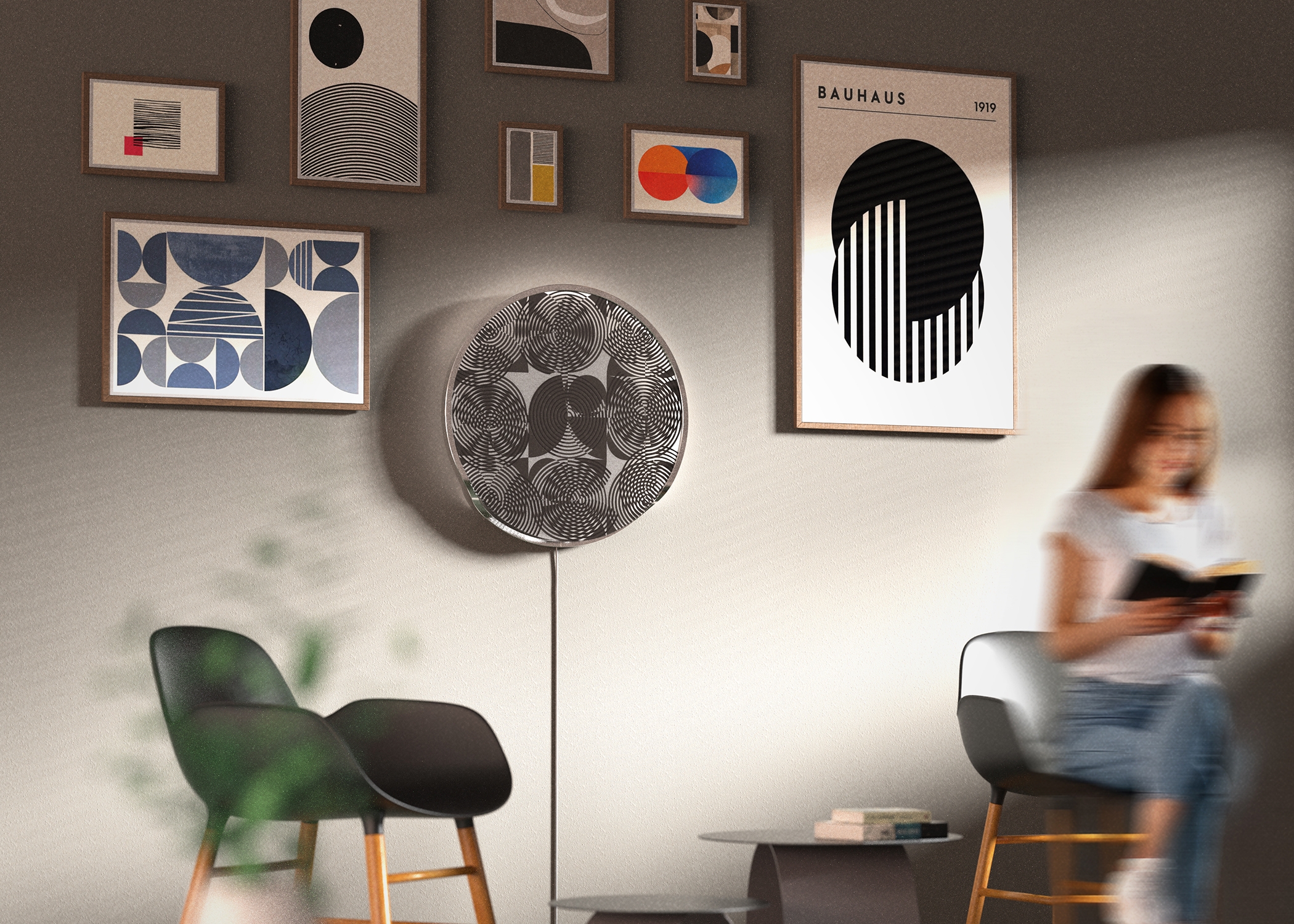 Imagine entering a room where a wall-mounted panel captivates with its geometric elegance, reminiscent of Bauhaus aesthetics. As you approach and touch the panel, it responds, morphing into a kaleidoscope of patterns and shadows. This interaction mirrors Moholy-Nagy’s exploration of light’s transformative power, enabling you to become both observer and creator in a continuous dance of illumination.
