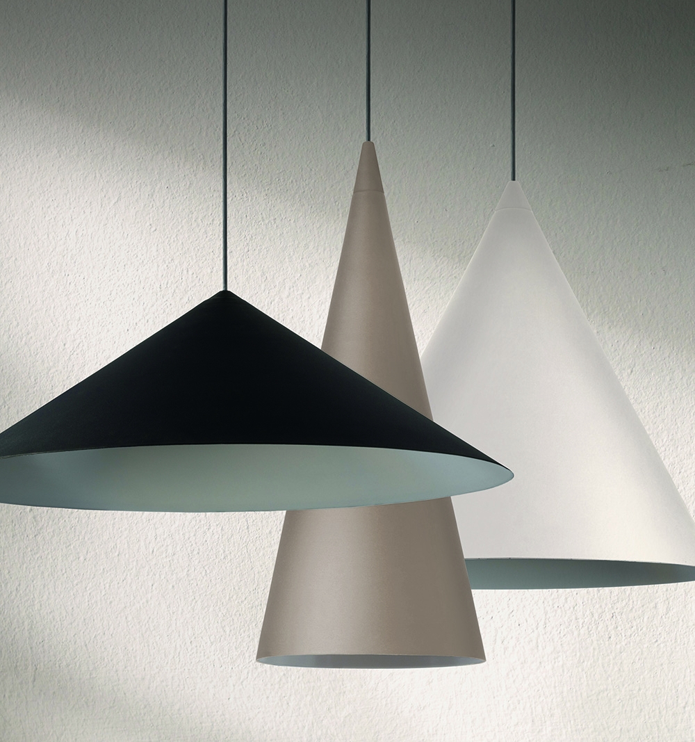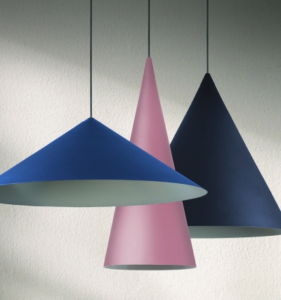 Spin Pendants are designed to deliver unmet flexibility in nearly any capacity. The elegant hand-spun aluminum shades are paired with virtually invisible hardware to emphasize the simplicity of the conical forms. With three large-scale sizes that vary in height and diameter, as well as a plethora of color choices, the pendants can be deployed as a collection or as a single pendant. As a trio, the three different pendants create an impactful and harmonious composition of separate tapered forms.