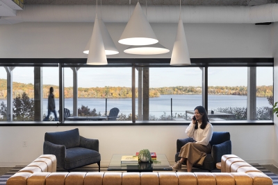 Suitable for a variety of commercial, residential, or institutional settings, the pendants have seamless, elemental profiles and canopies that appear to vanish into the ceiling. Each conical shade has a unique, dimmable light beam and etched, diffused lensing for visual comfort and soft-edge lighting.