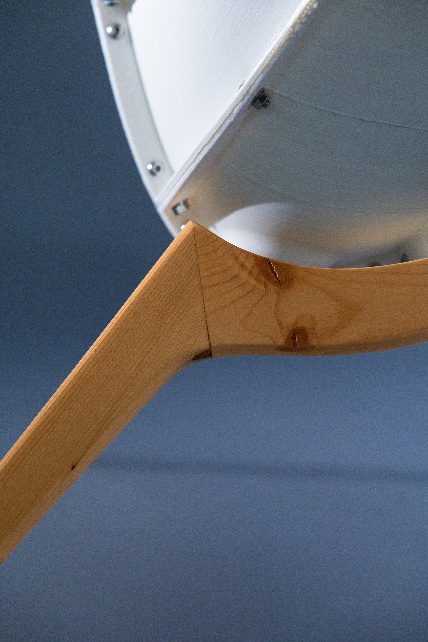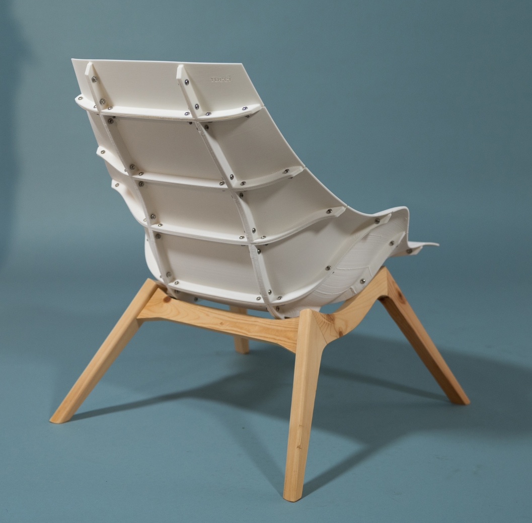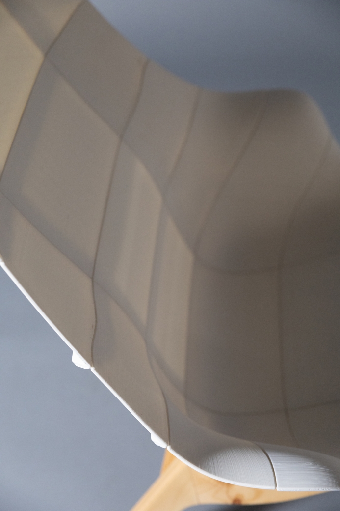 Chair29 embodies the philosophy of “Design for All,” merging the joy of making with high-quality design. This lounge chair invites users to participate in its creation, allowing customization and assembly while showcasing the beauty of mechanical connections. Harnessing the power of 3D printing, Chair29 reduces waste and energy consumption and empowers individuals to produce their own furniture locally. Originally crafted from 29 modular, 3D-printed pieces, Chair29 adapts to consumer-level printing constraints, with each part fitting within an 11”x10”x10” volume. The chair stands out for its ergonomic comfort inspired by the iconic Eames LCW fit. With features like lumbar support and high armrests, its silhouette elegantly balances organic curves with angular leg lines. To enhance stability, the latest iteration includes redesigned legs with extrusions for better attachment, enabling a choice between wooden or metal bases. The warm wood texture beautifully complements the translucent plastic, creating an inviting aesthetic. Made from advanced PolyMaker PolyMax PLA, this design showcases the mechanical artistry of 3D printing while prioritizing user experience and aesthetic appeal.