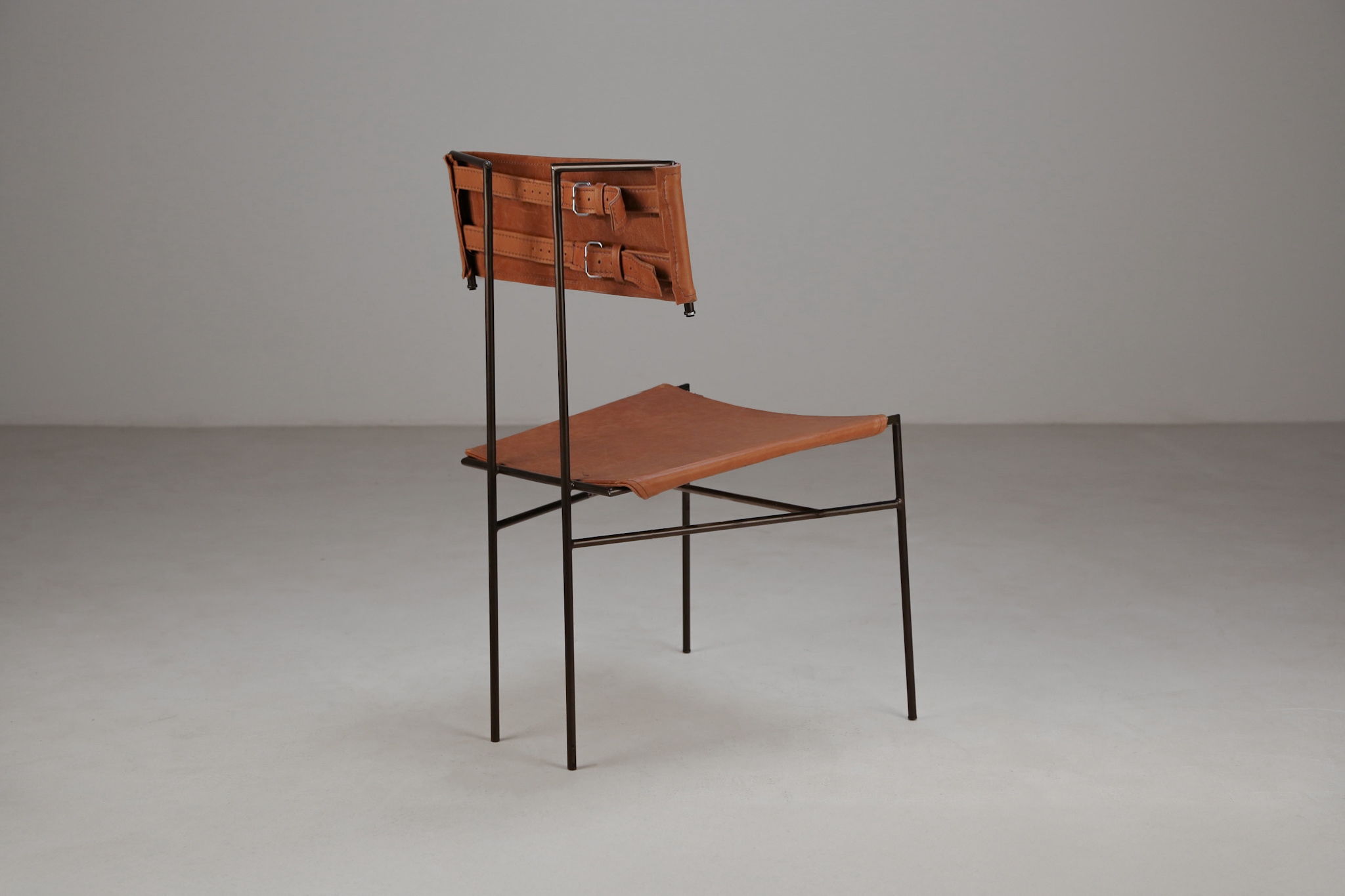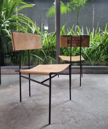 The T Chair goes beyond its practical function, standing out in the space as a form of aesthetic expression. Its lightweight structure combines solid steel and natural leather, balancing strength and elegance. Crafted using low-tech processes, it values traditional techniques and promotes sustainability by incorporating durable materials designed for longevity. Its high resistance and functionality pay tribute to the leathercraft tradition of Brazil’s Northeast. In addition to providing comfort, natural leather requires minimal maintenance, ensuring durability and beauty over time.